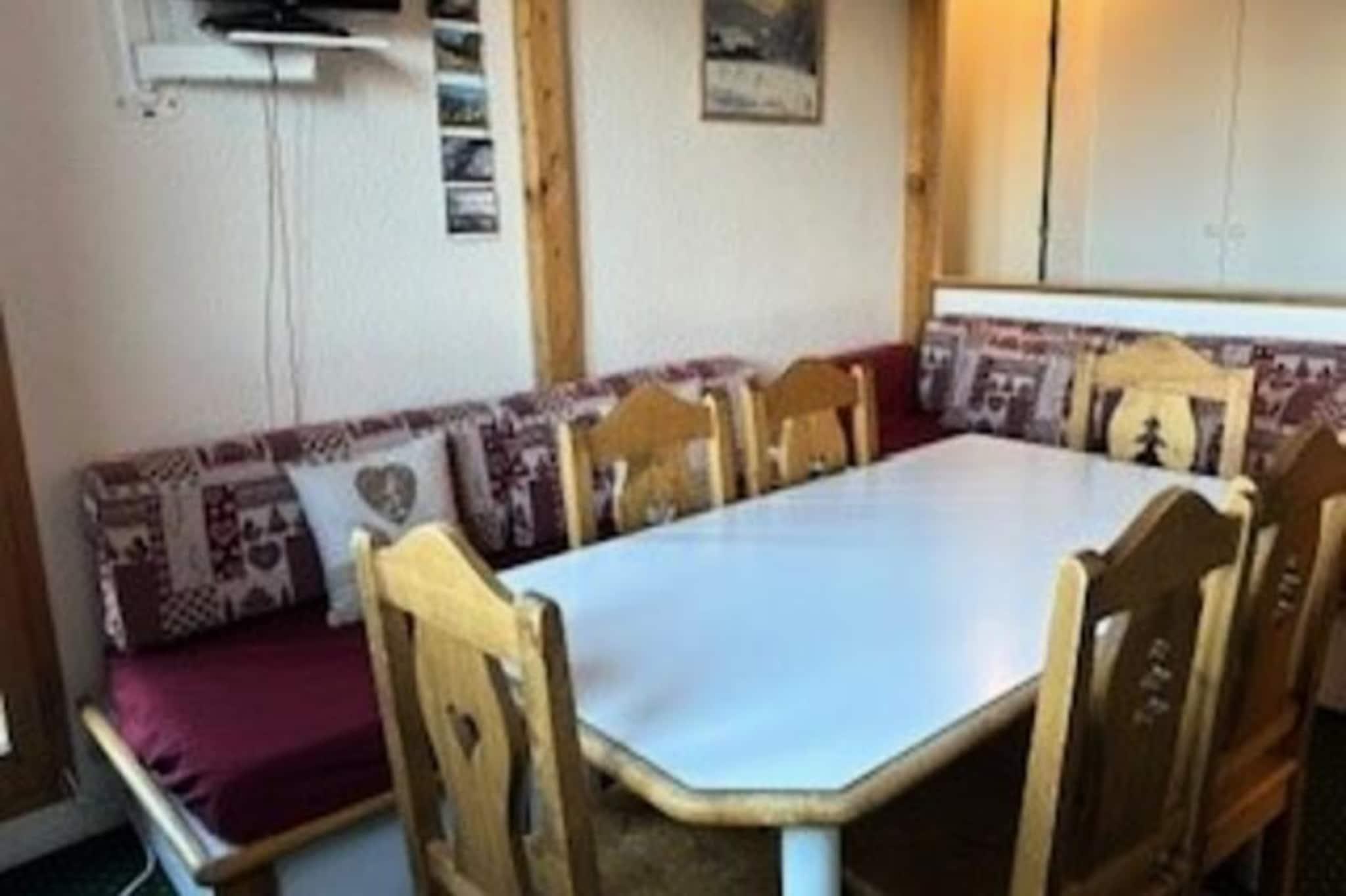 Højt over Tarentaise-dalen tilbyder denne charmerende alpine lejlighed en førsteplads til den betagende skønhed af Mont Blanc og de omkringliggende tinder. Beliggende i hjertet af Les Coches, kun 200 meter fra pisterne og butikkerne, er dette hyggelige tilflugtssted perfekt til familier eller små grupper, der søger en blanding af eventyr og afslapning i de franske alper. Uanset om du er her for at grave dig gennem uberørt sne eller udforske frodige bjergstier, placerer denne bolig dig i centrum af det hele. Indenfor er den 37 m² store lejlighed omhyggeligt designet til at maksimere komfort og funktionalitet. Det fuldt udstyrede tekøkken inkluderer elektrisk komfur, opvaskemaskine, mikrobølgeovn/ovn og kaffemaskine, hvilket gør det nemt at tilberede måltider efter en dag på pisterne. Indretningen har et soveværelse med en dobbeltseng, en sovealkove med køjesenge (ikke egnet til børn under 6 år) og to dagsenge i stuen, der komfortabelt rummer op til seks gæster. En bruseniche, separat toilet og fladskærms-tv bidrager til bekvemmeligheden, mens den private balkon giver et fantastisk udsigtspunkt for at nyde udsigten over dalen. Selve boligen er udstyret med elevator og skibokse, hvilket sikrer et problemfrit ophold. Der er gratis offentlig parkering i nærheden, og skiliftens billetkontor ligger kun et stenkast væk, hvilket gør det nemt at komme til det vidtstrakte Paradiski-område. Udover vintersport forvandles området til et paradis for vandreture, cykling og naturudforskning i sommermånederne. Med sin uovertrufne beliggenhed, moderne faciliteter og spektakulære udsigt er denne lejlighed din port til uforglemmelige alpine eventyr. Uanset om du nipper til en kaffe på balkonen, mens solen står op over Mont Blanc, eller slapper af efter en dag med udforskning, er hvert øjeblik her gennemsyret af bjergenes magi.