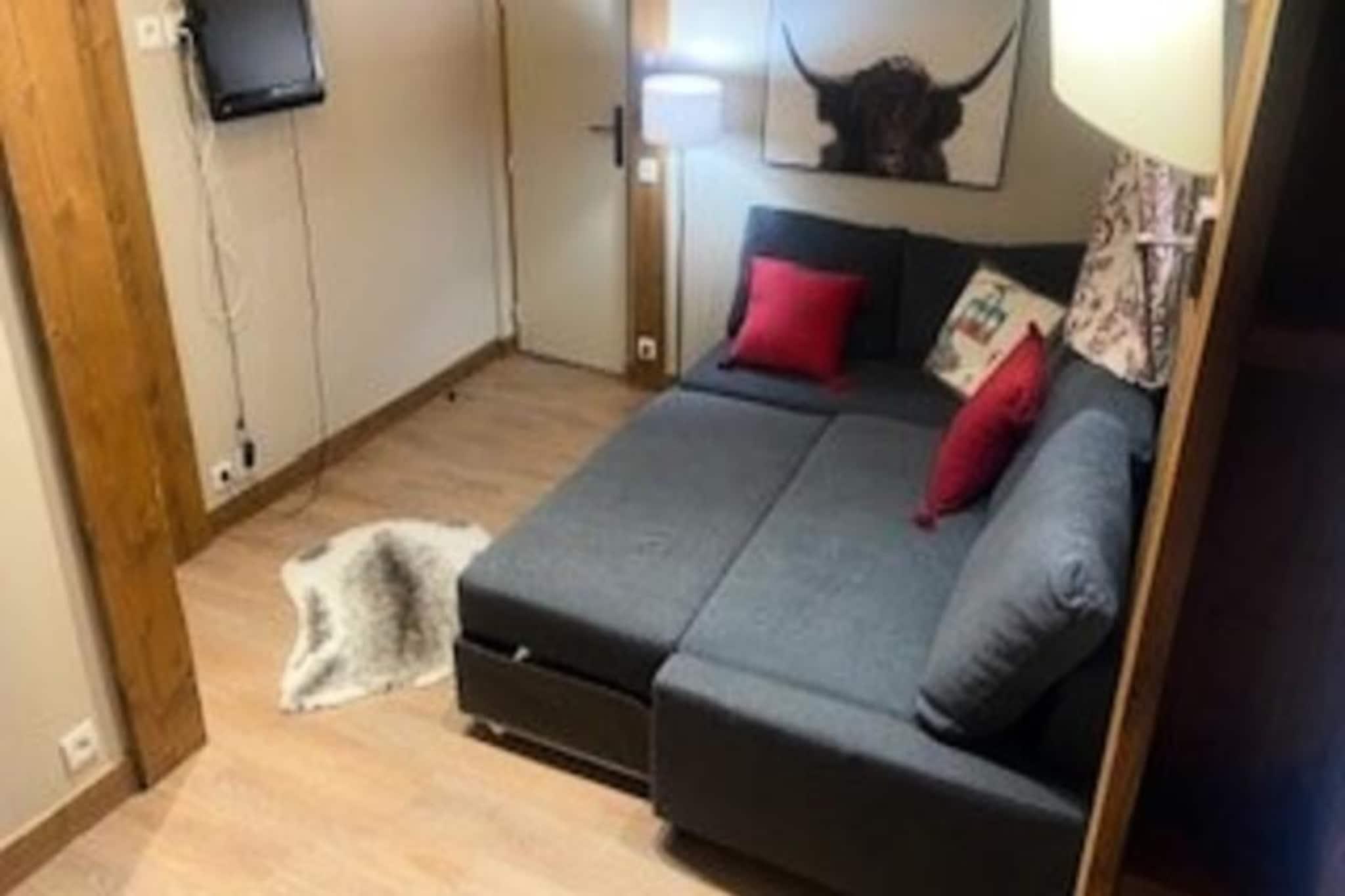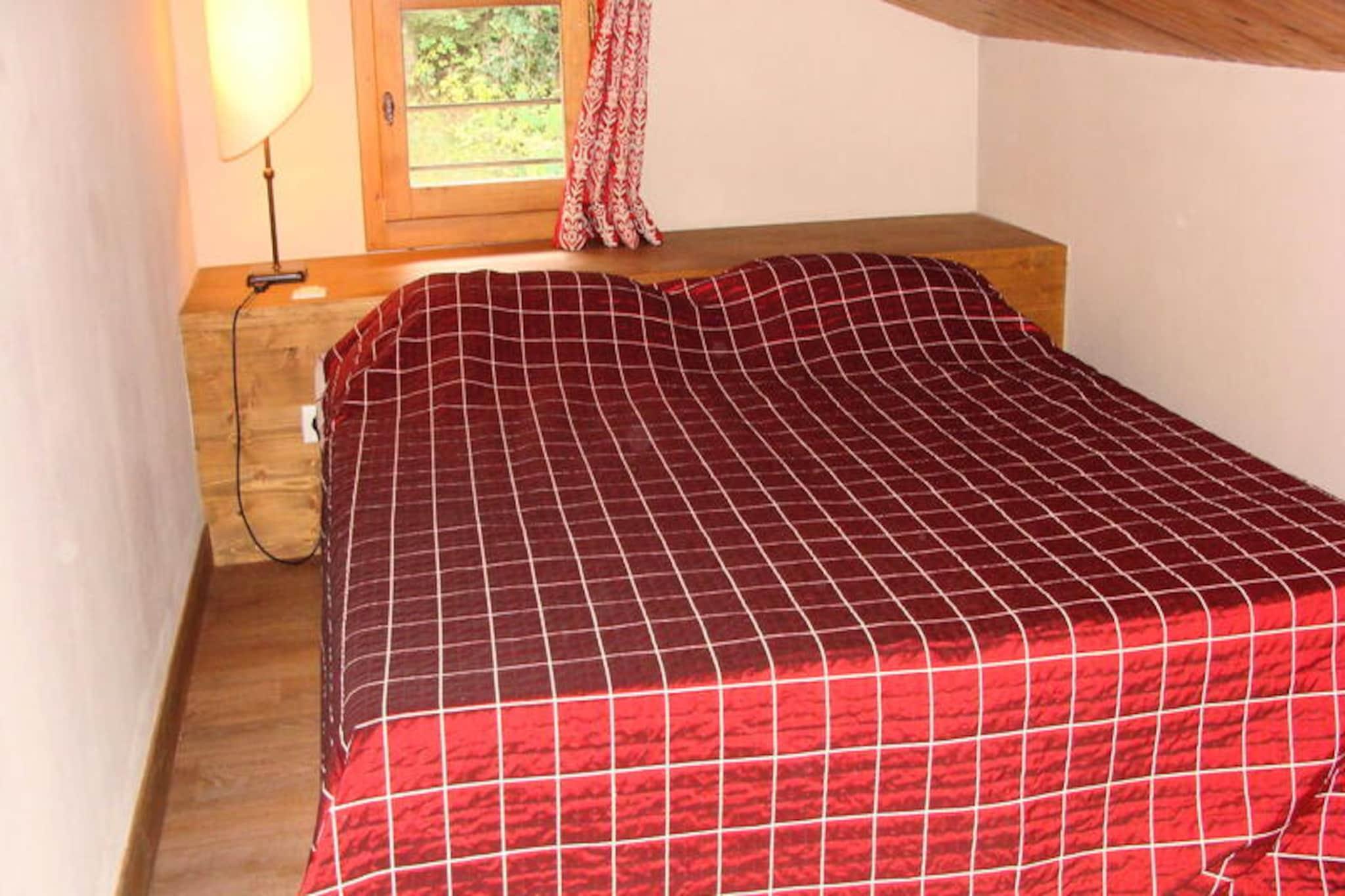 Højt over den charmerende landsby Montchavin tilbyder denne smukt renoverede lejlighed et hyggeligt tilflugtssted med en betagende udsigt over Mont Blanc. Fra sin forhøjede beliggenhed vågner du op til den fredfyldte skønhed i de franske alper, hvor frisk bjergluft og fantastiske landskaber sætter tonen for en uforglemmelig ferie. Uanset om du er her for at stå på ski på de nærliggende pister eller blot slappe af i rolige alpine omgivelser, lover denne ejendom en unik blanding af komfort og bekvemmelighed. \n\nLejligheden er 47 m² stor, inklusive 21 m² under tagskægget, og har plads til op til fire gæster. Det gennemtænkte interiør har et lille lukket køkken udstyret med moderne apparater såsom keramisk kogeplade, mikrobølgeovn, opvaskemaskine og mere, hvilket gør madlavning til en leg. Opholdsstuen kan prale af en hyggelig hjørnesofa og et fladskærms-tv, perfekt til afslapning efter en dag med eventyr. Ovenpå tilbyder to soveværelser under tagskægget en afslappende soveplads, hvor det ene tilbyder en 160 cm seng bestående af to enkeltsenge og det andet har to enkeltsenge. Et badeværelse med badekar og separat toilet øger bekvemmeligheden, mens skiboksen sikrer nem opbevaring af dit udstyr. \n\nBeliggende kun 150 meter fra pisterne og feriestedets centrum, er boligen ideelt placeret til at udforske Montchavins pulserende atmosfære. Skilifte, butikker og restauranter ligger alle inden for gåafstand, hvilket gør det nemt at fordybe sig i den lokale kultur og aktiviteter. Om sommeren forvandles området til et paradis for vandrere og naturelskere, med stier, der fører til ærefrygtindgydende udsigter og fredelige alpine enge. \n\nUanset om du søger spændende vintersport eller fredfyldte sommerferier, er denne lejlighed din port til det bedste af Montchavin. Med sin fantastiske udsigt, moderne faciliteter og førsteklasses beliggenhed er det det perfekte valg til at skabe varige minder i hjertet af de franske alper.