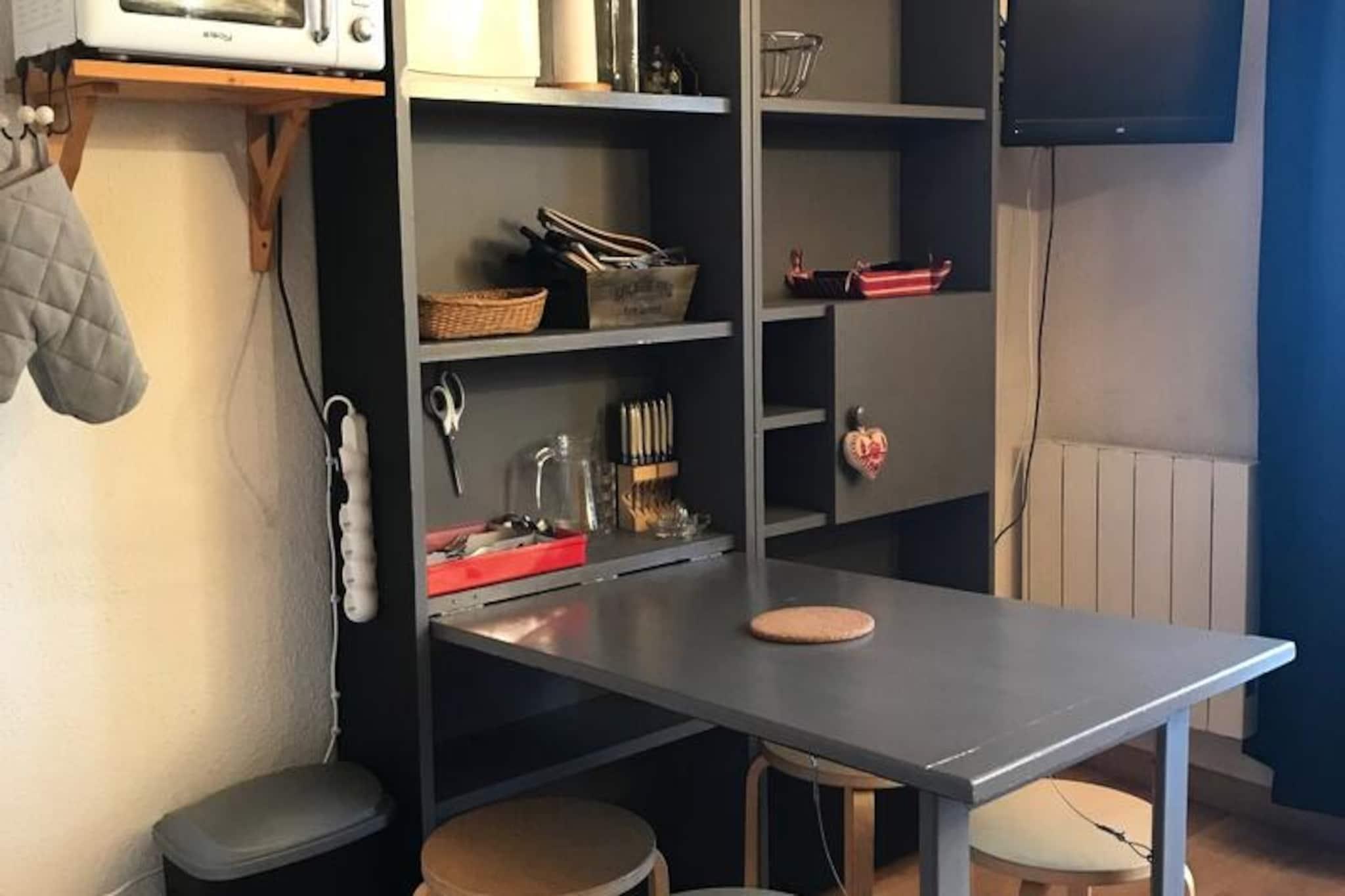 Højt over den maleriske dal Les Arcs inviterer dette charmerende studie dig til at opleve magien i de franske alper i enhver sæson. Forestil dig at vågne op til en betagende udsigt fra din private balkon, den friske bjergluft fylder dine lunger, mens solen står op over de snedækkede tinder. Uanset om du er her for vintersport eller sommereventyr, placerer denne bolig dig i hjertet af alpin skønhed og spænding. \n\nBeliggende direkte på pisterne tilbyder residensen 'Le Christiana' uovertruffen bekvemmelighed for skientusiaster. Med butikker og skilifte kun få skridt væk kan du starte din dag ubesværet. Studiet, der ligger på tredje sal, har komfortabel plads til op til fire gæster. Det hyggelige bjerghjørne har to køjesenge, mens opholdsstuen har en komfortabel sovesofa, et hyrdebord og et tv til afslappende aftener. Køkkenet er udstyret med essentielle apparater, herunder ovn, mikrobølgeovn og kaffemaskine, hvilket gør det nemt at tilberede måltider efter en dag med udforskning. Badeværelset har et badekar til afslappende bad, og der er et separat toilet for ekstra bekvemmelighed. \n\nUd over pisterne forvandles Les Arcs til et paradis for vandrere, cyklister og naturelskere i de varmere måneder. Udforsk de frodige stier, nyd lokale festivaler, eller prøv paragliding over den fantastiske Tarentaise-dal. Med gratis parkering og private skibokse sikrer denne bolig et problemfrit ophold. Uanset om du jagter puddersne eller søger ro, tilbyder dette alpine tilflugtssted den perfekte blanding af komfort og eventyr.