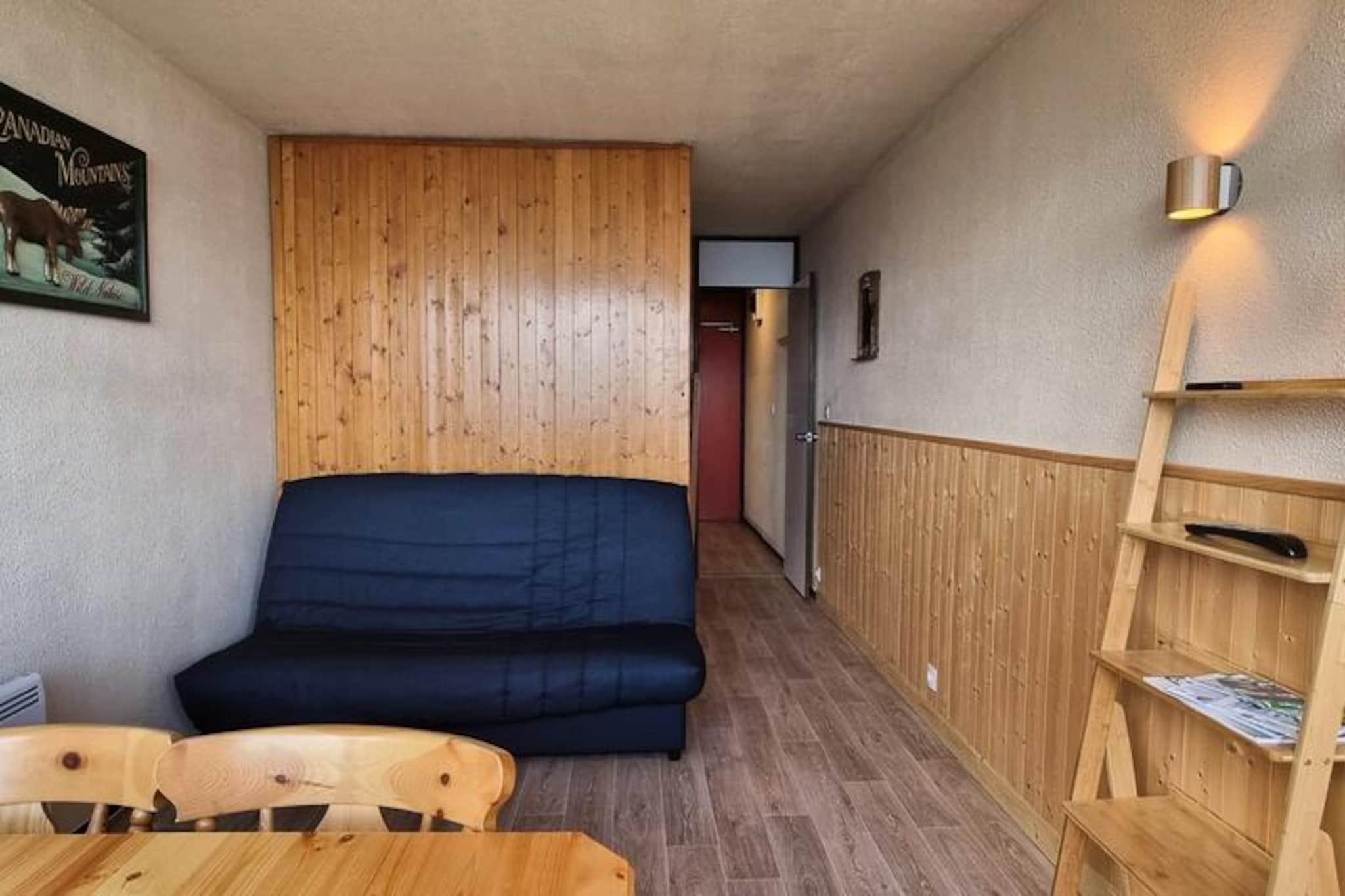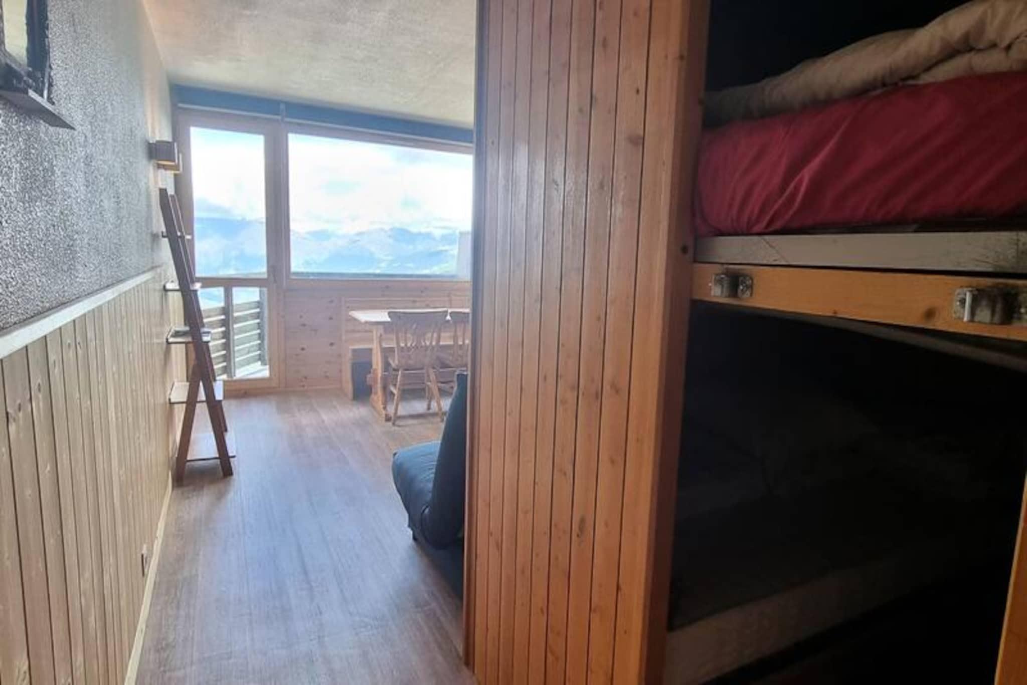 Højt over Tarentaise-dalen tilbyder denne charmerende studiohytte et hyggeligt tilflugtssted med en betagende udsigt over Mont Blanc-massivet. Beliggende i det ikoniske Paquebot des Neiges kombinerer residensen alpin charme med moderne bekvemmeligheder, hvilket gør den til den perfekte base for dine bjergeventyr. Uanset om du er her for at køre på pisterne eller blot nyde Alpernes fredfyldte skønhed, sikrer denne ski-in/ski-out-ejendom, at hvert øjeblik er uforglemmeligt. Det 26 m² store studio er blevet omhyggeligt renoveret for at rumme op til fire gæster. Den indbydende stue har en komfortabel sovesofa, et spisebord til fire og et fladskærms-tv, hvilket skaber et varmt og indbydende rum til at slappe af efter en dag udendørs. En separat sovealkove med en enkeltseng og en dobbelt køjeseng tilbyder ekstra privatliv og komfort. Det veludstyrede køkken har mikrobølgeovn, køleskab, opvaskemaskine og elektriske kogeplader, hvilket gør det nemt at tilberede måltider. Badeværelset, komplet med badekar og separat toilet, tilføjer et strejf af moderne bekvemmelighed. Gå ud på den nordvendte balkon for at nyde den majestætiske udsigt over Mont Blanc, et syn, der vil inspirere dig hver dag. Selve boligen er et paradis af praktisk anvendelighed og bekvemmelighed. Med butikker og kabelbanestationen bekvemt placeret på niveau G, og en gratis resort-shuttle tilgængelig, er alt hvad du behøver lige ved hånden. Udendørs og overdækket parkering sikrer stressfri ankomst, mens skiboksen og direkte adgang til pisten forenkler dine alpine eventyr. Uanset om du besøger stedet for spændingen ved pisterne eller roen i bjergene, tilbyder denne studiohytte en perfekt blanding af komfort, bekvemmelighed og fantastisk naturlig skønhed. Skab uforglemmelige minder i hjertet af de franske alper, hvor hver eneste detalje er designet til at forbedre dit ophold.