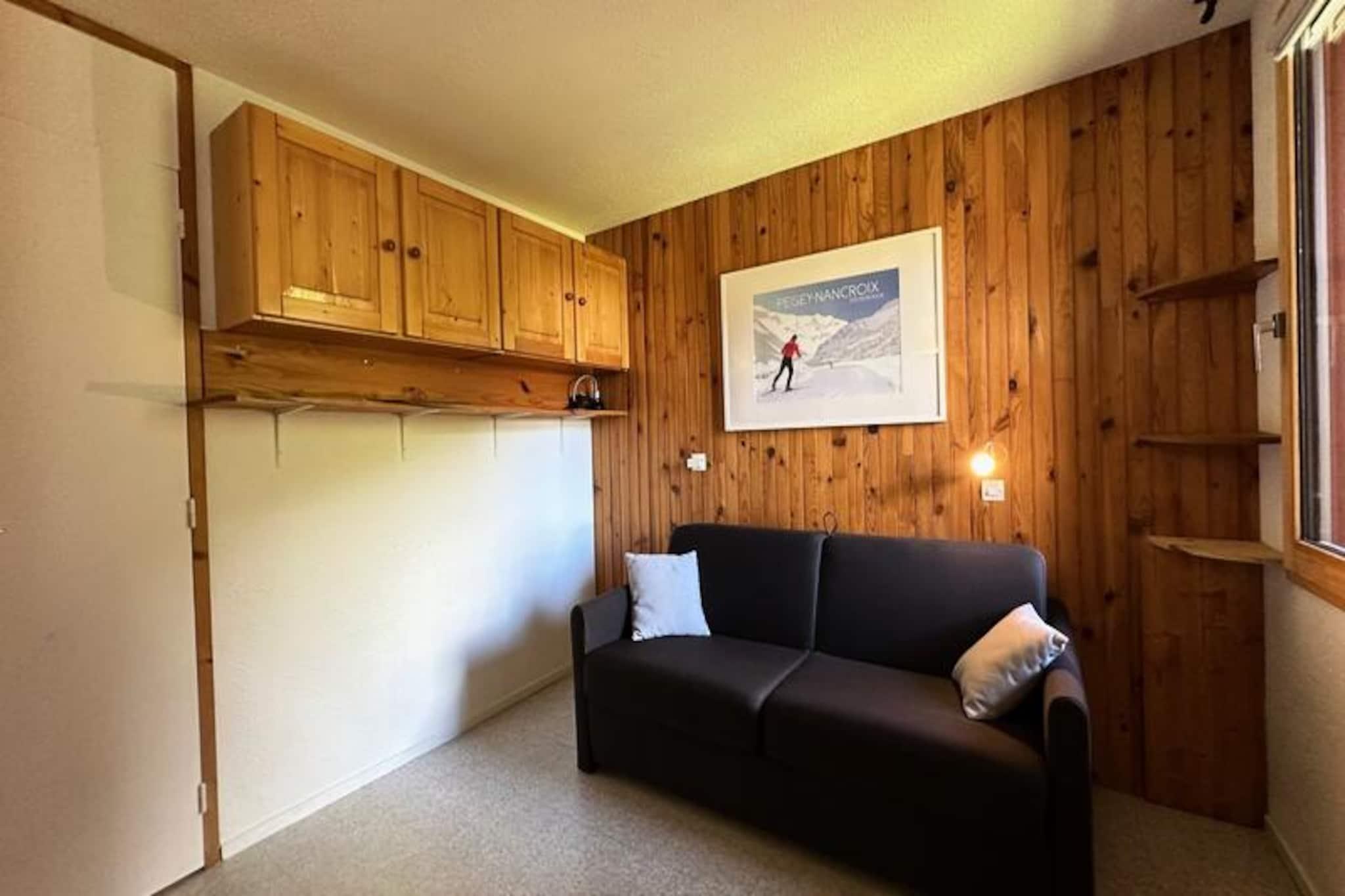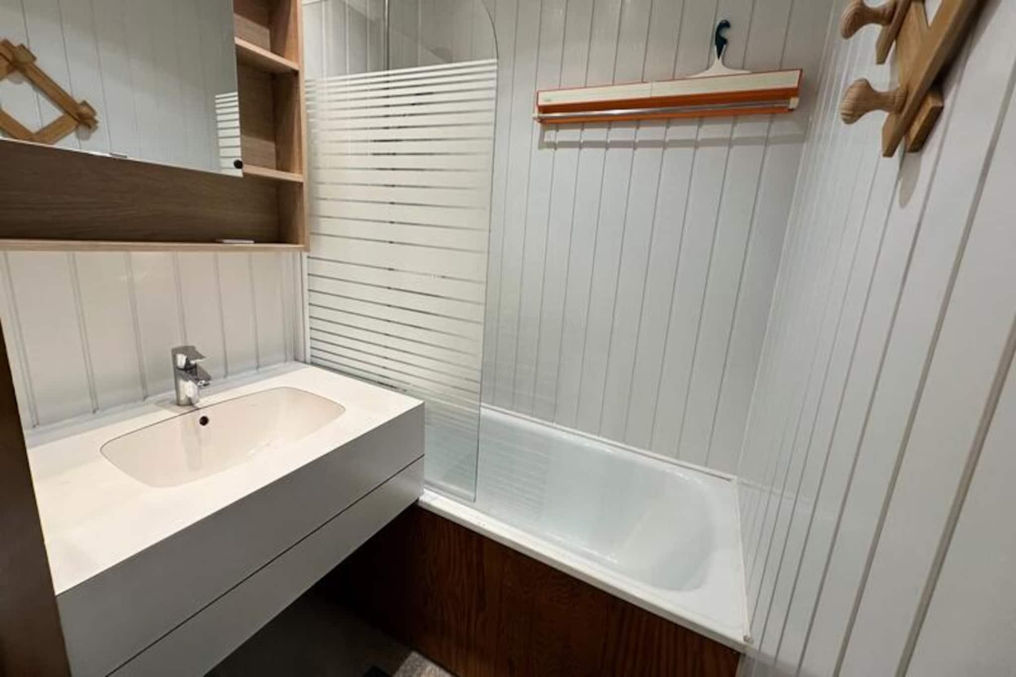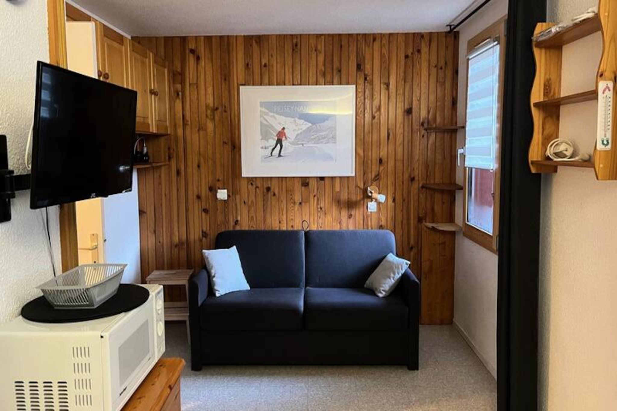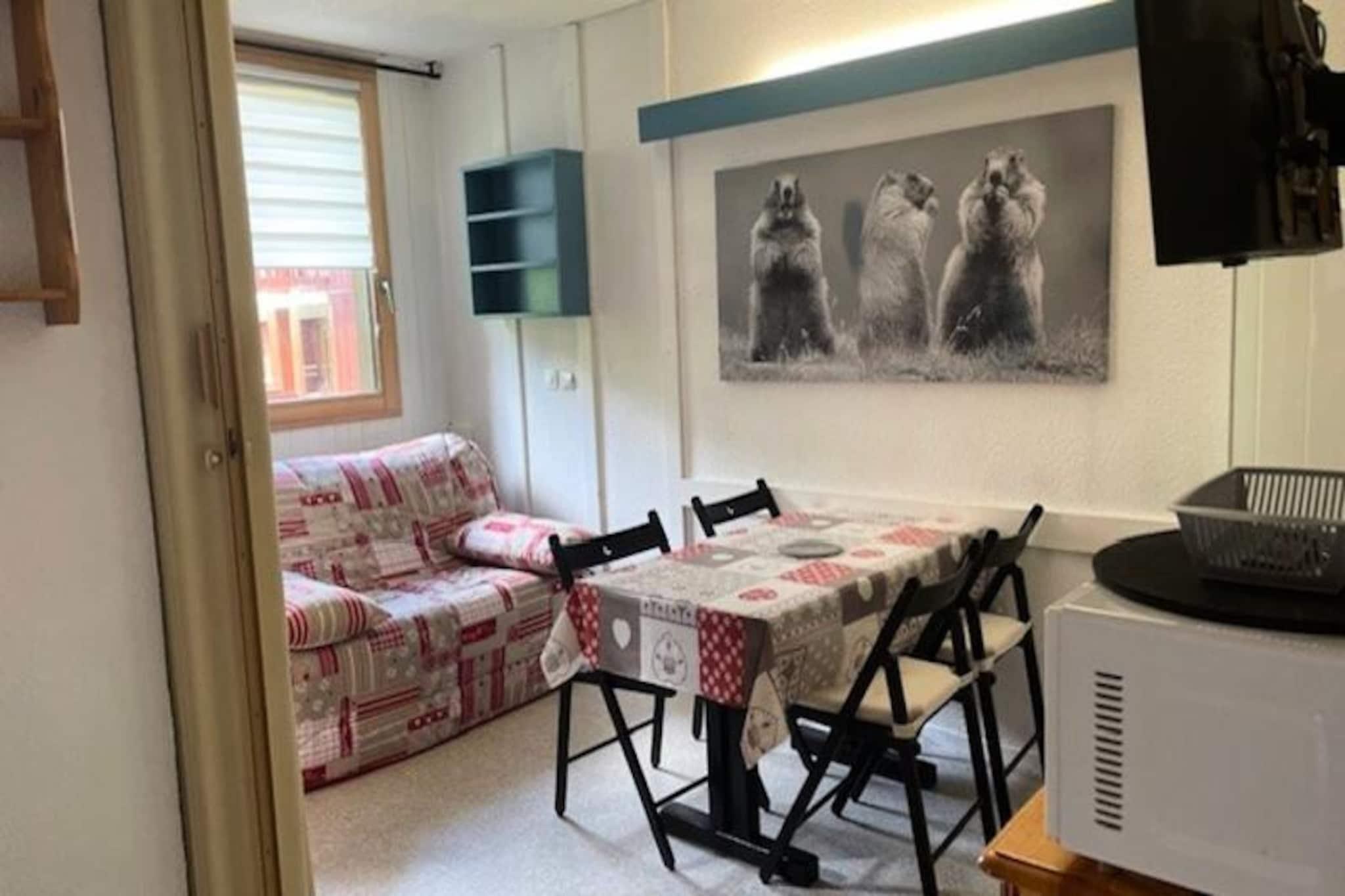 Forestil dig at vågne op til den friske alpeluft og den fredfyldte skønhed i de franske alper, hvor dit hyggelige studie venter kun få skridt fra Montchavin-svævebanen. Dette dejlige tilflugtssted, beliggende i hjertet af feriestedet, tilbyder den perfekte base for dine bjergeventyr, uanset om du snor dig gennem frisk puddersne om vinteren eller udforsker frodige stier om sommeren. Med sin sydvestvendte balkon kan du nyde solnedgangens gyldne nuancer, mens du nyder den betagende udsigt over de omkringliggende tinder. Indenfor er det 24 m² store studie smart designet til at maksimere komfort og funktionalitet. Det fuldt udstyrede tekøkken har moderne apparater, herunder opvaskemaskine, ovn, mikrobølgeovn, kaffemaskine og brødrister, hvilket gør det nemt at tilberede solide måltider efter en dag med udforskning. Sovearrangementerne er alsidige med en dobbelt sovesofa i soveområdet og en anden i spiseområdet, hvilket sikrer afslappende nætter for op til fire gæster. Et fladskærms-tv bidrager til den hyggelige atmosfære, mens badeværelset med badekar og separat toilet sørger for bekvemmelighed under dit ophold. Boligen kan prale af skibokse til problemfri opbevaring og gratis offentlig parkering i nærheden, hvilket gør dit ophold endnu mere bekvemt. Beliggende lige overfor Montchavin-gondolen og Evolution 2-skiskolen, vil du nyde uovertruffen adgang til pisterne og den pulserende landsbyatmosfære. Uanset om du er en erfaren skiløber eller en naturentusiast, tilbyder denne beliggenhed noget for enhver smag. Omfavn charmen ved Montchavin og skab uforglemmelige minder i denne fredelige alpine oase. Med sin førsteklasses beliggenhed, gennemtænkte faciliteter og fantastiske omgivelser lover dette studie en ferie fyldt med afslapning, eventyr og bjergenes magi.