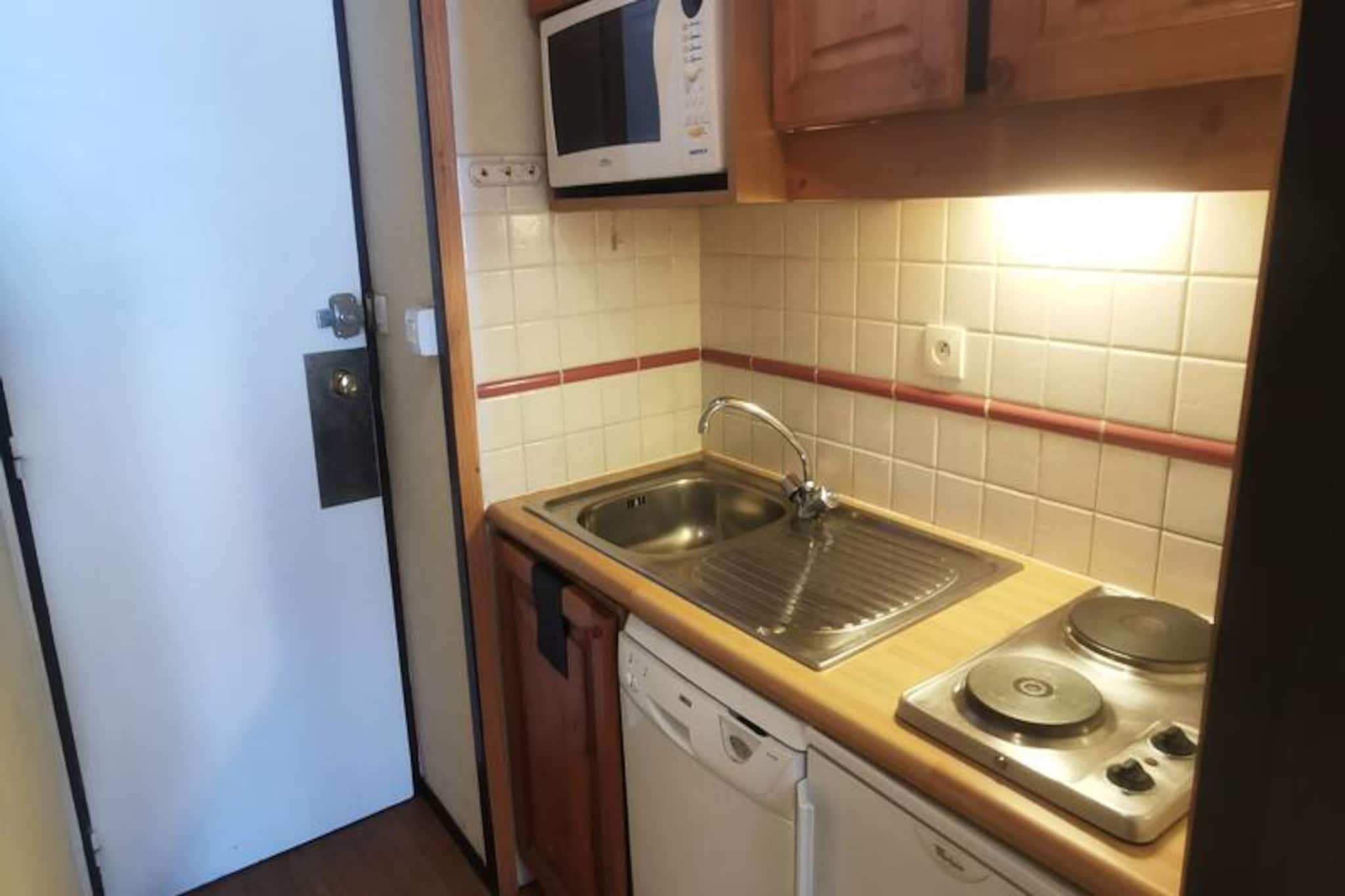 Højt over de snedækkede tinder i de franske alper tilbyder dette charmerende studie i Le France-residensen en uovertruffen ski-in, ski-out-oplevelse i hjertet af Plagne Centre. Forestil dig at vågne op til det blændende sollys, der reflekteres fra pisterne, træde ud på din sydvendte balkon for at indånde den friske bjergluft og gå direkte ud på Véga-pisten lige uden for din dør. Med sin førsteklasses beliggenhed er dette studie perfekt til dem, der søger både eventyr og bekvemmelighed i en af ??de mest ikoniske skidestinationer i Europa. Studiet er designet til komfortabelt at rumme op til fire gæster og er omhyggeligt udstyret med alt, hvad du behøver for et hyggeligt alpint tilflugtssted. Opholdsstuen har en udtræksseng og køjesenge, hvilket gør den ideel til familier eller små grupper. Tekøkkenet har keramisk kogeplade, køleskab, mikrobølgeovn og opvaskemaskine, så du kan tilberede solide måltider efter en dag på pisterne. Et fladskærms-tv og dyner bidrager til komforten, mens badeværelset har et badekar til et afslappende bad. For ekstra bekvemmelighed inkluderer residensen individuelle skibokse og elevatoradgang til 8. sal. Bekvemt beliggende kun 100 meter fra butikkerne i Pelvoux-galleriet finder du alt fra skiudlejning til afterskiing inden for rækkevidde. Der er betalt parkering lige foran boligen, hvilket sikrer en problemfri ankomst. Ud over skiløb byder området på et væld af aktiviteter, lige fra sneskovandring og kælkning om vinteren til vandreture og mountainbiking om sommeren. Uanset om du er her for at slentre gennem pudrede pister eller blot nyde den rolige alpine atmosfære, er dette studie din indgang til en uforglemmelig bjergflugt. Skab minder for livet i hjertet af de franske alper.