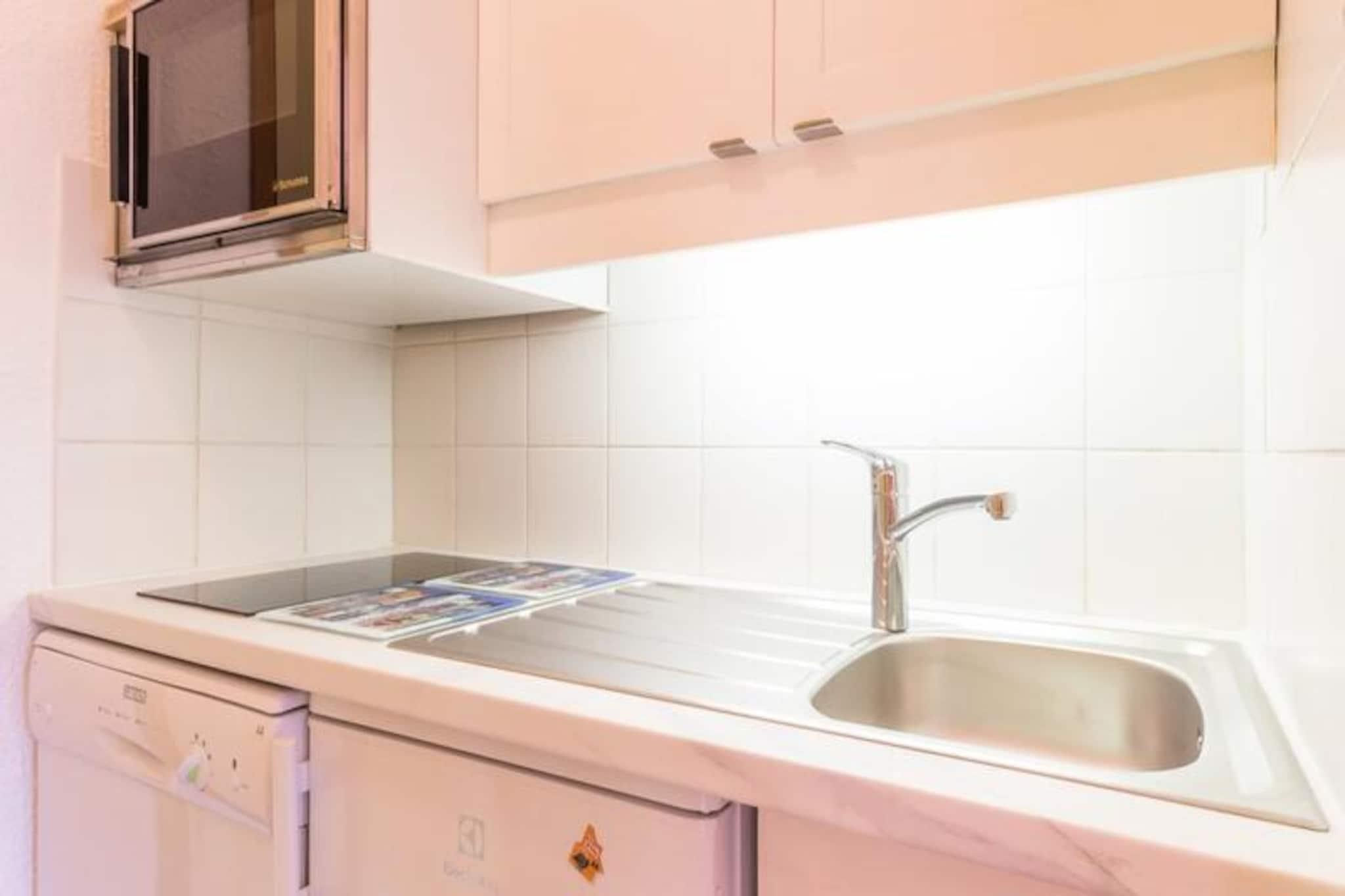 Højt over den charmerende landsby Montchavin tilbyder dette hyggelige studio på øverste etage et dejligt alpint tilflugtssted for par eller små grupper. Badet i naturligt lys og med en fantastisk udsigt over de omkringliggende tinder er denne bolig den perfekte base for at udforske Paradiski-skiområdet, kun 100 meter fra din dørtrin. Uanset om du er her for vintersport eller sommerens bjergeventyr, sikrer denne ejendom et mindeværdigt ophold i hjertet af de franske alper. Studioets smarte layout maksimerer dets 22 m² store rum og har et renoveret tekøkken udstyret med keramisk kogeplade, ovn, mikrobølgeovn, opvaskemaskine og kaffemaskine. Soveområdet inkluderer en komfortabel Murphy-seng og en dobbelt sovesofa, hvilket gør det ideelt til op til tre gæster. Et moderne brusebad og et fladskærms-tv bidrager til bekvemmeligheden og komforten under dit ophold. Ejendommen tilbyder også et skiskab til dit udstyr, hvilket sikrer problemfri adgang til pisterne. Beliggende i Porte de Montchavin-residensen vil du blive fordybet i landsbyens varme atmosfære med butikker, restauranter og skifaciliteter kun en kort gåtur væk. Om sommeren forvandles området til et paradis for vandrere og cyklister med betagende stier og panoramaudsigt over Tarentaise-dalen. Med sine lyse interiører, opdaterede faciliteter og uovertrufne beliggenhed inviterer dette studie dig til at opleve magien ved Montchavin. Uanset om du snor dig gennem frisk puddersne eller soler dig i alpesolen, er dette din portal til uforglemmelige bjergøjeblikke.