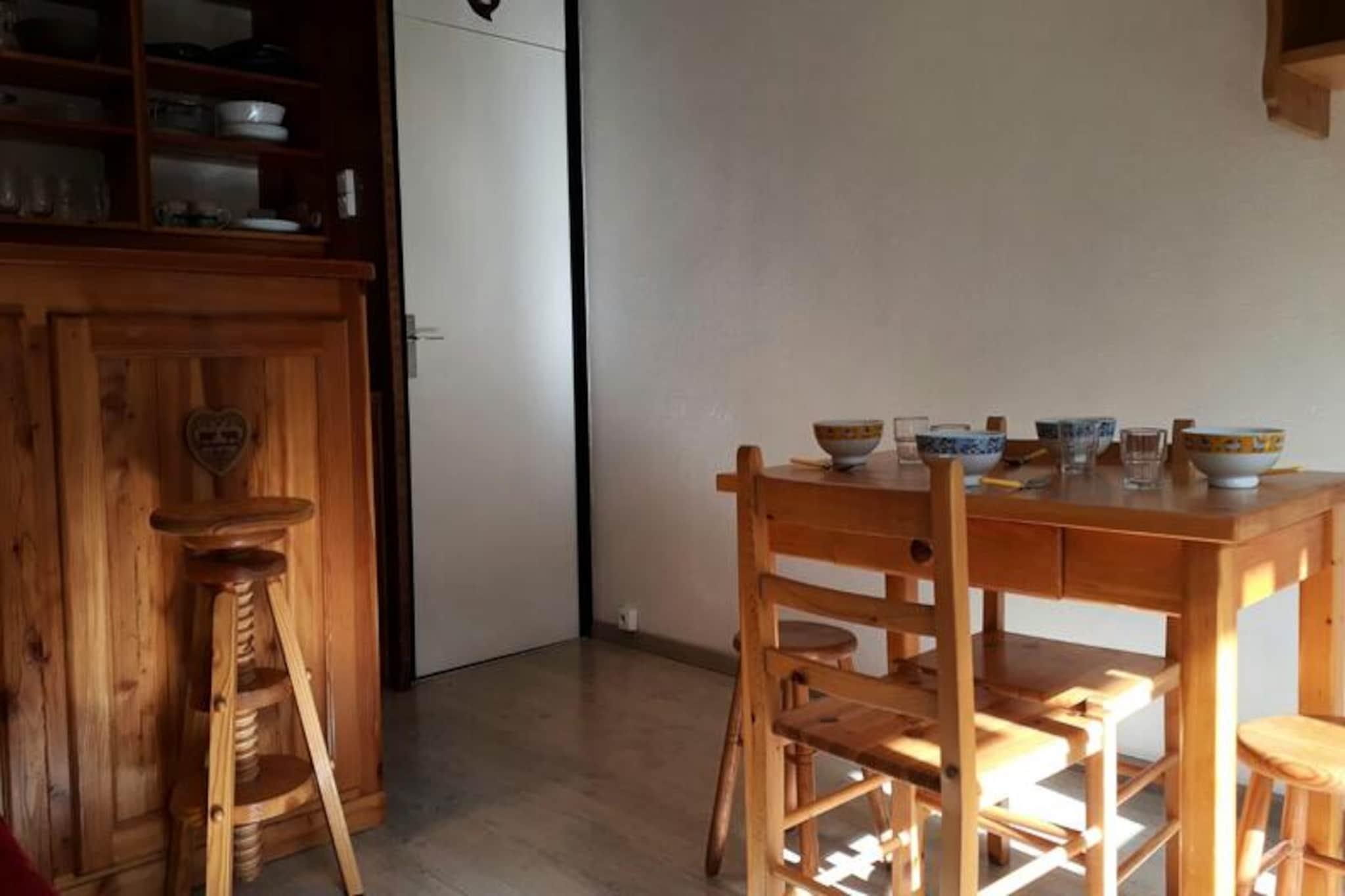 I hjertet af de franske alper, hvor snedækkede tinder møder charmen fra alpelandsbyer, tilbyder dette hyggelige studie i Plagne Centre det perfekte tilflugtssted for par, der søger en bjergferie. Beliggende kun 200 meter fra feriestedets centrum og blot 100 meter fra pisterne, sikrer denne bolig, at du altid er tæt på begivenhederne, uanset om det er at stå på ski ned ad uberørte pister eller nyde den pulserende afterski-atmosfære. Studiets vestvendte balkon inviterer dig til at slappe af med udsigt over de omkringliggende tinder, mens solen går ned over bjergene. Det 19 m² store studie er omhyggeligt designet til to personer og blander komfort og praktisk anvendelighed. Dens varme indretning i bjergstil skaber en indbydende atmosfære, mens opholdsstuen har en dobbelt udtræksseng og et fladskærms-tv til hyggelige aftener derhjemme. Tekøkkenet, der er udstyret med keramisk kogeplade, køleskab, kombineret mikrobølgeovn og opvaskemaskine, giver dig mulighed for nemt at tilberede måltider. Et moderne badeværelse med badekar og toilet fuldender rummet og sikrer et behageligt ophold. Yderligere bekvemmeligheder inkluderer dyner og et privat skiskab, hvilket gør dine alpine eventyr problemfri. Beliggende ved udkørslen fra Plagne Centre nær Araucaria Hotel, tilbyder denne bolig nem adgang til pisterne og de nærliggende faciliteter. Udforsk det livlige feriestedscentrum, nyd det lokale Savoyard-køkken, eller drag fordel af Paradiski-skiområdet i verdensklasse. Uanset om du er her for vintersport eller sommervandreture, placerer denne studiolejlighed dig i hjertet af det hele. Med sin blanding af beliggenhed, komfort og charme er det et ideelt valg til din næste alpine ferie.