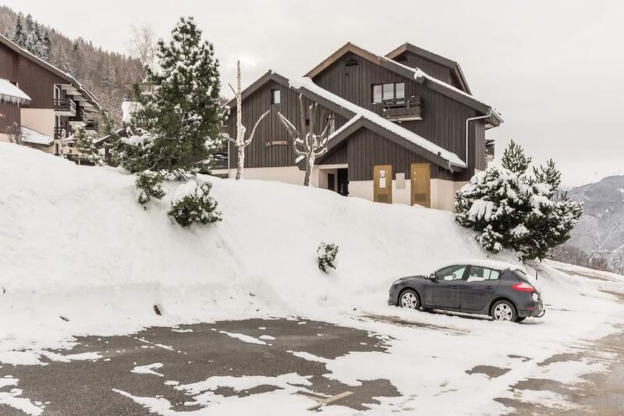 Denne hyggelige lejlighed ligger i den charmerende gamle landsby Montalbert og tilbyder et dejligt alpint tilflugtssted, hvor ro møder bekvemmelighed. Med sin sydvendte balkon kan gæsterne nyde solens varme, mens de beundrer den fredfyldte udsigt over bjergene. Residensen, La Grangette, er en lille og rolig bygning, perfekt til dem, der søger en fredelig ferie, og den har gratis parkering lige udenfor for ekstra bekvemmelighed. Uanset om du er her for at stå på ski eller bare slappe af, er denne beliggenhed den ideelle base for dine eventyr. \n\nLejligheden, der er omhyggeligt renoveret, er på 27 kvadratmeter og har komfortabel plads til op til fem gæster. Den lyse stue har et spisebord, en udtræksseng, en enkeltseng og et tv, hvilket skaber et indbydende rum at slappe af efter en dag i bjergene. Tekøkkenet er fuldt udstyret med moderne apparater, herunder keramisk kogeplade, køleskab, opvaskemaskine, mikrobølgeovn, brødrister, kaffemaskine og elkedel, hvilket gør madlavning til en leg. Et separat soveområde med køjesenge bidrager til det praktiske, selvom den øverste køjeseng ikke er egnet til børn under seks år. Badeværelset har håndvask og badekar, suppleret af et separat toilet for ekstra bekvemmelighed.\n\nMontalbert tilbyder en ægte alpin oplevelse med skibokse til dit udstyr og nem adgang til pisterne. Landsbyatmosfæren er perfekt til afslappende gåture, og nærliggende faciliteter sikrer, at alt hvad du behøver er inden for rækkevidde. Uanset om du udforsker de sneklædte stier om vinteren eller nyder den friske bjergluft om sommeren, fungerer denne lejlighed som en hyggelig og veludstyret base.\n\nVælg denne charmerende bolig til din næste ferie og nyd den perfekte blanding af komfort, charme og tilgængelighed i hjertet af de franske alper.
