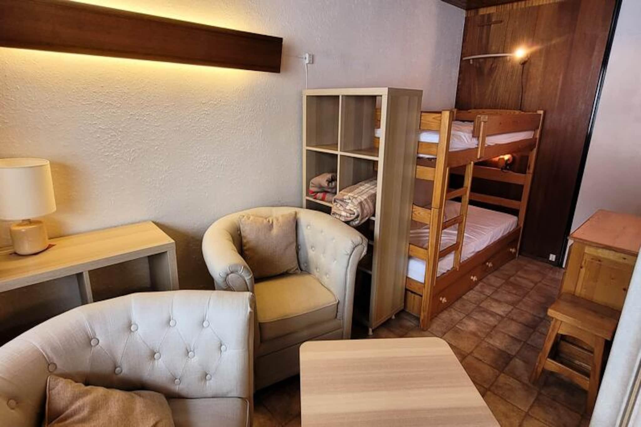 I hjertet af Plagne Centre, hvor den alpine charme møder spændingen ved pisterne, tilbyder denne dejlige studiolejlighed et hyggeligt tilflugtssted for op til fire gæster. Forestil dig at vågne op til den solbeskinnede snefront, træde ud på din sydvendte balkon og indånde den friske bjergluft, mens du betragter skiløberne, der snor sig ned ad pisterne. Denne bolig er perfekt placeret for skientusiaster med direkte adgang til snefronten og indkøbscentret, hvilket sikrer bekvemmelighed og spænding i hvert hjørne. Uanset om du er her for vintersport eller sommervandreture, lover omgivelserne uforglemmelige øjeblikke i de franske alper. \n\nStudiolejligheden, der i øjeblikket er under renovering for at forbedre komforten og stilen, har et smart designet layout med en udtrækkelig skillevæg, der deler stuen. Den indeholder en dobbelt sovesofa, to køjesenge og et fladskærms-tv, hvilket gør den ideel til familier eller små grupper. Køkkenet er udstyret med moderne apparater, herunder elektrisk komfur, køleskab, ovn og opvaskemaskine, så du kan tilberede solide måltider efter en dag med eventyr. Badeværelset tilbyder et afslappende badekar, mens det separate toilet bidrager til bekvemmeligheden. For skientusiaster sikrer det individuelle skiskab, at dit udstyr altid er klar til action. \n\nBeliggende ved foden af ??Plagne Centres pister placerer denne bolig dig i hjertet af begivenhederne. Der er betalt parkering i nærheden, og det pulserende indkøbscenter tilbyder alt fra leje af udstyr til afterskiing-oplevelser. Selvom sengelinned og rengøring ikke er inkluderet, gør charmen og den praktiske anvendelighed af denne studiolejlighed den til en perfekt base for at udforske Paradiski-området. \n\nUanset om du søger adrenalin på pisterne eller ro midt i den alpine skønhed, inviterer denne studiolejlighed dig til at skabe dyrebare minder i en af ??Frankrigs mest ikoniske bjergdestinationer.