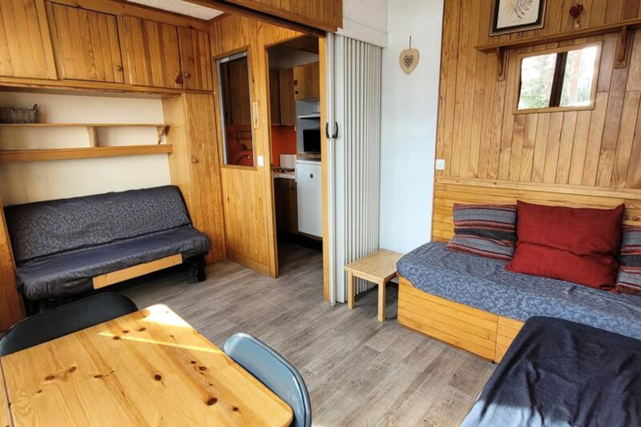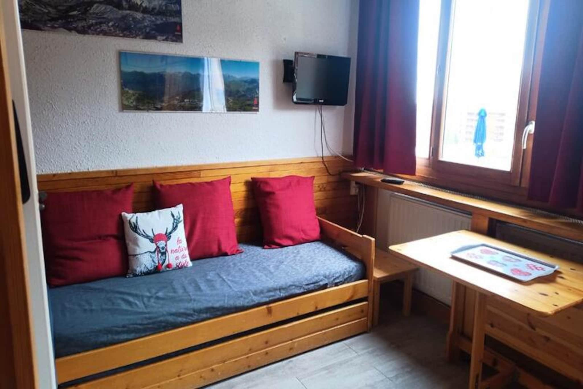 Højt over de fredfyldte dale i Plagne Centre tilbyder dette charmerende studie et hyggeligt tilflugtssted med en betagende udsigt over Beaufortain og det ikoniske Mont Blanc. Perfekt beliggende i Le Sikkim Residence er det et ideelt valg for par, der søger en fredelig alpin flugt. Uanset om I er her for de snedækkede pister eller de livlige sommerstier, placerer denne ejendom jer i hjertet af de franske alpers naturlige skønhed. Indenfor er det 21 m² store studie omhyggeligt designet til at maksimere komfort og funktionalitet. Opholdsstuen har en 140 cm sovesofa, to bænkesæder og et tv, hvilket skaber et indbydende rum at slappe af efter en dag med eventyr. Det separate køkken er udstyret med to elektriske kogeplader, et køleskab og en mikrobølgeovn, hvilket gør det nemt at tilberede måltider. Det nyrenoverede badeværelse har en moderne brusekabine og håndvask, mens det separate toilet øger bekvemmeligheden. Der er dyner til en god nats søvn, og der er et skiskab til rådighed til opbevaring af dit udstyr. Bemærk venligst, at sengelinned, slutrengøring og Wi-Fi ikke er inkluderet, og at boligen ikke har elevator. Træd udenfor, og du vil være omgivet af det bedste, Plagne Centre har at byde på. Fra skiløjper i verdensklasse om vinteren til naturskønne vandre- og cykelstier om sommeren tilbyder området uendelige muligheder for friluftsentusiaster. Udforsk de charmerende lokale gallerier, nyd regionale retter på nærliggende restauranter, eller nyd blot den majestætiske udsigt over bjergene. Med sin uovertrufne beliggenhed og hyggelige atmosfære er dette studie din indgang til et uforglemmeligt alpint eventyr.