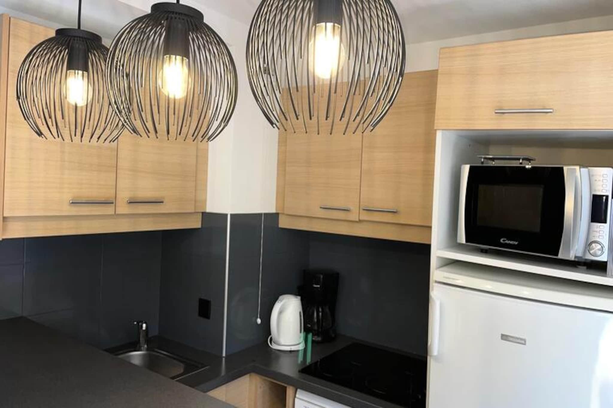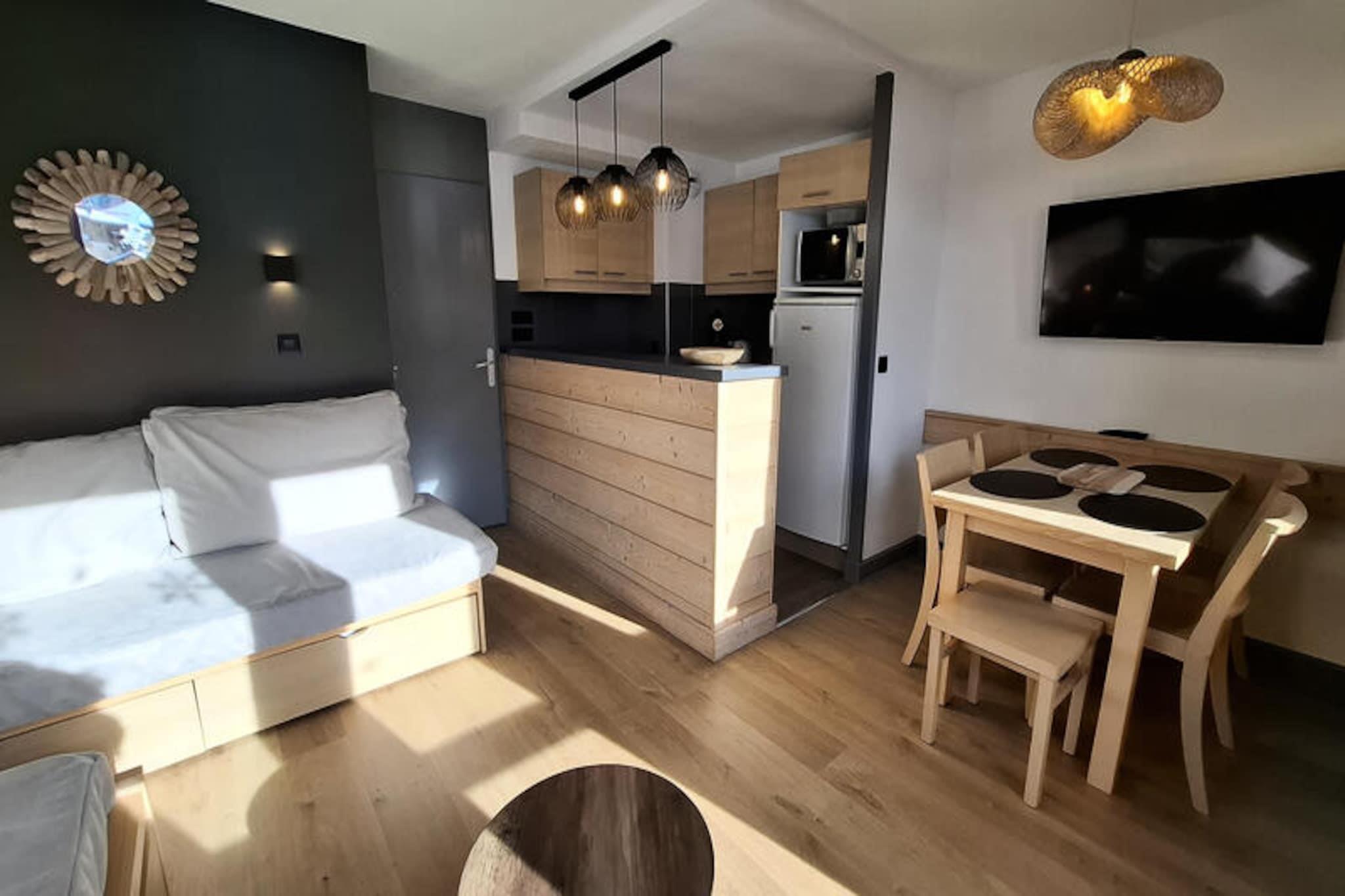 Forestil dig at vågne op til den fredfyldte skønhed i de franske alper, hvor dit hyggelige tilflugtssted i Plagne 1800 tilbyder den perfekte balance mellem komfort og eventyr. Denne charmerende 2-værelses lejlighed, beliggende i Ellebore-residensen, er designet til 4-5 gæster og tilbyder en varm og indbydende atmosfære til din bjergferie. Med en stor sydvendt balkon kan du nyde en betagende udsigt over pisterne og det pulserende Plagne Centre, der sætter tonen for uforglemmelige alpine morgener. \n\nIndenfor har lejligheden et veludstyret køkken med en 4-brænder keramisk kogeplade, mikrobølgeovn, køleskab og opvaskemaskine, hvilket gør madlavning til en leg. Stuen tilbyder en komfortabel sovesofa, en udtræksseng og en enkelt sovesofa, suppleret med et fladskærms-tv til hyggelige aftener derhjemme. Soveværelset kan prale af en 140 cm dobbeltseng med dyner til afslappende nætter, mens badeværelset har et badekar og et håndvaskskab. Et separat toilet er mere praktisk, og et skiskab sikrer, at dit udstyr altid er klar til pisterne. \n\nBeliggenheden er ideel til både afslapning og udforskning. Adgang til pisterne er kun 150 meter væk, og du kan nemt gå eller bruge den gratis shuttlebus. I nærheden finder du et bageri, en butik med regionale råvarer og en sportsbutik, mens der kun ligger et minimarked og en restaurant 200 meter fra din dør. Gæsterne har også gratis adgang til Plagne 1800-swimmingpoolen, som er perfekt til afslapning efter en dag på ski eller vandreture. \n\nUanset om du er her for at snowboarde i frisk puddersne eller udforske de betagende stier i Alperne, tilbyder denne lejlighed en indbydende base for at skabe varige minder. Med sin førsteklasses beliggenhed og gennemtænkte faciliteter er det et ideelt valg for familier eller små grupper, der søger en autentisk bjergferie.