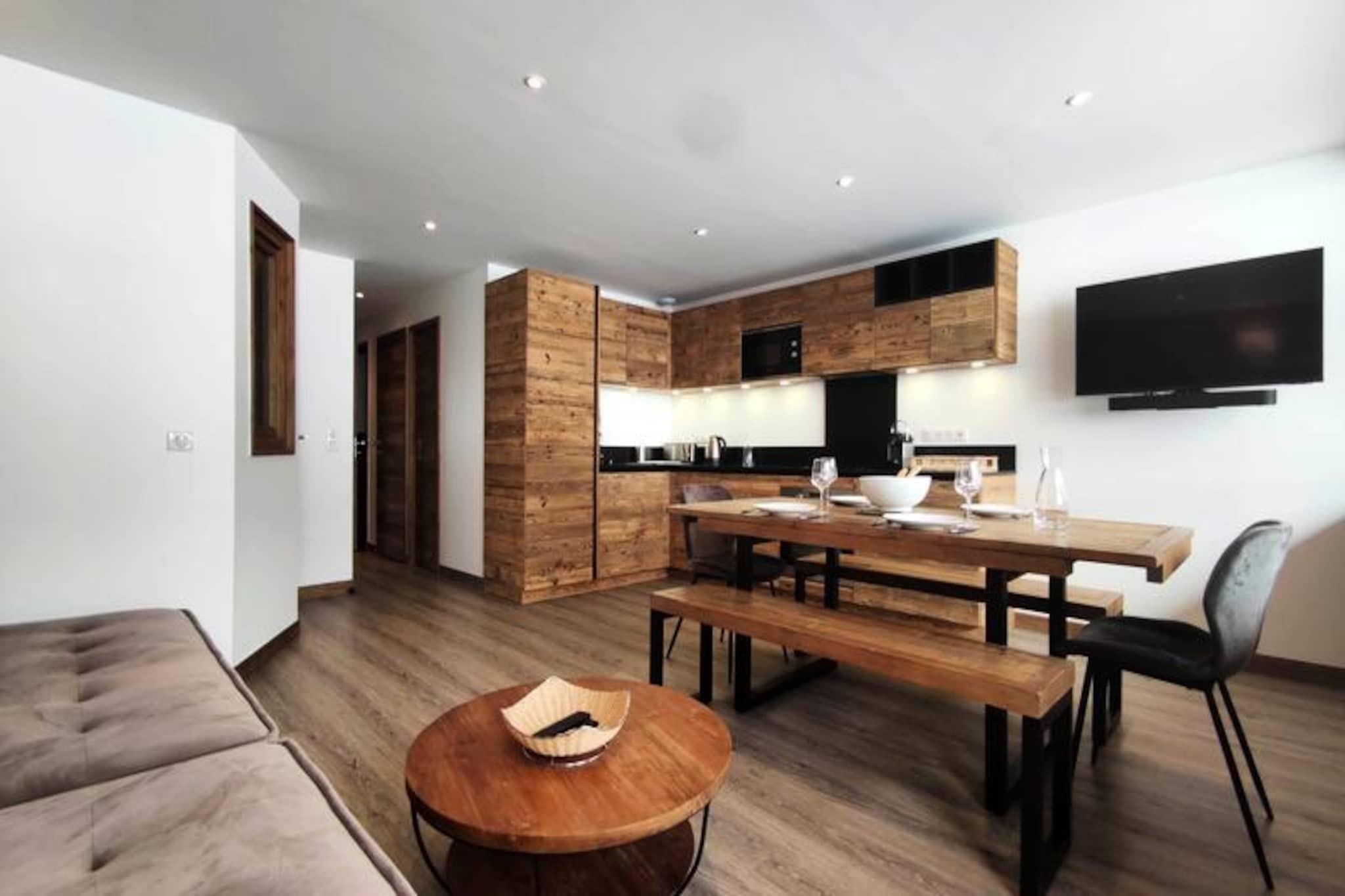 I hjertet af Plagne Centre, hvor sneen glitrer under den alpine sol, tilbyder denne elegante lejlighed et luksuriøst tilflugtssted for både vintersportsentusiaster og bjergelskere. Beliggende i den prestigefyldte Nanda Devi II Residence, placerer denne ejendom dig direkte på snefronten med en betagende udsigt over pisterne fra den sydvendte balkon. Her er hvert øjeblik fyldt med charmen fra de franske alper, uanset om du nyder en varm drink på balkonen eller gør dig klar til en dag med eventyr. Denne luksuslejlighed er på 60 m² og har komfortabel plads til op til seks gæster. Den gennemtænkte planløsning omfatter to hyggelige soveværelser og to moderne badeværelser. Soveværelset har en luksuriøs dobbeltseng og et ensuite badeværelse, mens det andet soveværelse med udsigt over opholdsstuen tilbyder fire køjesenge, perfekt til familier eller vennegrupper. Det åbne køkken er fuldt udstyret med keramiske kogeplader, ovn, mikrobølgeovn, køleskab og opvaskemaskine, hvilket gør det nemt at tilberede solide måltider efter en dag på pisterne. Stuen med sin komfortable sovesofa og fladskærms-tv giver det perfekte sted at slappe af. Yderligere bekvemmeligheder inkluderer en vægmonteret skistøvletørrer, Wi-Fi og en vaskemaskine med tørretumbler. Ud over lejligheden tilbyder Plagne Centre en livlig atmosfære med skiskoler, butikker og restauranter kun få skridt væk. Boligens førsteklasses beliggenhed sikrer ubesværet adgang til det vidtstrakte Paradiski-skiområde, der er kendt for sine varierede pister og fantastiske alpine landskaber. Uanset om du er en erfaren skiløber eller en førstegangsbesøgende, vil bekvemmeligheden ved ski-in/ski-out-adgang forbedre din ferieoplevelse. Denne ejendom er mere end bare et sted at bo; det er en port til uforglemmelige alpine eventyr. Med sin blanding af komfort, stil og uovertruffen beliggenhed lover den en ferie fyldt med værdsatte minder i hjertet af de franske alper.