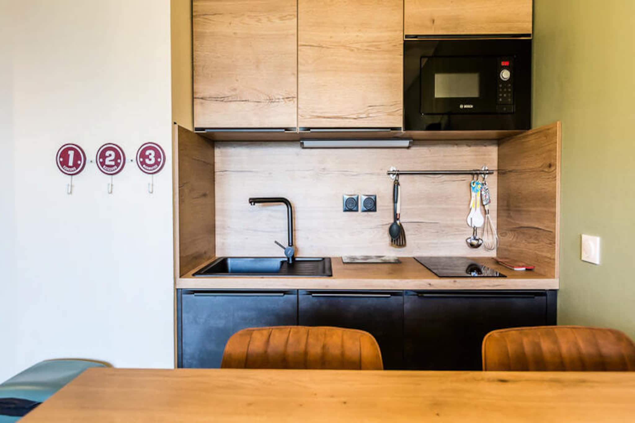 Beliggende på pisterne i Montchavin Les Coches i det berømte skisportsområde La Plagne, tilbyder denne charmerende lejlighed et hyggeligt tilflugtssted med en betagende udsigt over Mont Blanc og dalen nedenfor. Uanset om du er her for vintereventyr eller sommerferier, tilbyder residensen Le Rami direkte adgang til pisterne og ligger kun 900 meter fra lokale butikker, hvilket sikrer bekvemmelighed og komfort under hele dit ophold. Forestil dig at nippe til din morgenkaffe på den nordvestvendte balkon og nyde den alpine ro, inden du tager ud på en dag med udforskning. \n\nDenne totalrenoverede 2-værelses lejlighed er omhyggeligt designet til at rumme op til fire gæster på sit 28 m² store areal. Stuen har en komfortabel dobbelt sovesofa og et fladskærms-tv, mens soveværelset har to enkeltsenge og et andet tv til ekstra afslapning. Køkkenet er udstyret med keramiske kogeplader, køleskab, opvaskemaskine, mikrobølgeovn, elkedel og brødrister, hvilket gør det nemt at tilberede måltider efter en dag på pisterne. Yderligere faciliteter inkluderer en støvletørrer i entréskabet, et badeværelse med bruser og et separat toilet. Slutrengøring er inkluderet, men gæsterne bedes efterlade køkkenet ryddeligt og organiseret. Der tilbydes valgfri linned og Wi-Fi for ekstra bekvemmelighed.\n\nResidensen tilbyder også gratis udendørs parkering, skibokse og kæledyrsvenlig indkvartering mod et mindre tillæg. Ud over ejendommen inviterer La Plagne-området dig til at udforske det store skiområde, naturskønne vandrestier og pulserende landsbyliv. Uanset om du står på ski ned ad pudrede pister eller nyder sommerfestivaler, fungerer denne lejlighed som den perfekte base for at skabe uforglemmelige alpine minder. Med Mont Blanc som baggrund føles hvert øjeblik her som et postkort, der kommer til live.