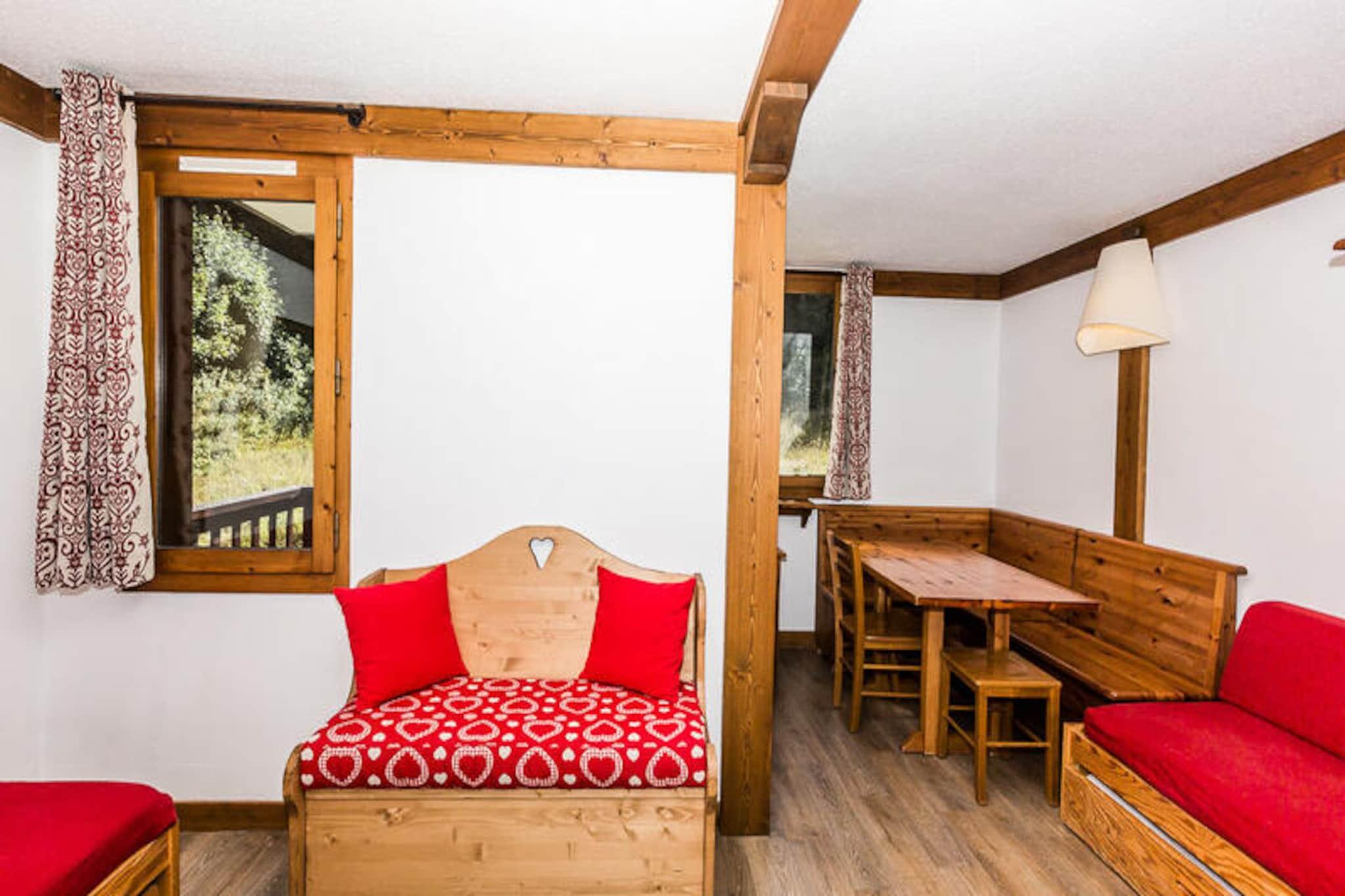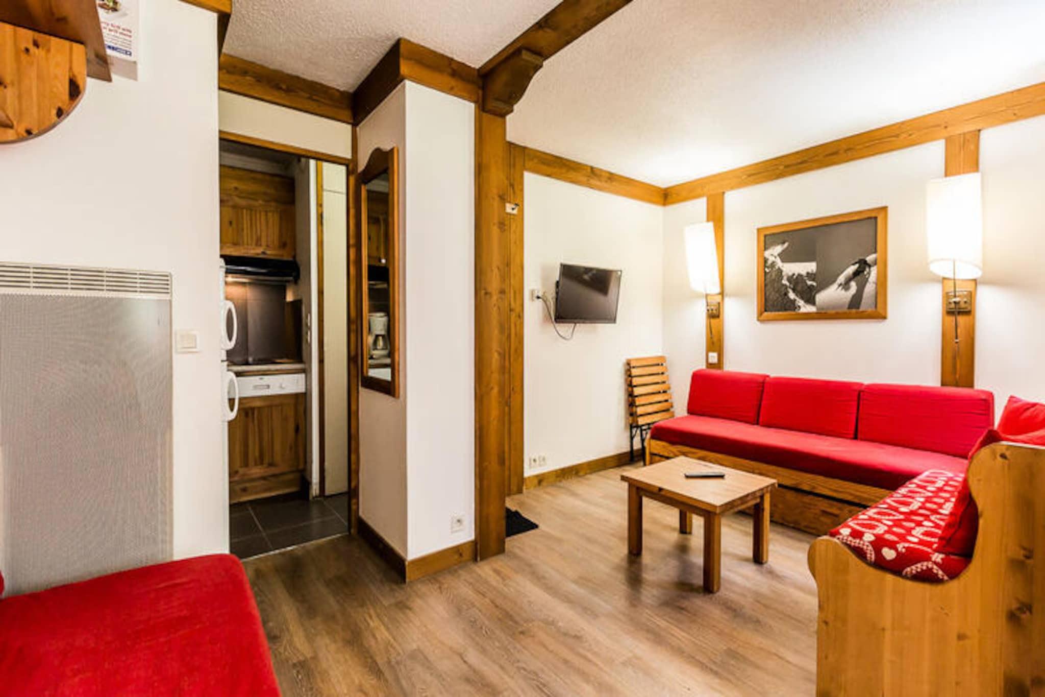 I den charmerende alpelandsby Montchavin Les Coches, hvor de snedækkede tinder af La Plagne skaber en betagende kulisse, tilbyder denne hyggelige studiolejlighed et dejligt tilflugtssted for rejsende, der søger både eventyr og ro. Med sin sydvendte balkon kan du vågne op til en fantastisk udsigt over bjergene og sole dig i sollyset, mens du planlægger din dag i dette maleriske hjørne af de franske alper. Kun en kort gåtur fra skilifterne og de lokale butikker kombinerer boligen bekvemmelighed med den fredfyldte skønhed i omgivelserne. \n\nLejligheden, der ligger på første sal i det tre-etagers Le Chalet de Montchavin, er omhyggeligt designet til at rumme op til fire gæster. Det kompakte, men veludstyrede køkken har keramiske kogeplader, køleskab med fryser, opvaskemaskine og en kombineret mikrobølgeovn, hvilket sikrer, at du har alt, hvad du behøver for at tilberede solide måltider efter en dag på pisterne. Opholdsstuen med to sæt udtrækssenge og et fladskærms-tv giver et hyggeligt sted at slappe af, mens det moderne badeværelse med bruser og vaskemaskine bidrager til komforten under dit ophold. Et separat toilet sikrer ekstra bekvemmelighed. \n\nBeliggende kun fem minutters gang fra skilifterne er denne lejlighed perfekt til vintersportsentusiaster, der er ivrige efter at udforske det vidtstrakte Paradiski-område. Om sommeren forvandles området til et paradis for vandrere og cyklister med stier, der snor sig gennem frodige alpine enge og skove. Gratis udendørs parkering og skibokse i stueetagen gør dit ophold problemfrit, mens de nærliggende butikker og restauranter tilbyder en smagsprøve på den lokale Savoyard-kultur. \n\nUanset om du er her for at grave dig gennem uberørt sne eller for at nyde bjergenes rolige skønhed, er denne lejlighed din port til uforglemmelige alpine eventyr. Dens blanding af komfort, bekvemmelighed og fantastiske udsigt sikrer et mindeværdigt ophold i Montchavin Les Coches.