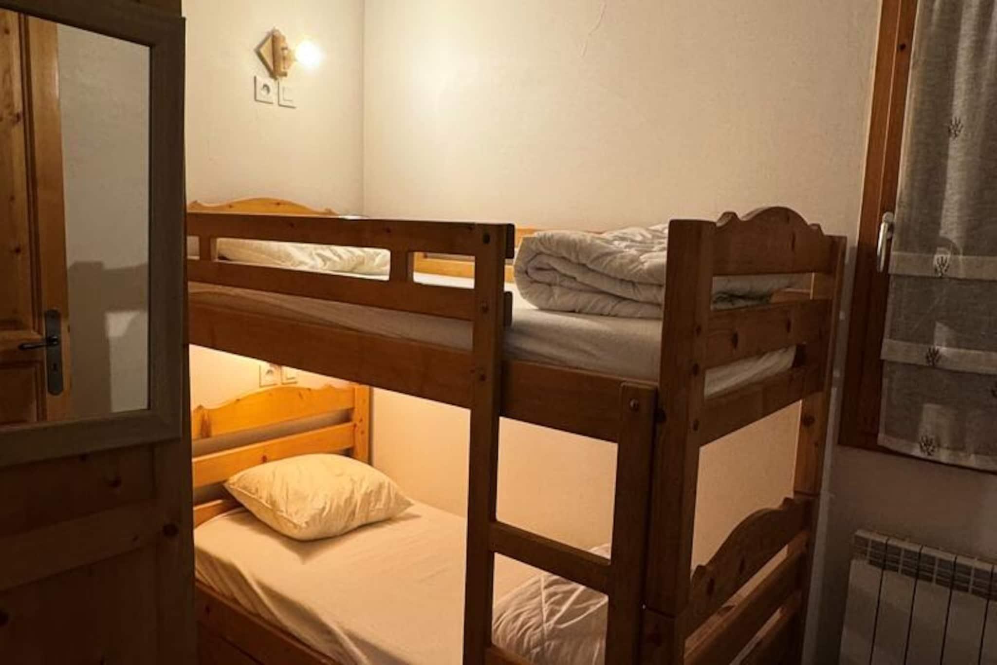 Højt over den charmerende landsby Belle Plagne tilbyder dette elegante alpine tilflugtssted en perfekt blanding af komfort og bekvemmelighed til din bjergferie. Denne sydvestvendte lejlighed ligger på syvende sal og kan prale af en privat balkon med en betagende udsigt over pisterne, der inviterer dig til at vågne op til de franske alpers fredfyldte skønhed hver morgen. Uanset om du er her for spændende vintersport eller sommereventyr, placerer denne bolig dig i hjertet af det hele. Den 59 m² store lejlighed er designet til at rumme op til seks gæster og har en hyggelig stue med en dobbelt sovesofa og et fladskærms-tv med dvd-afspiller, perfekt til afslapning efter en aktiv dag. Soveværelset har en komfortabel dobbeltseng og et eget brusebad, mens det andet soveværelse er udstyret med køjesenge, ideelt for familier. Det åbne køkken er fuldt udstyret med moderne apparater, herunder keramisk kogeplade, opvaskemaskine, ovn, mikrobølgeovn og køleskab med fryser, hvilket sikrer, at du har alt, hvad du behøver for at tilberede lækre måltider. Et rummeligt badeværelse med badekar og separat toilet bidrager til bekvemmeligheden. Selve boligen tilbyder et væld af faciliteter, herunder en opvarmet indendørs pool og et afslapnings- og wellnesscenter med sauna, jacuzzi, hammam og oplevelsesbruser. Ski-in/ski-out-adgang og skibokse gør det nemt at komme ud på pisterne, mens de nærliggende butikker, kun 100 meter væk, tilbyder alle de nødvendige faciliteter. Underjordisk parkering og gratis Wi-Fi i hele boligen sikrer et problemfrit ophold. Uanset om du søger spændingen ved skiløb, roen i alpine landskaber eller luksusen ved et wellness-opholdssted, lover denne Belle Plagne-lejlighed en uforglemmelig ferie. Med sin kæledyrsvenlige politik og gennemtænkte faciliteter er det det perfekte valg for familier, par eller vennegrupper, der ønsker at skabe varige minder i bjergene.