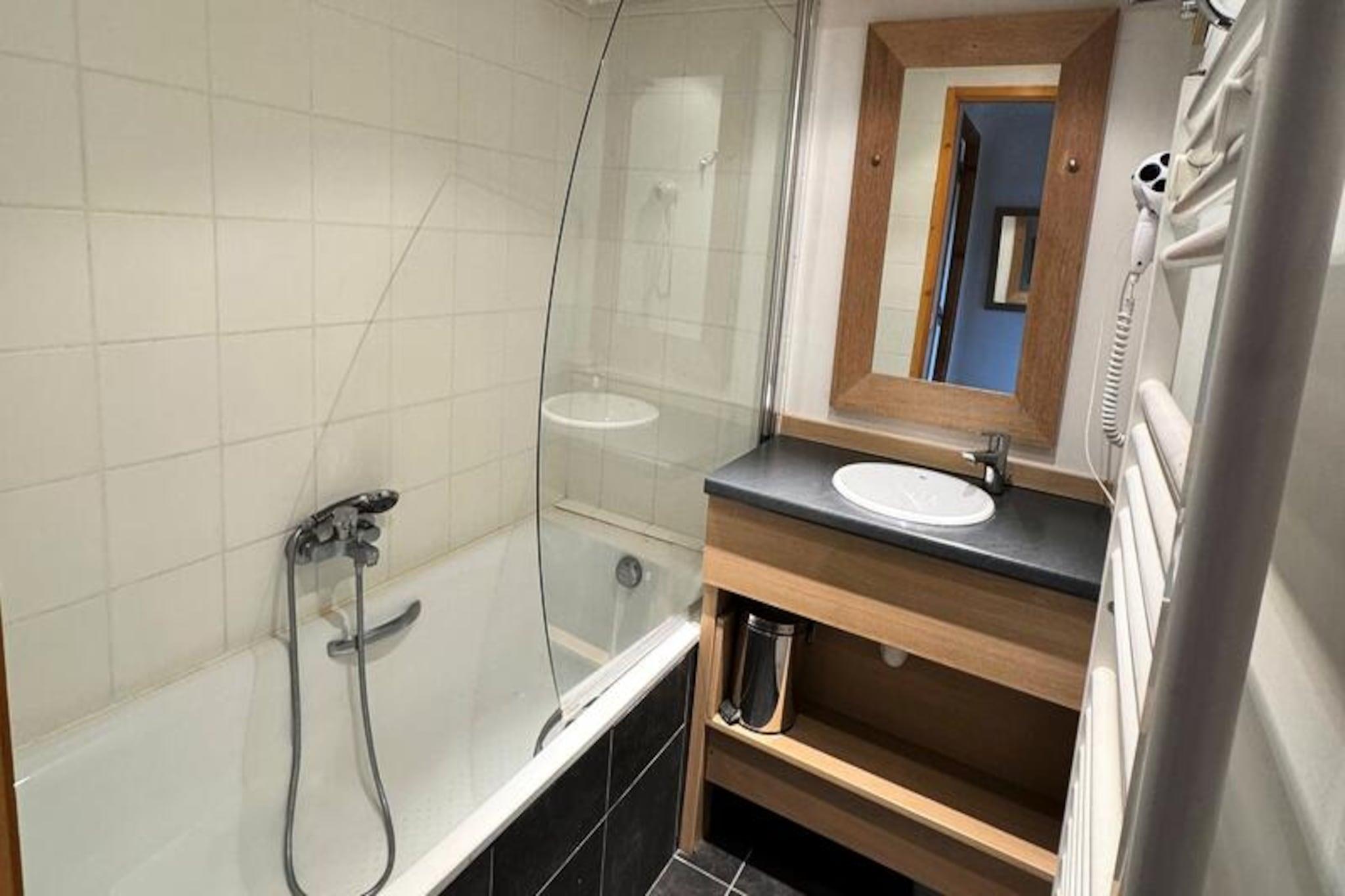 I hjertet af det betagende Belle Plagne tilbyder denne charmerende studiolejlighed et hyggeligt tilflugtssted for foden af ??pisterne. Forestil dig at vågne op til den fredfyldte skønhed af snedækkede bjerge, træde ud på din private balkon for at nyde den sydvestvendte udsigt og begive dig direkte ud i en dag med alpint eventyr. Med sin førsteklasses beliggenhed på tredje sal i en bolig med direkte adgang til skisportssteder er denne ejendom perfekt til dem, der søger bekvemmelighed og komfort i de franske alper. \n\nLejligheden er designet til at rumme op til fire gæster og har en gennemtænkt sovealkove med køjesenge og en stue med en komfortabel dobbeltsovesofa. Det åbne køkken er fuldt udstyret med moderne faciliteter, herunder keramisk kogeplade, opvaskemaskine, ovn, mikrobølgeovn og køleskab med fryser, hvilket gør det nemt at tilberede solide måltider efter en dag på pisterne. Badeværelset har badekar og hårtørrer, mens et separat toilet bidrager til rummets praktiske anvendelighed. Sengelinned, håndklæder og dyner er inkluderet for at sikre et problemfrit ophold.\n\nSelve boligen kan prale af exceptionelle faciliteter, herunder en opvarmet indendørs swimmingpool og et wellnesscenter med sauna, jacuzzi, hammam og oplevelsesbruser. Skibokse på første sal tilbyder praktisk opbevaring, og de nærliggende butikker, der ligger kun 100 meter væk, tilbyder alt hvad du behøver til din ferie. Gratis Wi-Fi holder dig forbundet, mens kæledyr er velkomne mod et mindre tillæg, hvilket gør dette til en virkelig inkluderende destination.\n\nUanset om du er her for at stå på ski på de uberørte pister, slappe af i wellnesscentret eller blot nyde de maleriske omgivelser, lover dette Belle Plagne-studie en uforglemmelig alpin ferie. Med sin blanding af moderne bekvemmeligheder og fantastisk naturlig skønhed er det det perfekte valg for par, familier eller venner, der ønsker at skabe varige minder i de franske alper.