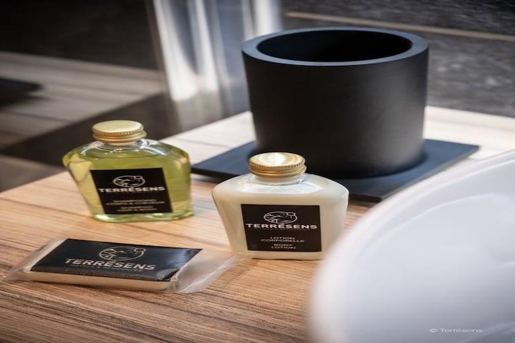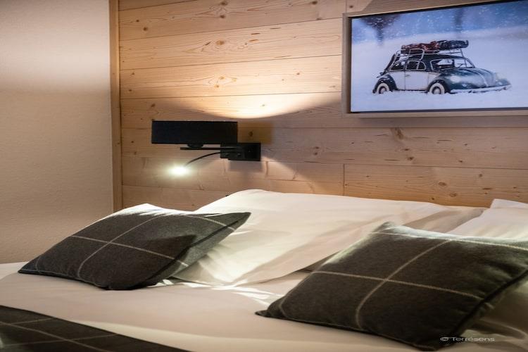 Stue(dobbeltsovesofa(160 x 190 cm), Fjernsyn(fladskærm), sofahjørne), åbent køkken(kogeplade(glaskeramisk), elkedel, brødrister, kaffemaskine, mikrobølgeovn, opvaskemaskine , køleskab, ), tekøkken(elkedel, brødrister, espressomaskine, mikrobølgeovn, køleskab, ), soveværelse(dobbeltseng(160 x 200 cm)), Hytte(køjeseng(80 x 190 cm)), badeværelse(bruser, toilet), badeværelse(bruser, toilet), terrasse