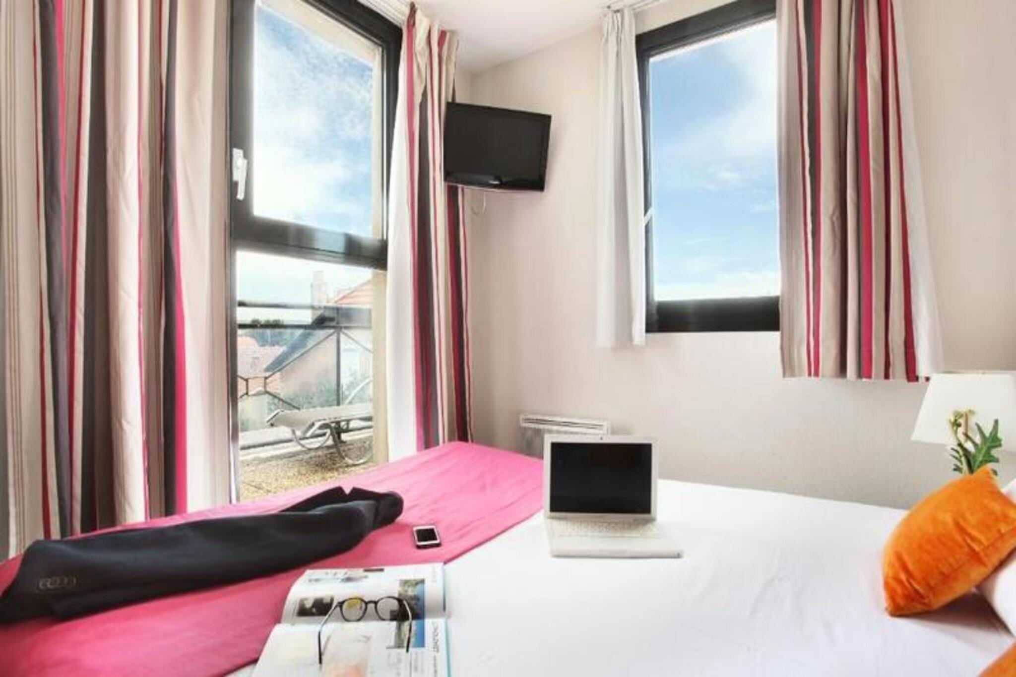 Beliggende kun 5 minutter fra den berømte Cours Mirabeau i Aix-en-Provence, tilbyder dette Appart'hotel en ideel ramme for at udforske byens rige historie. De rummelige boliger omfatter en stue med en udtrækssovesofa til to, et soveværelse med en dobbeltseng, et veludstyret køkken og et badeværelse eller bruser med toilet. Gæsterne kan nyde gratis højhastigheds-Wi-Fi og et tv i deres lejlighed. Kæledyr er velkomne mod et ekstra gebyr, hvilket sikrer, at dine lodne venner kan slutte sig til dig under dit ophold. Til afslapning har etablissementet en opvarmet udendørs swimmingpool, tilgængelig fra april til oktober, afhængigt af vejrforholdene. Det omkringliggende område er perfekt til sightseeing, fra den fantastiske arkitektoniske arv i Aix-en-Provence til nærliggende attraktioner såsom Frioul-øerne, Château d'If og Calanques i Marseille. Du kan også nyde en dejlig morgenbuffet hver morgen for at starte din dag. Yderligere faciliteter inkluderer et solarium med liggestole, underjordisk parkering (mod et ekstra gebyr) og en række valgfrie tjenester såsom slutrengøring, håndklædesæt og mere. Ejendommen er ideel for dem, der ønsker at udforske byen, mens de nyder moderne bekvemmeligheder og en afslappende atmosfære.