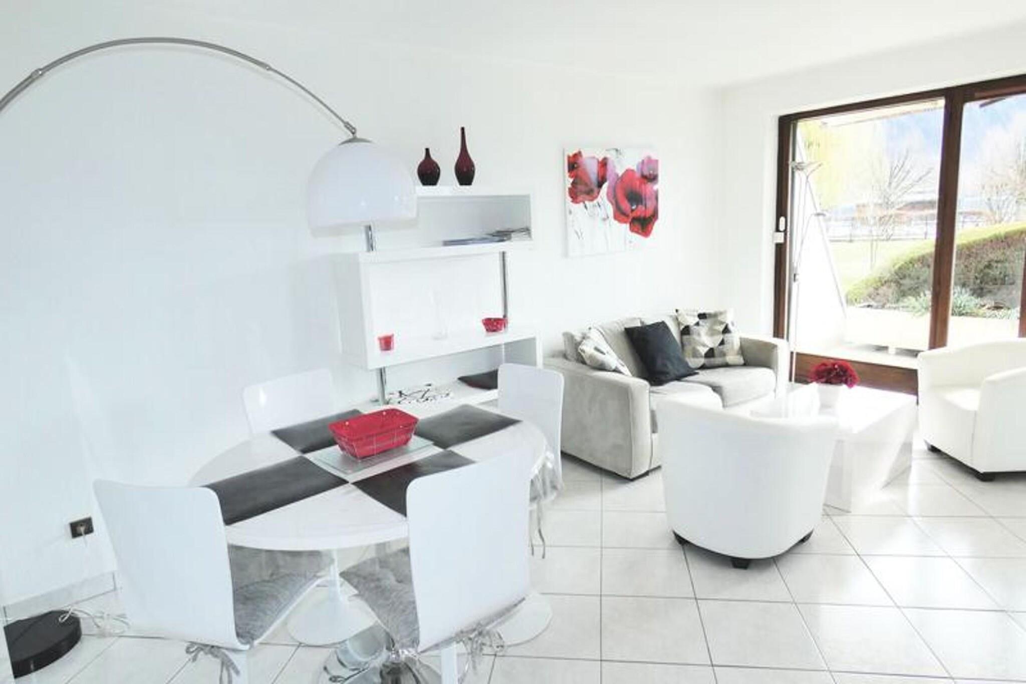 Denne moderne 2-værelses lejlighed, beliggende i den hævede stueetage, tilbyder et lyst og behageligt ophold for op til 4 personer. Soveværelset har to 90 cm senge, og stuen har en sovesofa, fladskærms-tv og en spiseplads med plads til fire. Selvom kæledyr ikke er tilladt, tilbyder lejligheden yderligere tjenester såsom sengelinned, håndklæder og en babyseng (afhængigt af tilgængelighed). Der er en udendørs parkeringsplads, og et depositum på EURO 500 er påkrævet. Lejlighedens førsteklasses beliggenhed ved bredden af ??Lake Bourget giver en fantastisk udsigt over søen og Dent du Chat. Gæsterne kan nyde afslappede gåture langs Petit Port, kun 2,5 km fra turistkontoret og kasinoet, eller tage en bus (linje nr. 1) for nem adgang til byens centrum. Chevalley Thermal Baths ligger 3 km derfra, og Mont Revard ligger naturskønt 23 km derfra. Området er perfekt til afslapning, med muligheder for udendørs aktiviteter og sightseeing. Indvendigt byder lejligheden på et veludstyret åbent køkken med keramiske kogeplader, mikroovn, el-ovn, køleskab/fryser, opvaskemaskine og vaskemaskine. Badeværelset har bruseniche og håndvask på et skab. Den rummelige 30 m² store terrasse er møbleret og tilbyder et perfekt sted at nyde udsigten. Yderligere faciliteter inkluderer fiberinternet (SFR-boks), elvarme, en terrassemarkise og elektriske skodder for din komfort.
