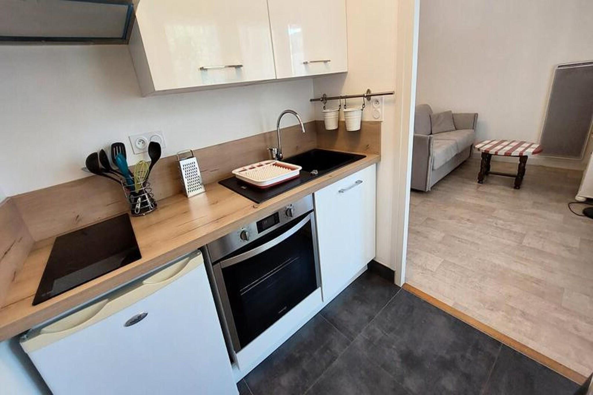 Denne komfortable studiolejlighed i hjertet af Aix-les-Bains er perfekt til op til 2 gæster. Den har en 140 cm rapido sovesofa, to 80 cm senge (kan laves om til 160 cm), natborde og et fladskærms-tv. Yderligere faciliteter omfatter et sofabord, spisebord med 2 stole og et påklædningsværelse. Kæledyr er velkomne, og studiet er udstyret med individuel elektrisk opvarmning, en kolonneventilator og en manuel rulleskodde. Et depositum på 305 EURO er påkrævet, med valgfrie tjenester såsom sengelinned, håndklæder og slutrengøring tilgængelige mod et ekstra gebyr. Beliggende kun 500 meter fra turistkontoret, kasinoet og togstationen, er denne lejlighed et ideelt sted at udforske byen. Chevalley Thermal Baths ligger kun 900 meter derfra, mens den smukke sø ligger 2,5 km fra ejendommen. Gæsterne kan også nyde at slentre gennem det nærliggende marked, hvor de kan prøve lokale produkter og opleve den livlige atmosfære i byens centrum. Lejligheden er fuldt udstyret til et ophold med egen forplejning, med tekøkken med induktionskomfur, mikroovn, elektrisk ovn, vask, køleskab med fryser og alt det nødvendige køkkenudstyr. Badeværelset har badekar med bruseafskærmning, vaskeskab, vaskemaskine og separat toilet. Wi-Fi er tilgængeligt gennem Orange Box, og parkering på gaden eller overdækkede parkeringspladser kan arrangeres.