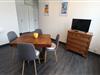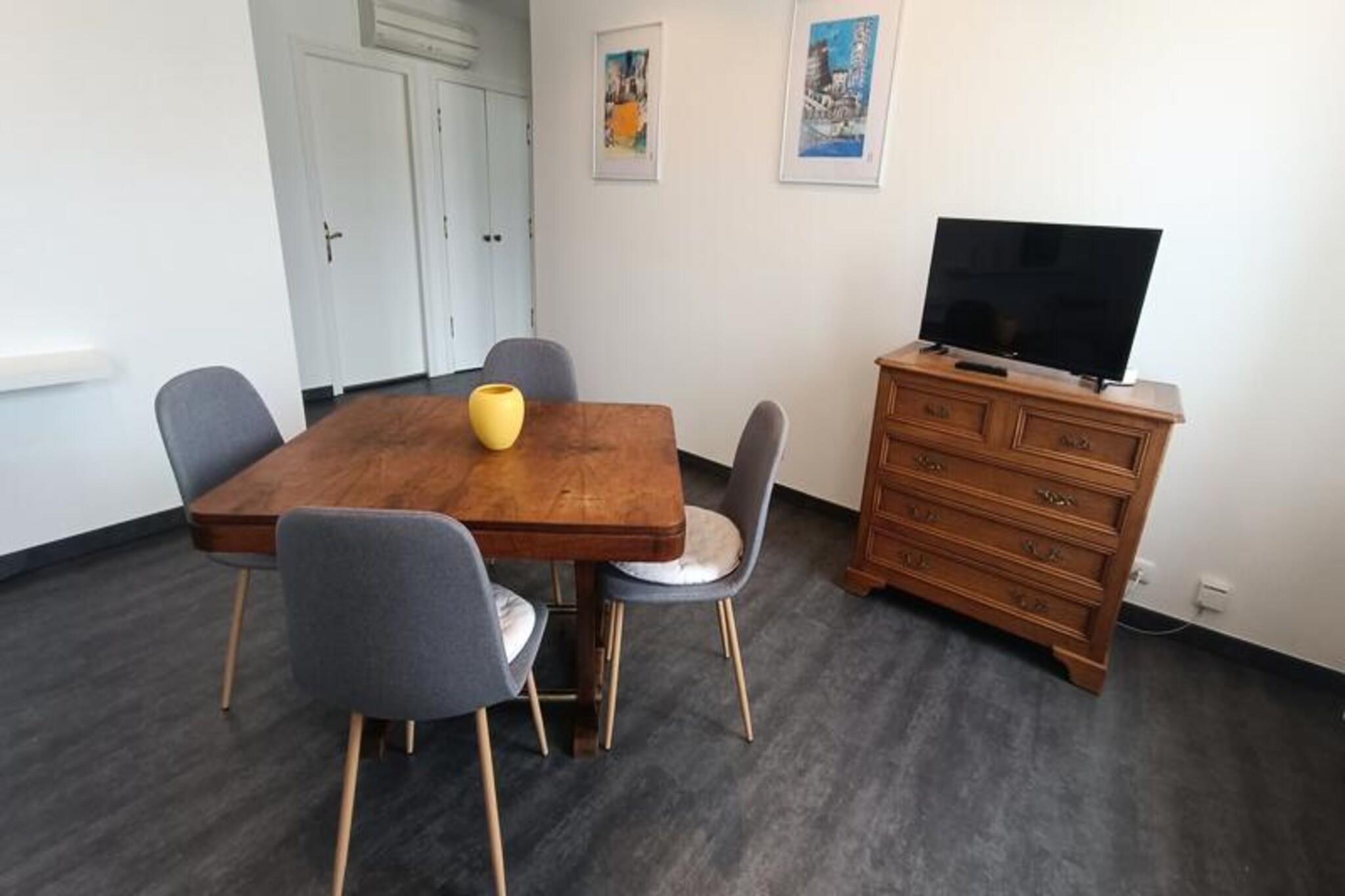 Denne charmerende 1-værelses lejlighed, beliggende på 4. sal, byder på et hyggeligt oase for 2 personer. Den har en rapido 140 cm sofa, fladskærms-tv, spisebord med fire stole og en komfortabel 160 cm seng i soveværelset. Lejligheden er udstyret med reversibelt klimaanlæg, røgdetektor og internetadgang. Kæledyr er ikke tilladt, hvilket sikrer et fredeligt miljø. Ideelt beliggende kun 300 meter fra turistkontoret og en kort gåtur fra Parc Bois Vidal, tilbyder denne lejlighed nem adgang til Aix les Bains hovedattraktioner. De berømte Chevalley Thermal Baths ligger kun 1 km derfra, og kasinoet ligger 500 m fra ejendommen. Gæsterne kan også nyde en fredelig spadseretur gennem den nærliggende Green Park, kendt for sine springvand og blomsterbede. Lac du Bourget ligger kun 2,5 km væk og giver mulighed for aktiviteter ved søen. Lejligheden har et veludstyret køkken med køleskab/fryser, mikroovn, induktionskomfur og opvaskemaskine. Det moderne badeværelse har italiensk bruser og dobbelt håndvask, og der er separat toilet. Et skab i hallen tilbyder ekstra opbevaringsplads og rummer en vaskemaskine. Til lejligheden hører en garageplads for ekstra bekvemmelighed. Yderligere tjenester såsom slutrengøring og sengetøj er tilgængelige mod et tillægsgebyr.