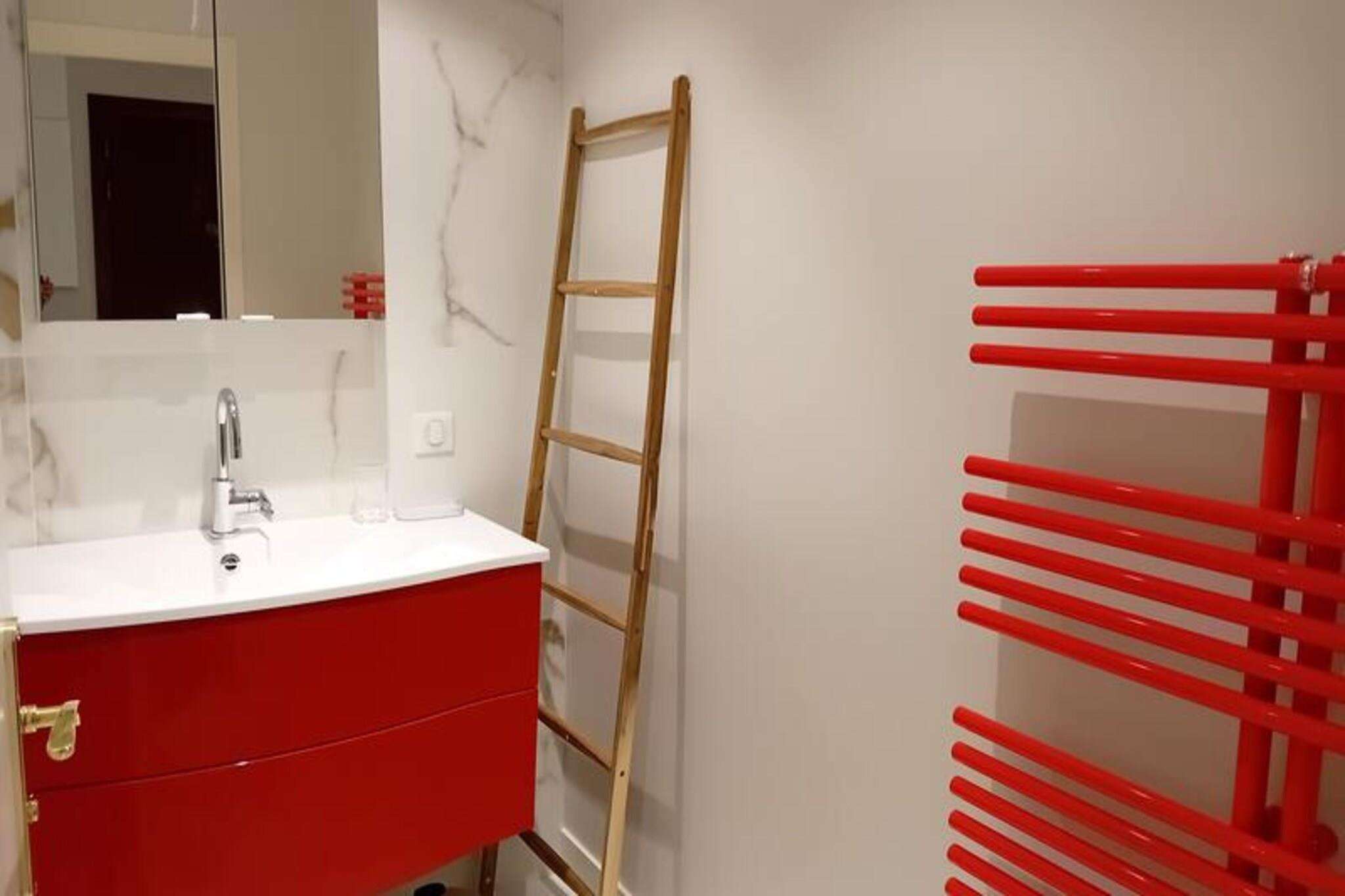 På 4, Rue du Temple i Aix les Bains Nylig bygning af god status i hjertet af byen. Det er placeret 740 m fra turistkontoret og 1150 m fra Chevalley termiske bade, 2300 m fra Marlioz termiske bade, 3000 m fra Lac du Bourget (H5 på kortet) Det består af 7 etager med elevator. Åbningen er sikret med vigik og samtaleanlæg. I hjertet af byens centrum finder du i nærheden alt hvad du behøver for et behageligt og bekvemt ophold. Meget varm lejlighed Prestige række / 1. sal med elevator Klassificering i møbleret turistindkvartering i 3*2 personer Et areal på ca. 60m² mod øst/vest Møbleret vestlig altan (adgang via et trin, 2 håndtag) Stor entré (flisegulv): små skænke, store opbevaringspladser (garderobeskabe/hylder) Hovedrum (flisegulv) med udgang til vestlig balkon: 1 rundt bord med 4 stole, 1 tv-enhed, 1 fladskærms-tv, 1 "cabriolet" sofa, 1 server, 1 træbord, 1 lille gulvlampe. Køkken på balkonen (flisegulv): vask, 1 køleskab/fryser, 2 induktionskomfur, 1 mikroovn, 1 elektrisk ovn, 1 opvaskemaskine, 1 elektrisk kaffemaskine, 1 elkedel, 1 brødrister, porcelæn og køkkengrej. Soveværelse: (parketgulv) vindue til østgård, 1 160cm sengetøj (2 stk 80cm madrasser på stor boxspring), 2 sengeborde med lamper, 1 sekretær med lampe og stol, stort klædeskab/vægskab. Badeværelse (flisegulv): italiensk bruser, håndvask, vaskemaskine, elektrisk håndklædetørrer, hårtørrer. Væghængt toilet (uafhængig) Mulighed for parkering på vej eller offentlig parkeringsplads. For mere information, se "Aix'Pass" One-Stop Shop DIVERSE: individuel gaskedel, røgdetektor, ventilator, små hunde accepteres "kun" Internetadgang "Box Red by Sfr". Yderligere tjenester mod tillægsgebyr: slutrengøring, sengelinned, håndklæder, kæledyr, babyseng (afhængig af tilgængelighed efter anmodning). Depositum (i euro) - 500 Opvarmning - 1