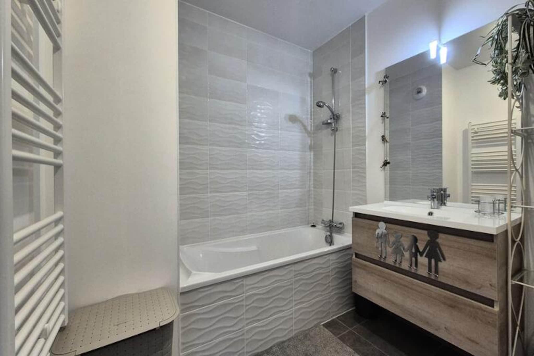 I den fredfyldte by Aix-les-Bains, hvor søens charme møder bjergenes majestæt, tilbyder denne moderne bolig en perfekt blanding af ro og bekvemmelighed. Beliggende kun en kort køretur fra det pulserende bycentrum og den maleriske søbred, inviterer den dig til at opleve det bedste fra begge verdener - natur og byliv. Uanset om du søger et fredeligt tilflugtssted eller en aktiv ferie, henvender denne beliggenhed sig til ethvert humør og øjeblik. Forestil dig at starte din dag med en spadseretur gennem den nærliggende Corsuet-skov eller nyde de terapeutiske fordele ved de berømte Chevalley Thermal Baths, kun få minutter væk. \n\nDenne rummelige, omhyggeligt designede lejlighed på 81 m² er en oase af komfort og stil. Beliggende på første sal i en prestigefyldt bygning, har den udsigt fra begge sider og en gennemtænkt planløsning, der rummer op til fire gæster. Den åbne opholdsstue, komplet med en hyggelig sofa, lænestol og fladskærms-tv, flyder problemfrit over i et fuldt udstyret køkken med moderne apparater som induktionskogeplade, ovn, mikrobølgeovn og opvaskemaskine. To elegant møblerede soveværelser tilbyder afslappende tilflugtssteder med rigelig opbevaringsplads og smagfuld indretning. Badeværelset, der er udstyret med badekar og håndklædetørrer, sørger for afslapning efter en dag med udforskning. Yderligere faciliteter inkluderer fiberoptisk internet, en crosstrainer og privat parkering med opladning af elcykler.\n\nResidensens førsteklasses beliggenhed placerer dig i nærheden af ??Aix-les-Bains' kulturelle og naturlige skatte. Gå en tur langs søpromenaden, udforsk Mont Revards betagende udsigter, eller nyd lokale delikatesser på nærliggende bagerier og restauranter. Med et apotek og busstoppested kun få skridt væk er bekvemmeligheden lige ved døren. Uanset om du er tiltrukket af det terapeutiske vand, naturskønne stier eller den charmerende byatmosfære, er denne lejlighed din port til uforglemmelige oplevelser.\n\nVælg dette elegante tilflugtssted til en ferie, der kombinerer afslapning, eventyr og den tidløse skønhed i de franske alper.