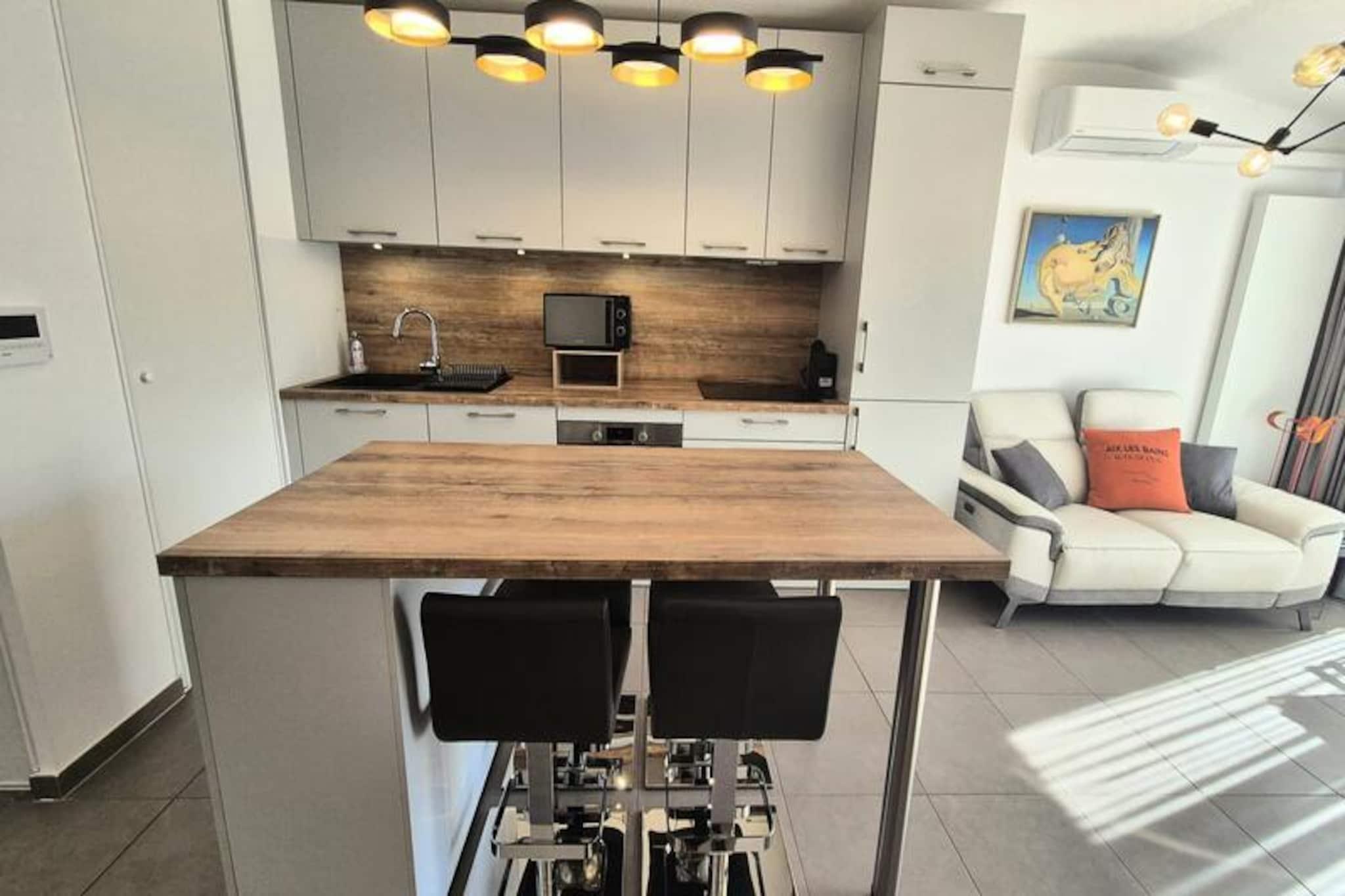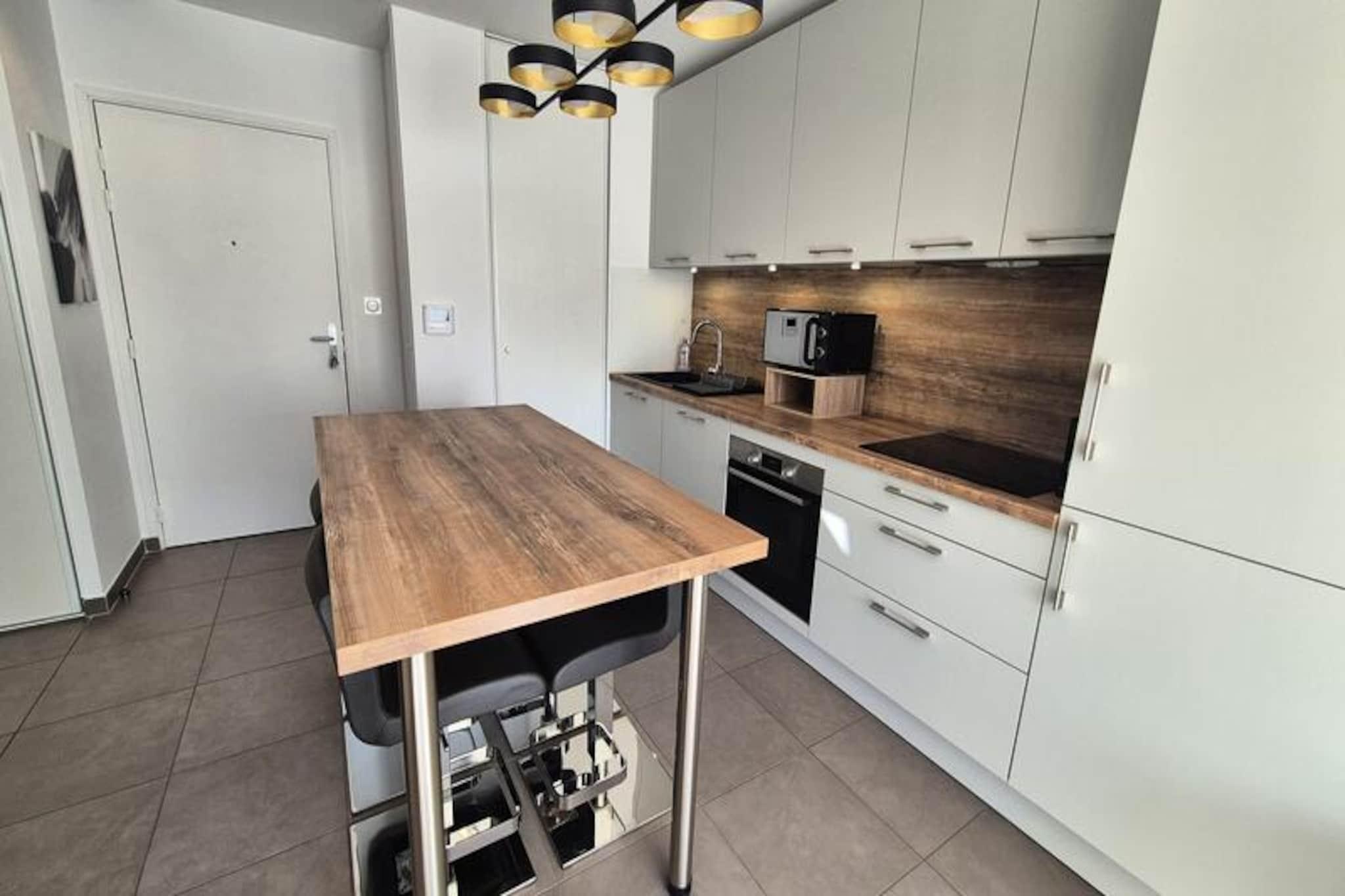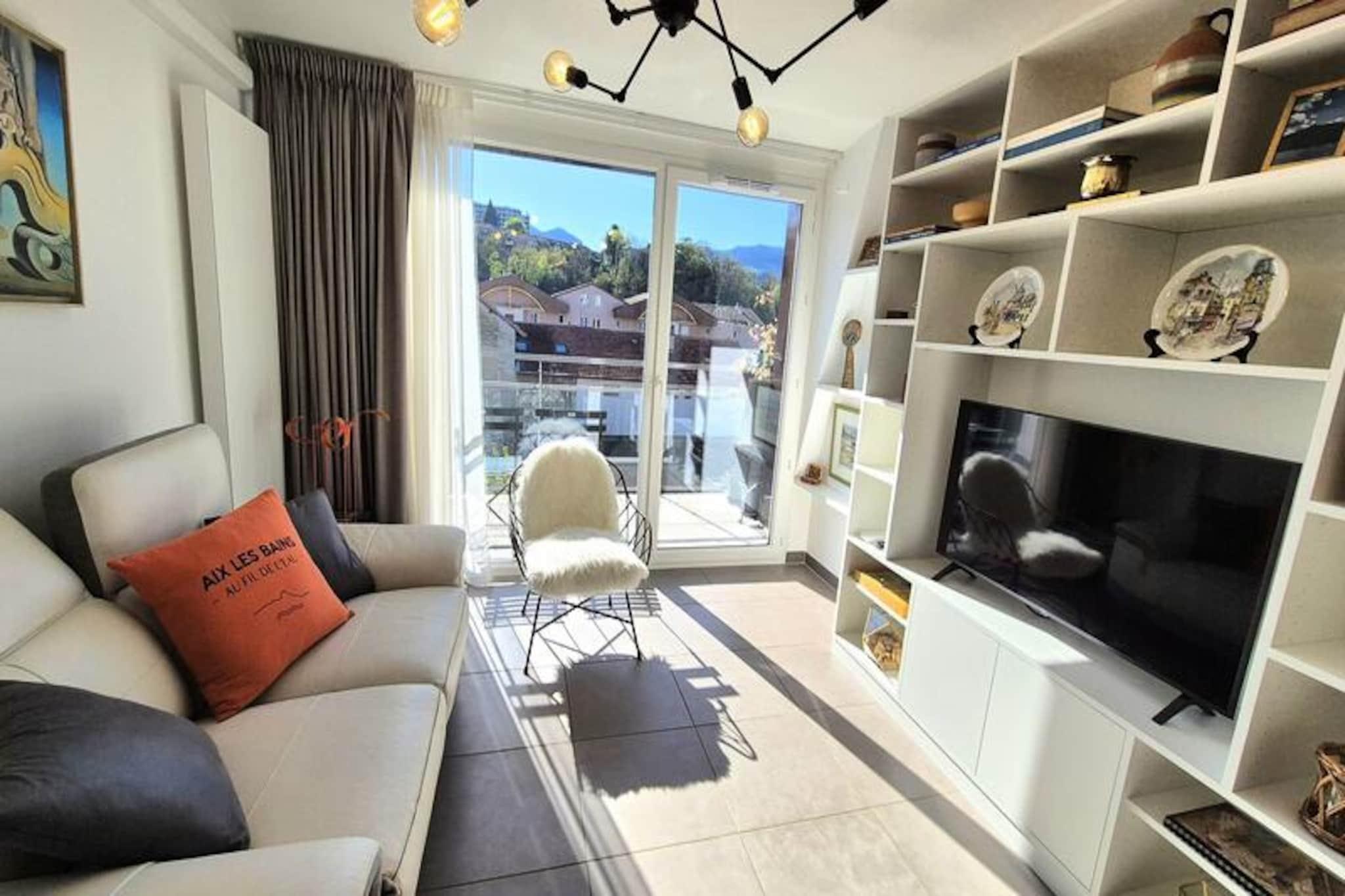 I det rolige kvarter Les Jardins du Petit Port tilbyder denne elegante 3-stjernede lejlighed et roligt tilflugtssted kun 500 meter fra Bourget-søens glitrende vand. Med sin vestvendte balkon kan du sole dig i de gyldne nuancer af den nedgående sol, mens du nyder den fredelige atmosfære i denne moderne bolig, bygget i 2020. Uanset om du søger afslapning eller eventyr, tilbyder denne ejendom den perfekte balance mellem komfort og bekvemmelighed. Den nærliggende havnefront indbyder til afslappende gåture, forfriskende cykelture eller endda et naturskønt krydstogt ombord på en af ??søens charmerende både, der fordyber dig i regionens skønhed. \n\nDenne 40 m² store lejlighed ligger på 3. sal og er tilgængelig med elevator. Den er designet med faciliteter af høj kvalitet for at sikre et behageligt ophold for op til to gæster. Den åbne opholdsstue har et fuldt udstyret køkken med en central køkkenø, induktionsblus og moderne apparater såsom opvaskemaskine, ovn og mikrobølgeovn. Det hyggelige soveværelse kan prale af en blød 160 cm seng, rigelig opbevaringsplads og et skrivebordsområde, perfekt til afslapning efter en dag med udforskning. Badeværelset har bruseniche og håndklædetørrer, mens et separat toilet giver ekstra komfort. Reversibel aircondition sikrer komfort året rundt, og ejendommen inkluderer sikker underjordisk parkering og cykelopbevaring. \n\nSelve boligen er omhyggeligt designet med anlagte fælleshaver, der fremmer en følelse af fællesskab og afslapning. Dens førsteklasses beliggenhed giver nem adgang til Aix-les-Bains' pulserende bymidte, kun 1 km væk, og de berømte Chevalley Thermal Baths, kun 3 km fra din dørtrin. Uanset om du besøger for det terapeutiske vand, den fantastiske udsigt over søen eller den charmerende lokale kultur, er denne lejlighed din port til et uforglemmeligt ophold i hjertet af de franske alper.