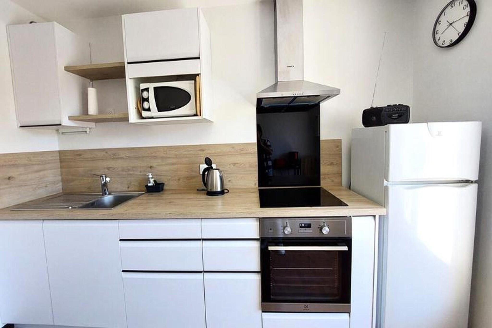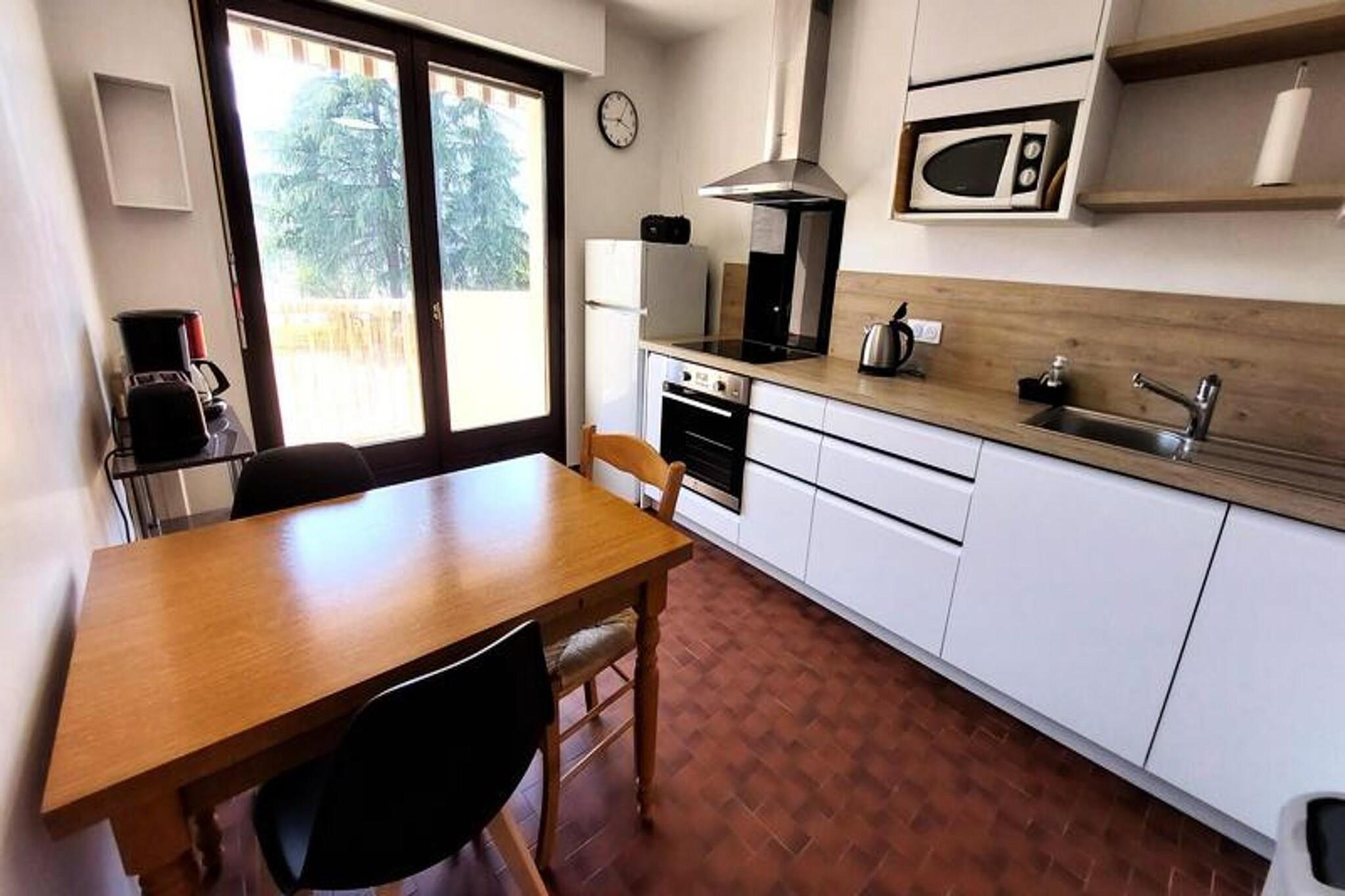 Résidence le Choiseul, på 37 avenue du Grand Port. Det ligger 500 m fra turistkontoret, 500 m fra togstationen, 600 m fra kasinoet, 1000 m fra Chevalley termiske bade, 2,5 km fra søen og 20 km fra Mont REVARD (E5 på kortet) Boligen: Åbningen er sikker med sikkerhedsvagt og samtaleanlæg. I hjertet af byen, få meter væk, ligger markedspladsen, hvor du kan nyde lokale produkter. For foden af ??boligen, restaurant, pizzeria, bageri, delikatesseforretning, café på terrassen for at slappe af. Hyggelig 2 værelses lejlighed i hjertet af byen, På 1. sal med elevator - I komfort rækkevidde Klassificering i møbleret turistindkvartering 2* 2 personer Boligareal 31m² mod syd/vest på møbleret altan Entré Køkken (flisegulv): 2 induktionskomfur, 1 emhætte, 1 elektrisk ovn, 1 mikroovn, køleskab/fryser, 1 opvaskemaskine, 1 elektrisk kaffemaskine, 1 brødrister, 1 kedel, service og køkkengrej, 1 bord, 3 stole, 1 servering . Soveværelse (laminatgulv): 1 140 cm seng, 2 natborde, 2 lamper, 1 lænestol, 1 klædeskab, 1 fladskærms-tv, 1 kommode, 2 stole. Badeværelse (fuldt flisebelagt): bruser (glasvæg/gardin) adgang til brusebad med et lille trin, vaskeskab, 1 vaskemaskine, 1 skammel - separat toilet Udlejes med parkeringsplads nr. 7 "beliggende bagerst i boligen". DIVERSE: Manuelle rulleskodder, Kollektiv opvarmning og kollektiv varmtvandsproduktion - kæledyr tåles, røgdetektor - Yderligere tjenester mod tillægsgebyr: slutrengøring, sengelinned, håndklæder, kæledyr, babyseng (afhængig af tilgængelighed efter anmodning). Depositum (i euro) - 305 Opvarmning - 1