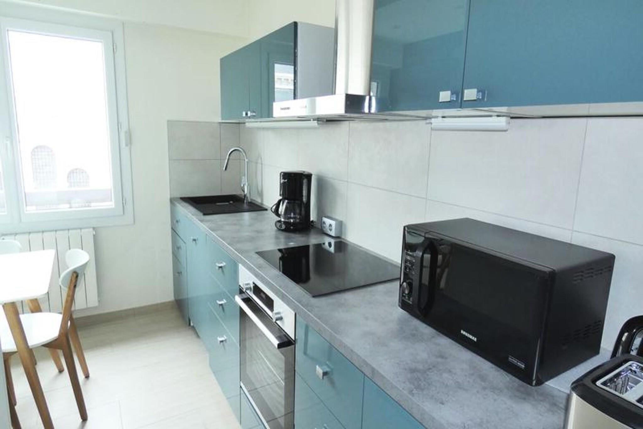 5, Boulevard des Côtes i Aix les Bains Ejendomskompleks fra slutningen af ??70'erne kaldet Le Château Durieux bestående af 4 bygninger. Det er ideelt placeret. Tæt på butikker, men også til bussen for adgang til det termiske center Det ligger 500 m fra turistkontoret, 700 m fra Casino Grand Cercle, 950 m fra Thermes Chevalley, 2,3 km fra Thermes Marlioz, 900 m fra togstationen, 3 km fra søen og 20 km fra Mont REVARD (G4) på kortet) Bygning 2 består af 7 etager med elevator. Åbningen er sikker med Vigik og Intercom. Dens mest centrale beliggenhed giver dig mulighed for at kombinere forretning med fornøjelse. Hyggelig og rummelig 2-værelses lejlighed, tæt på butikker På 6. sal med elevator, i prestigeområde Klassificeret som 3* møbleret turistindkvartering til 4 personer Areal på 57 m² mod øst (gade) gennem 2 loggiaer Entré (PVC gulv): 1 garderobe/hylder, 1 skab. Stue (PVC-gulv) Adgang til østlig loggia: 1 "160cm" rapido sofa, 1 bord, 6 stole, 1 lænestol, 4 sofaborde, 2 skammel, 1 skrivebord, 1 tv-bund, 1 lav skænk, 1 halogen, 1 fjernsyn fladskærm, 1 omklædningsrum. Lukket køkken (flisegulv) med vindue: vask, køleskab/fryser, 3 induktionskomfur, el-ovn, mikroovn, emhætte, 1 opvaskemaskine, 1 bord, 4 stole 1 elektrisk kaffemaskine, brødrister, elkedel, tallerkener og køkkenredskaber. Soveværelse (pvc gulv) med østlig loggia adgang: 2 90cm senge, 2 sengeborde, 2 lamper, 1 lænestol, 1 garderobe/hylder. Badeværelse (flisegulv) italiensk bruser, vaskeskab med 2 skuffer, elektrisk håndklædetørrer, vaskemaskine/tørretumbler - separat toilet (flisegulv): nedhængt Udlejes med garage nr. 101 beliggende i 1. kælder (L 2,34m, H 1,84m, D 5,25m) DIVERSE: Samtaleanlæg, individuel el-opvarmning, røgalarm, reserveret klimaanlæg - elektrisk rulleskodder i hvert rum - el-radiatorer. Internetadgang - Kæledyr tolereres ikke Yderligere tjenester mod tillægsgebyr: slutrengøring, sengelinned, håndklæder, kæledyr, babyseng (afhængig af tilgængelighed efter anmodning). Depositum (i euro) - 500 Opvarmning - 1