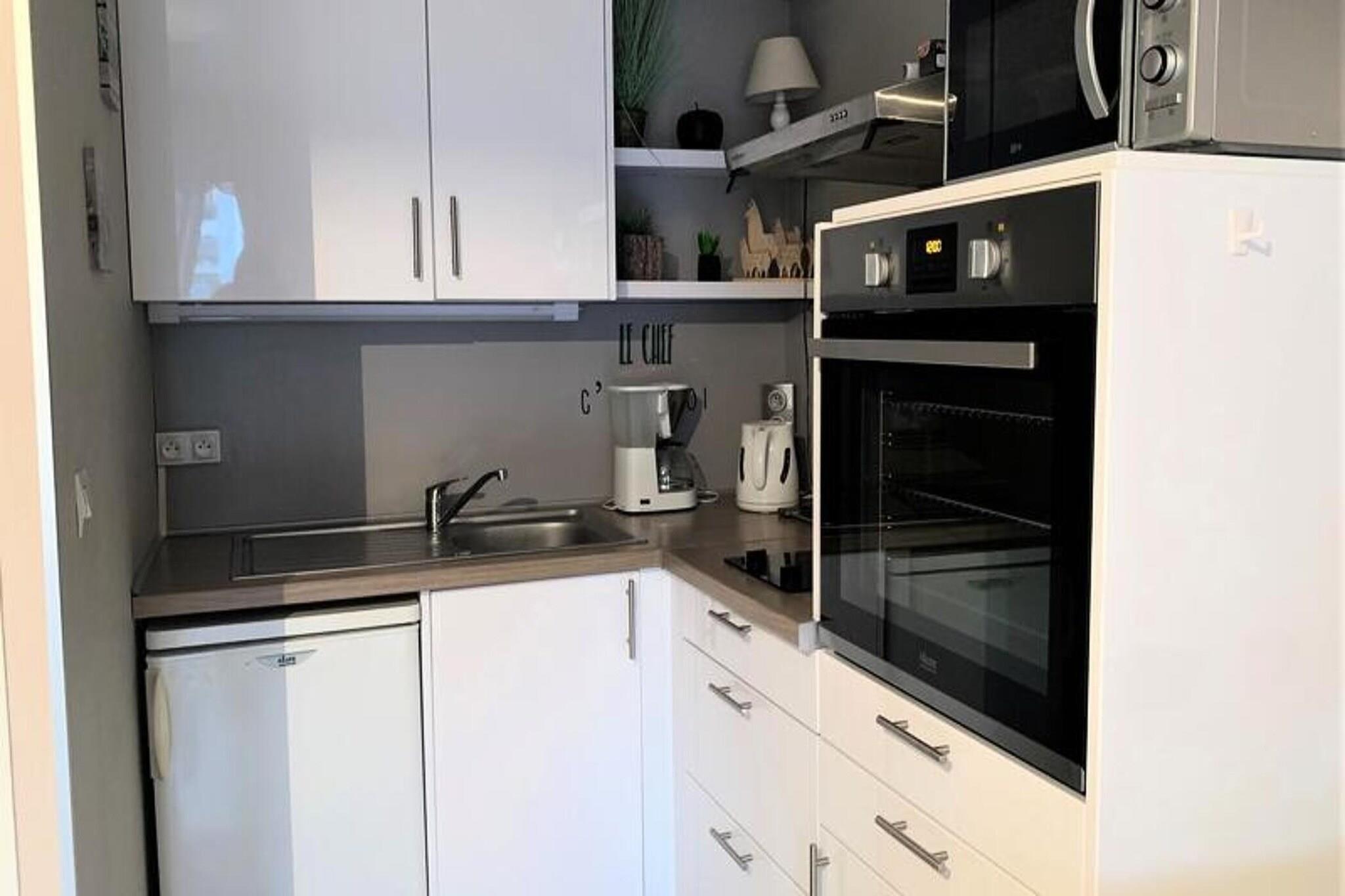 På 8, Avenue de Marlioz i Aix les Bains Bygning i god stand fra 1978, et stenkast fra Parc de Verdure. Det ligger 600 m fra turistkontoret, togstationen, 1,5 km fra Thermes Chevalley, 1,2 km fra Thermes de Marlioz, 3,4 km fra søen (I6 på kortet) Tæt på Avenue de Marlioz, en meget kommerciel avenue. Det består af 7 etager med elevator. Åbningen er sikker. Til bygningen vigik og samtaleanlæg. Til kældergarage/parkeringsadgang med fjernbetjening. For adgang til den bagerste parkeringsplads skal du bruge en nøgle til at åbne hovedbarrieren. Den nærliggende grønne park giver dig mulighed for at nyde charmen ved blomster og springvand til en fredelig pause, og de nærliggende busser vil gøre din rejse lettere. Hyggeligt og smukt studie tæt på alle butikker, med flot åben udsigt På 4. sal med elevator, i komfortområde, klassificeret som møbleret turistindkvartering 2* 2 personer Areal på ca. 25 m² mod øst (gade) på møbleret altan Hovedværelse (flisegulv): 1 140 cm seng (sammenklappelig), 1 natbord, 1 140 cm bænk, 1 bord, 4 stole, 1 klædeskab, 1 væghængt fladskærms-tv Køkkenafdeling (flisegulv): 2 keramiske kogeplader, emhætte, el-ovn, vask, køleskab, mikroovn, elektrisk kaffemaskine, elkedel, kommode, service og køkkenredskaber. Badeværelse (flisegulv): bruseniche, vaskeskab, håndklædetørrer, vaskemaskine. Uafhængig W.C - Udlejes med udendørs parkering nr. 8 på bagsiden af ??bygningen "adgang via avenue de Tresserve". DIVERSE: individuel elvarme, samtaleanlæg, ventilator, aftageligt klimaanlæg, røgdetektor, elektrisk rulleskodder, altanpersienne. Denne bolig er ikke udstyret med internetadgang, du kan gå til forskellige offentlige steder. Du kan konsultere linket www.aixlesbains.fr.../Wi-fi-gratuit-de-la-ville Yderligere tjenester mod tillægsgebyr: slutrengøring, sengelinned, håndklæder, kæledyr, babyseng (afhængig af tilgængelighed efter anmodning). Depositum (i euro) - 305 Opvarmning - 1