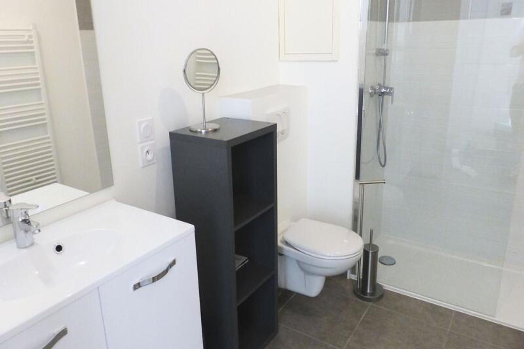 På 92, Chemin des Baravents i Aix les Bains Ny bolig "2018" inklusiv store terrasser, haver, mulighed for Garage eller parkering, elevator. Denne bygning med kvalitetsservice tilbyder lejligheder i en lille bolig på 13 enheder på 3 etager. Åbningen er sikret af Vigik og Videophone. Beliggende 500 m fra Chevalley Thermal Baths, 700 m fra turistkontoret, 1 km fra byens centrum, 2 km fra Marlioz Thermal Baths, 3 km fra søen og 20 km fra Mont REVARD. (3I på kortet) Dens privilegerede beliggenhed, 10 minutters gang fra de termiske bade, giver dig mulighed for nemt at komme til din spa. Varm stueetage 2 værelser / virtuel rundvisning for denne ejendom Tilbyder gode tjenester i en ny bolig Prestige række, klassificeret møbleret som turisme i 3*2 personer Boligareal 45m² med udgang mod øst til en stor møbleret terrasse på 27m² Stue (flisegulv) med udgang til terrasse: 1 "rapido" 140 cm sofa af meget god kvalitet", 1 bord, 4 stole, 1 sofabord, 1 fladskærms-tv Køkken i stuen: køleskab/fryser, elektrisk ovn, mikroovn, 3 induktionskomfur, Senséo kaffemaskine, brødrister, elkedel, opvaskemaskine, service og køkkengrej Soveværelse (flisegulv) med terrasse: 1 "meget god kvalitet" 140cm sengetøj, 1 lampe, 1 natbord, et stort væghængt klædeskab, 1 lænestol. Brusebad (flisegulv) med væghængt toilet: 1 italiensk bruser, 2-dørs håndvask, 1 elektrisk håndklædetørrer, vaskemaskine, 1 opbevaringsrum. Privat underjordisk garage nr. -2 (Mål: bredde 2m41 - Højde 2t02 - Dybde 4m93) Stor østterrasse på 27m²: 1 bord, 4 stole, 2 hvilestole. DIVERSE: Videotelefon, Individuel gasopvarmning, røgdetektor, ventilator Cykelopbevaring - Små dyr tolereres - Maksimal sovekapacitet på 3 personer, for 4 personer kontakt os venligst. Internetadgang "Orange Box" - Virtuel rundvisning mulig for denne ejendom, linket nedenfor: https://tour.previsite.com/BC24C554-28C6-1630-C555-054D69C33851 Yderligere tjenester mod tillægsgebyr: slutrengøring, sengelinned, håndklæder, kæledyr, babyseng (afhængig af tilgængelighed efter anmodning). Depositum (i euro) - 500 Opvarmning - 1