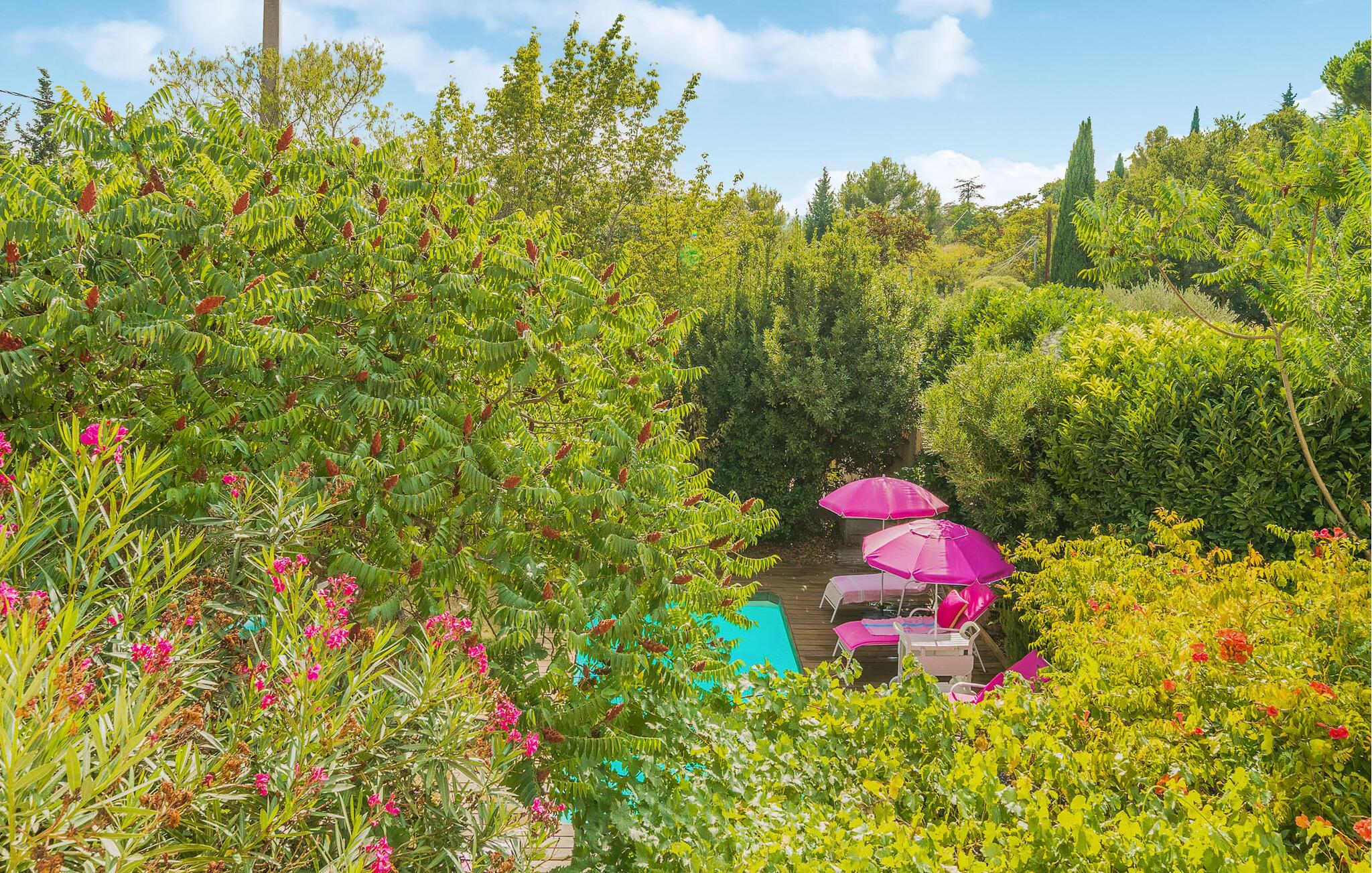 Den rolige beliggenhed og den fantastiske udsigt gør dette feriehus til det ideelle tilflugtssted for vennepar eller familier. Træd ind og oplev de lyse og komfortable rum, som indbyder til afslapning, fælles madlavning eller en hyggelig filmaften. Det smagfulde interiør skaber en hyggelig atmosfære, og i den store have kan I nyde den private pool på varme dage. Slap af midt i naturen, mens den livlige by Aix-en-Provence kun få kilometer væk venter på at blive udforsket.