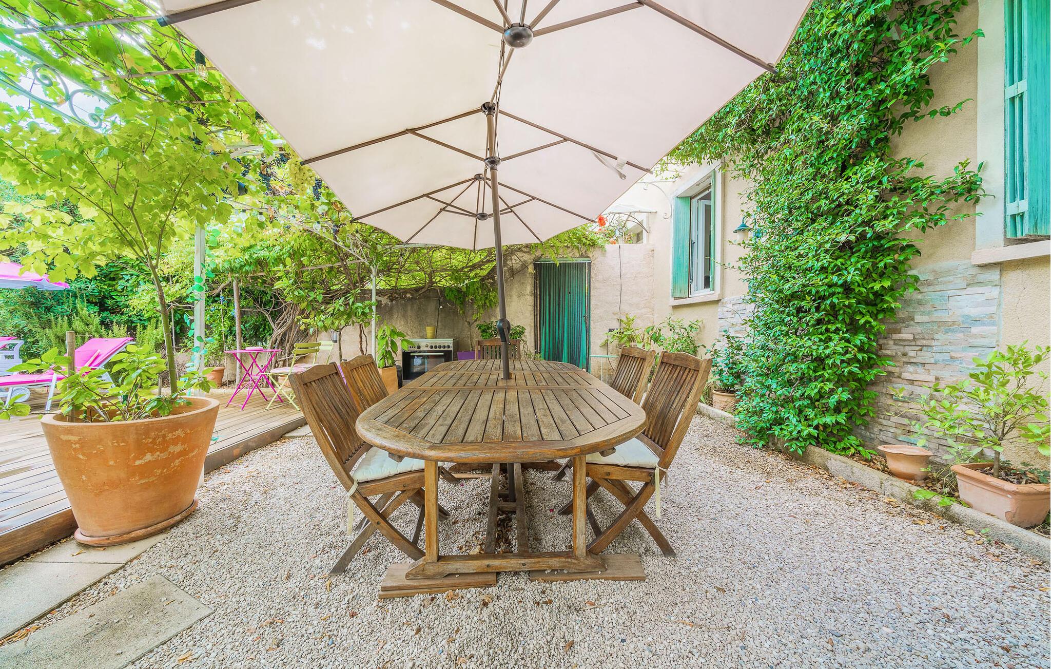 Nyd en afslappende ferie i denne charmerende halvdel af et dobbelthus på højderne ved Aix-en-Provence.