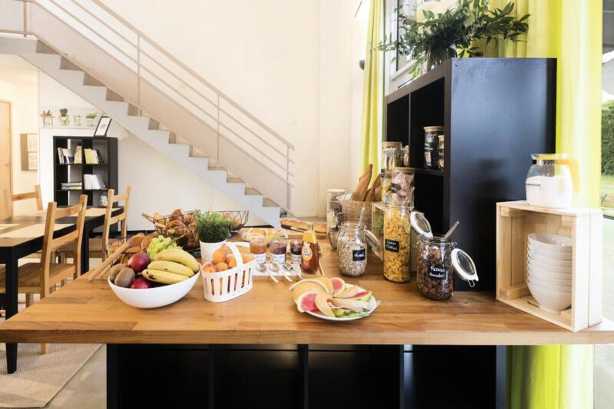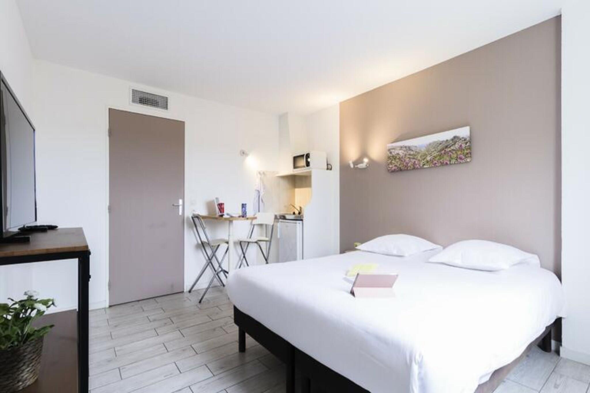 Situado en el corazón de un viñedo en Puyricard, el Résidence Garden & City Aix-en-Provence - Puyricard se encuentra a 6 km desde el centro de la ciudad de Aix en Provence. ¡El establecimiento es una base ideal para explorar la Provenza! Real, ¿verdad? Sumérgete en tus vacaciones con la piscina exterior disponible desde finales de abril. Todos los apartamentos de 1 dormitorio incluyen un balcón con vistas al jardín. Se ofrece un desayuno para llevar para empezar bien el día (es necesario reservar el día anterior). Gracias a un clima privilegiado, Aix-en-Provence es una ciudad de elegancia que se revela en sus calles y plazas siempre animadas. La ciudad es un lienzo de impresiones felices, con los colores de las fiestas, las celebraciones y las tradiciones, los mercados provenzales, las delicias soleadas, los paseos por la naturaleza y las actividades de ocio... Acogedora en todas las estaciones, nuestra ciudad le ofrece mucho que ver, sentir y para descubrir. ¡Te estamos esperando! Estudio Superior para 2 personas. Salón con cama de matrimonio. Cocina americana equipada. Cuarto de baño y WC. Tenga en cuenta: algunos alojamientos son accesibles para PMR. Acceso Wifi - incluido Se admiten mascotas - extra Paquete de limpieza final - incluido (excluyendo el área de cocina y los platos que el cliente debe limpiar antes de la salida + botes de basura que deben vaciarse) Ropa de cama - incluida Ropa de baño - incluida Cuna - 5EURO (bajo petición y sujeto a disponibilidad) Aparcamiento - exterior gratuito Desayuno - desayuno buffet (adulto): 12,90 euros; / niño 4-11 años: 9EURO / niño menor de 4 años: gratis / para llevar: 8EURO; Piscina - acceso libre del 30/04 al 02/10 Tasa turística (cargo adicional): a pagar en el sitio según la tarifa vigente Televisión - incluida
