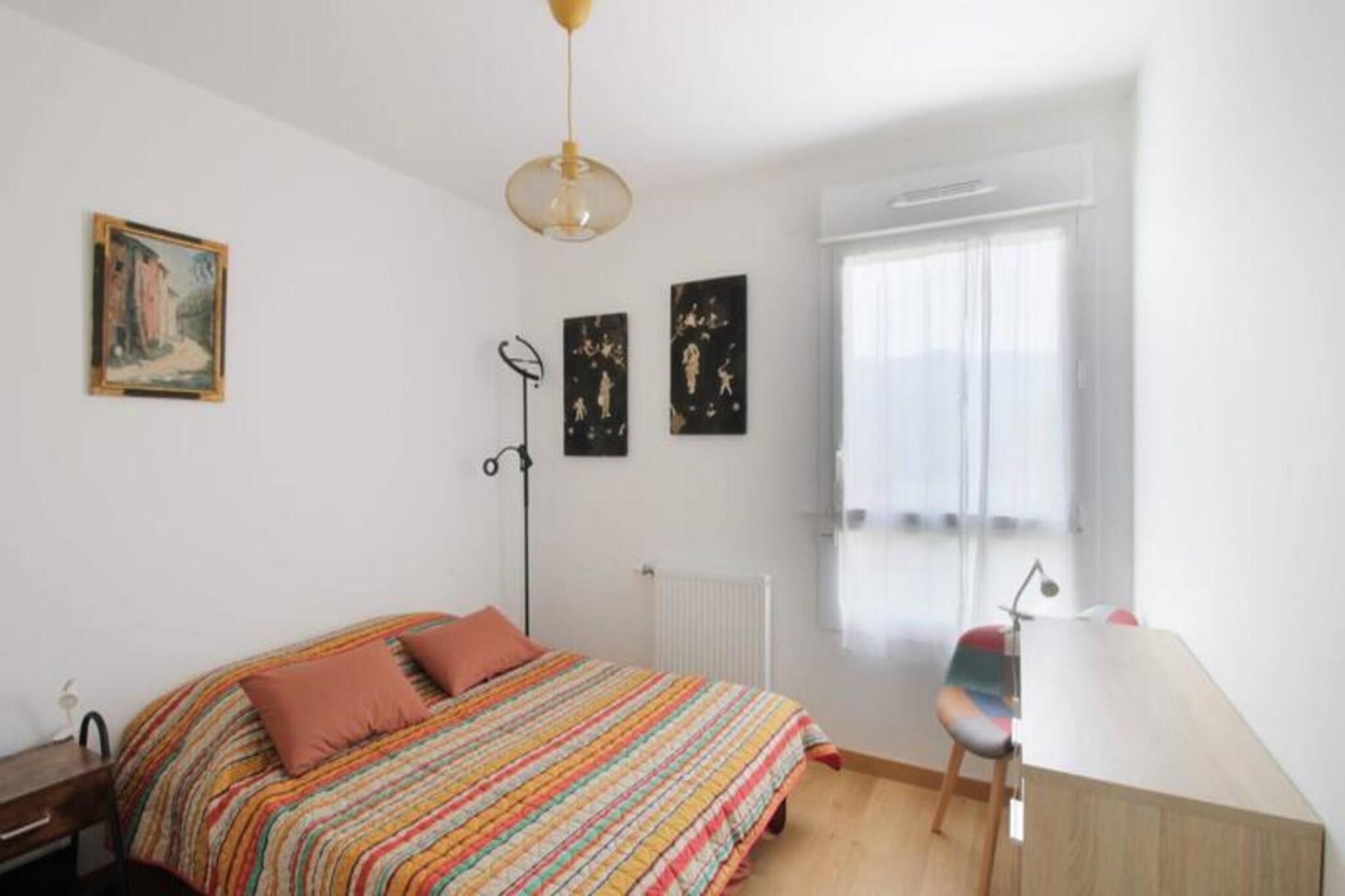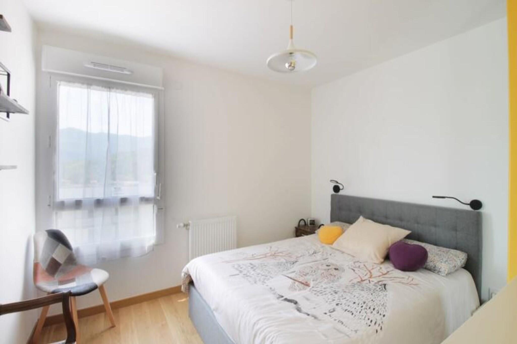 Denne hyggelige og funktionelle 3-værelses lejlighed ligger på første sal i en fredelig bolig, og tilbyder to komfortable soveværelser: det ene med en queensize seng og det andet med en dobbeltseng. Lejligheden er perfekt til op til fire gæster og har en rummelig stue med en stor sofa, et fladskærms-tv og en spiseplads. Ejendommen omfatter også en privat garage til sikker parkering. Det er ikke kæledyrsvenligt. Der er sengetøj og håndklæder, og der er trådløs internetadgang i hele lejligheden. Lejligheden er ideelt beliggende, kun 5 minutter fra centrum af Aix-les-Bains, kendt for sine termiske bade, kurbade og kulturelle steder. Den fantastiske Lac du Bourget, perfekt til vandaktiviteter som sejlads og kajaksejlads, er mindre end 10 minutter væk. Gæsterne kan udforske nærliggende attraktioner såsom den historiske by Chambéry (25 minutter væk) eller den charmerende by Annecy, kendt som "Alpernes Venedig" (30 minutter i bil). For naturelskere er Bauges Massif Regional Natural Park 30 minutters kørsel, der byder på skiløb, vandreture og meget mere. Lejligheden har et fuldt udstyret køkken med opvaskemaskine, køleskab med fryser, induktionskomfur, mikroovn og kaffemaskine. Badeværelset er udstyret med badekar og vaskeskab, mens separate toiletter giver ekstra bekvemmelighed. Lejligheden har også en 11 m² stor terrasse med udsigt over søen og bjergene, perfekt til at spise udendørs eller slappe af i liggestolene. Yderligere faciliteter omfatter masser af opbevaringsplads og en vaskemaskine.