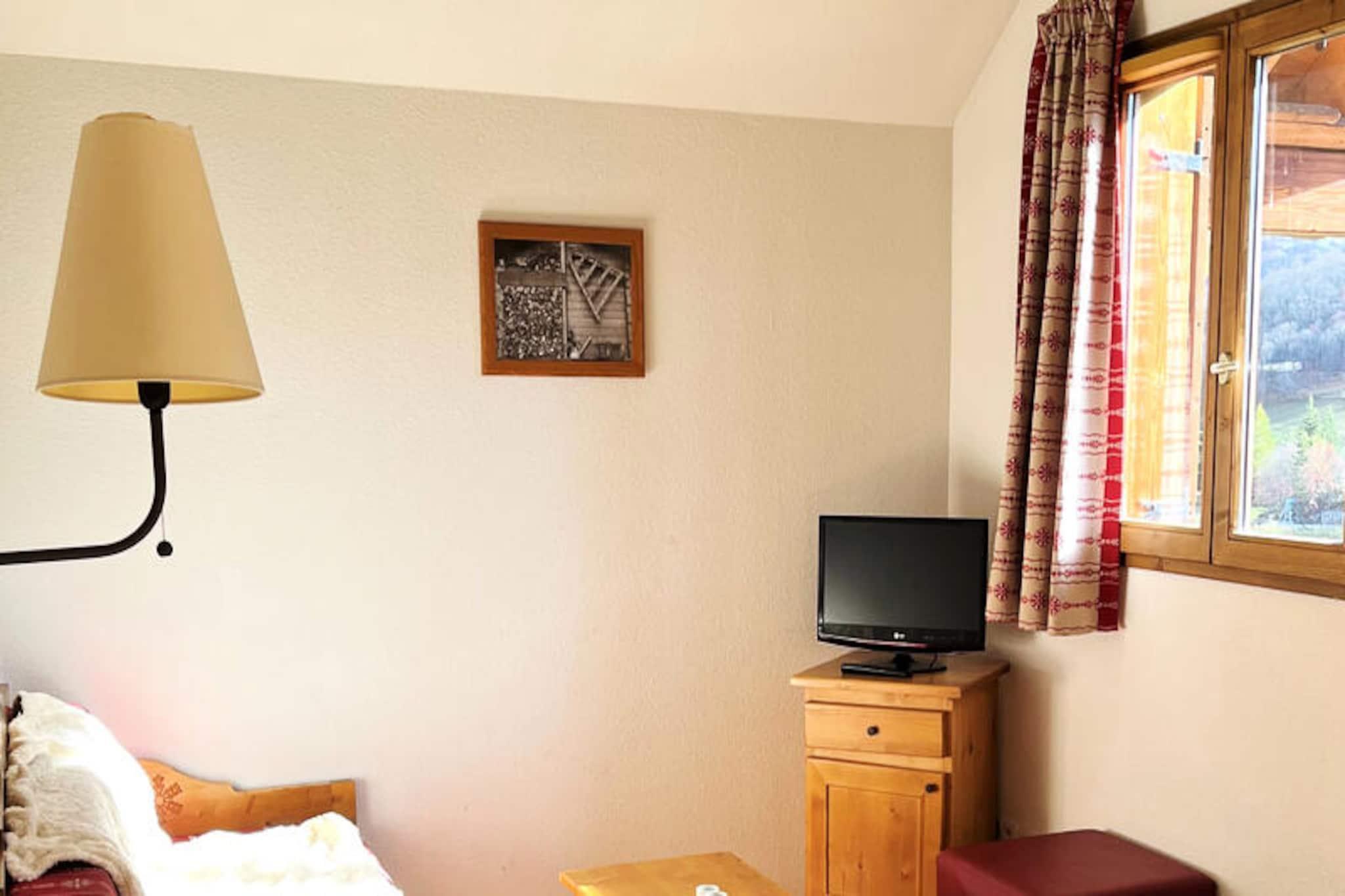 Midt i de franske alpers fredfyldte skønhed tilbyder denne indbydende lejlighed i Les Arcs 1800 et perfekt tilflugtssted for familier og grupper, der søger både eventyr og afslapning. Med sin hyggelige atmosfære og betagende udsigt over bjergene er det en ideel base for at udforske det berømte Paradiski-skiområde eller nyde roen i de alpine somre. Fra det øjeblik du træder ud på den østvendte balkon, sætter den friske bjergluft og de fantastiske udsigter tonen for en uforglemmelig ferie. \n\nLejligheden har komfortabel plads til op til otte gæster med en gennemtænkt planløsning, der inkluderer en stue med en dobbeltsovesofa, et soveværelse med en dobbeltseng, et andet med to enkeltsenge og et soveområde med to enkeltkøjesenge. Et fuldt udstyret køkkenområde giver mulighed for hjemmelavede måltider, mens opholdsområdet er perfekt til afslapning efter en dag med aktiviteter. Moderne bekvemmeligheder såsom Wi-Fi-adgang i receptionen, et tv og inkluderet sengelinned sikrer et problemfrit ophold. Familier, der rejser med små børn, vil sætte pris på tilgængeligheden af ??et babysæt, inklusive en rejseseng, badekar og højstol, efter anmodning.\n\nDenne bolig ligger kun få skridt fra pisterne og tilbyder nem adgang til skiløb om vinteren og vandre- eller cykelstier om sommeren. I nærheden finder du vigtige faciliteter såsom butikker, restauranter og skiskoler, hvilket gør det til et bekvemt valg for alle dine behov. For dem, der rejser med kæledyr, byder ejendommen dem velkommen med forudgående reservation og et mindre gebyr, hvilket sikrer, at alle i familien kan deltage i eventyret.\n\nUanset om du snor dig gennem frisk puddersne, nyder lokalt Savoyard-køkken eller blot nyder den alpine atmosfære, tilbyder denne lejlighed den perfekte blanding af komfort, bekvemmelighed og naturlig skønhed til en mindeværdig ferie i hjertet af de franske alper.