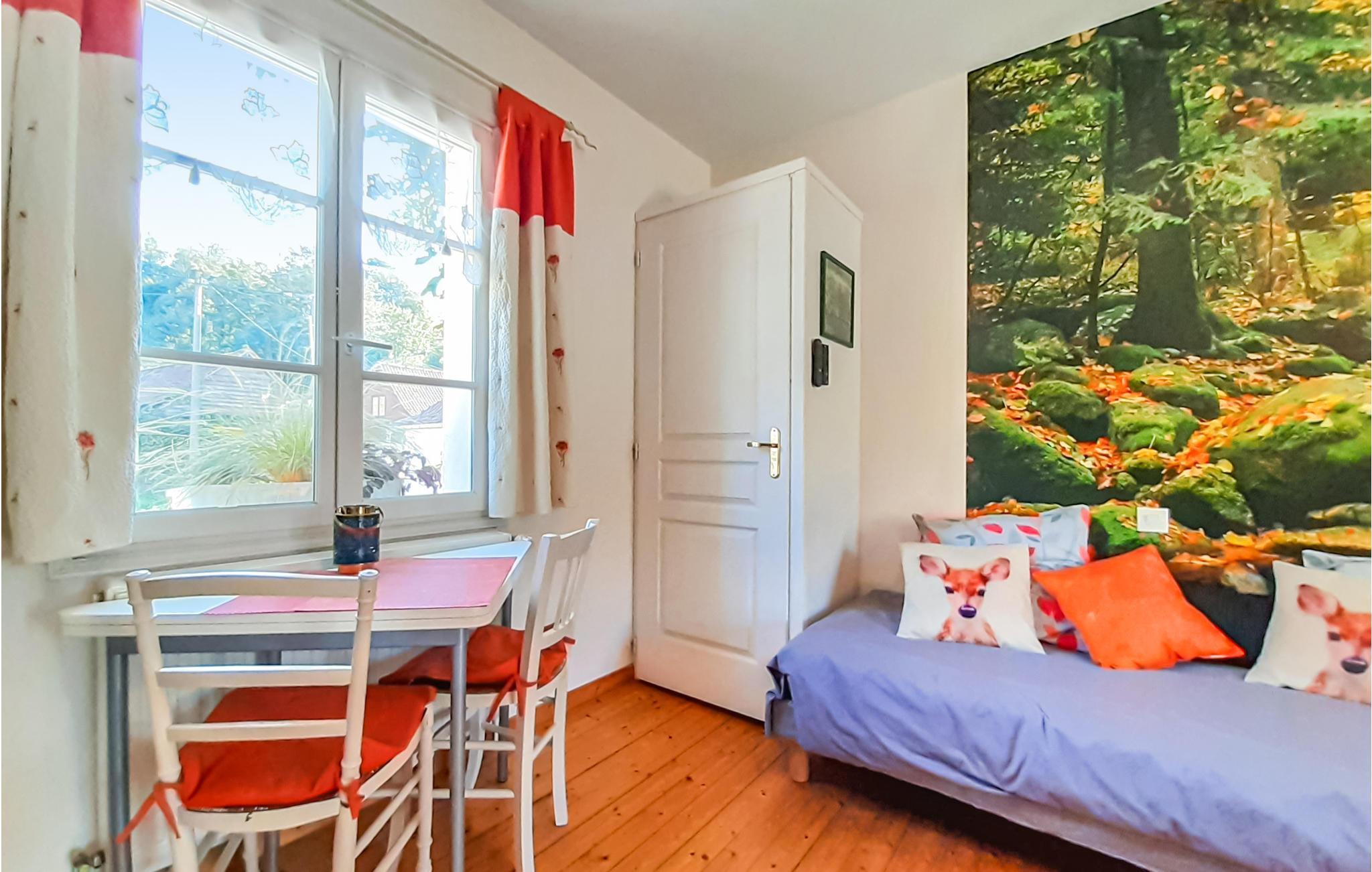 Denne lejlighed i stueplan tilbyder en enkel og funktionel bolig for par eller små familier, der ønsker at udforske Nord-Pas-de-Calais. Beliggenheden nær Montreuil-sur-Mer er ideel til et roligt ophold i landlige omgivelser. I jeres kompakte ferielejlighed finder I en stue med sovesofa, tv og spisebord. I det lille tekøkken kan I tilberede lette måltider. Vinduerne sørger for behageligt dagslys, mens også trægulvet bidrager til den hyggelige stemning.