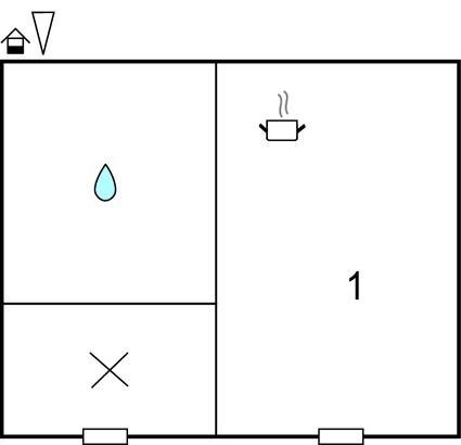 Opholdsstue/køkken - 1 Soveplads. (Enkeltseng(e)). 2 Sovepladser. (Dobbeltseng(e)).