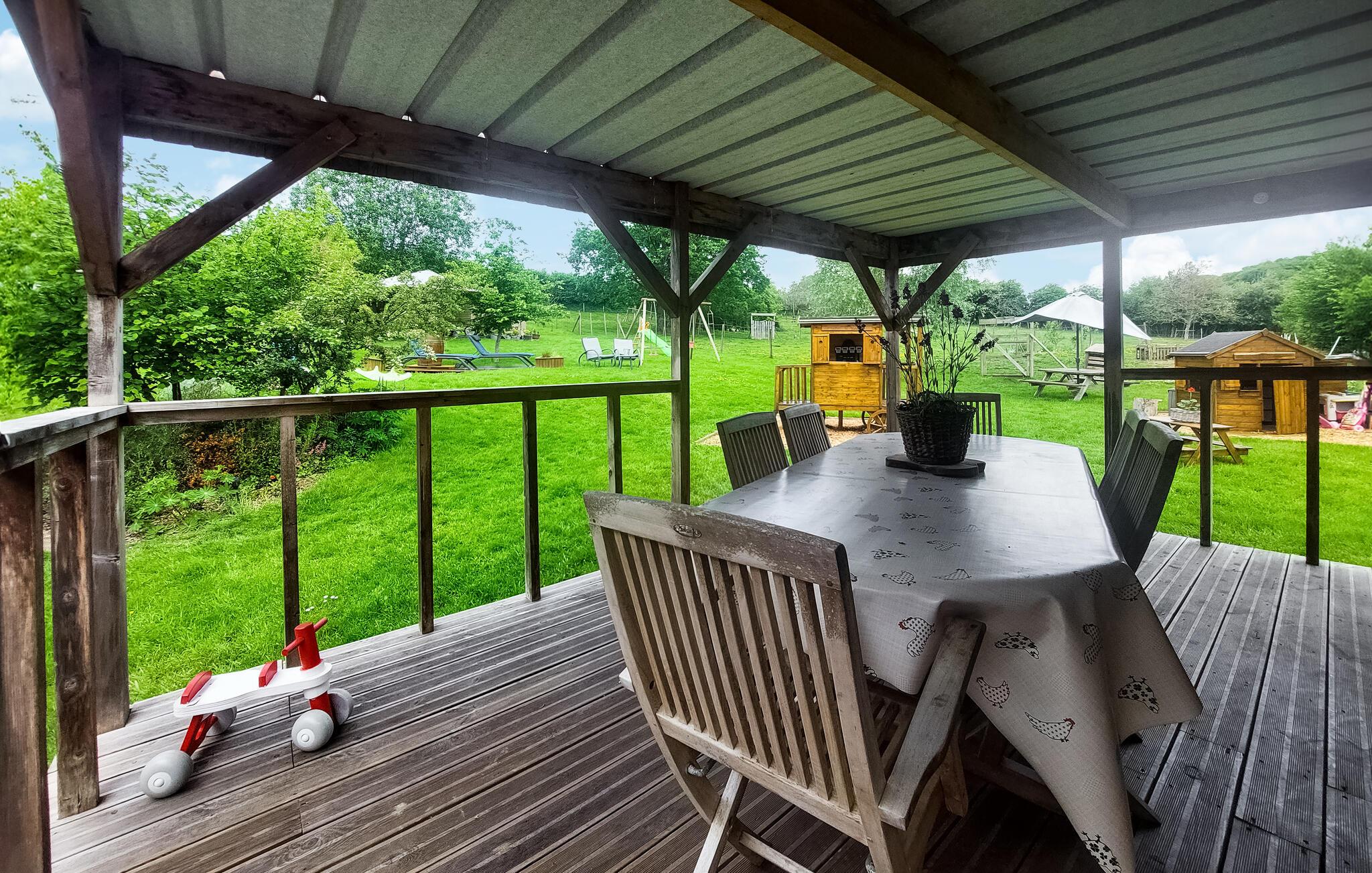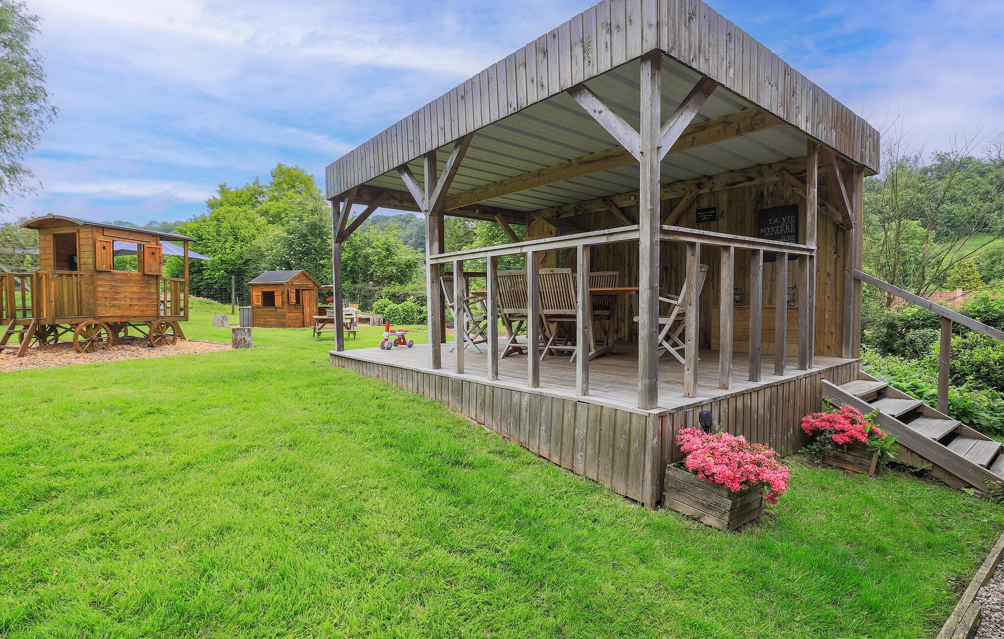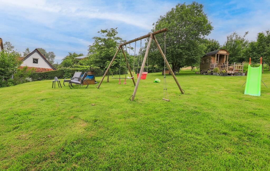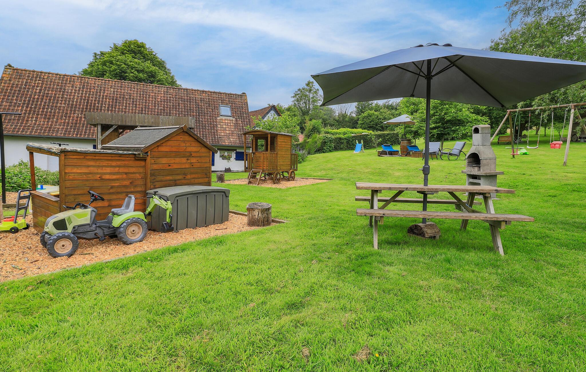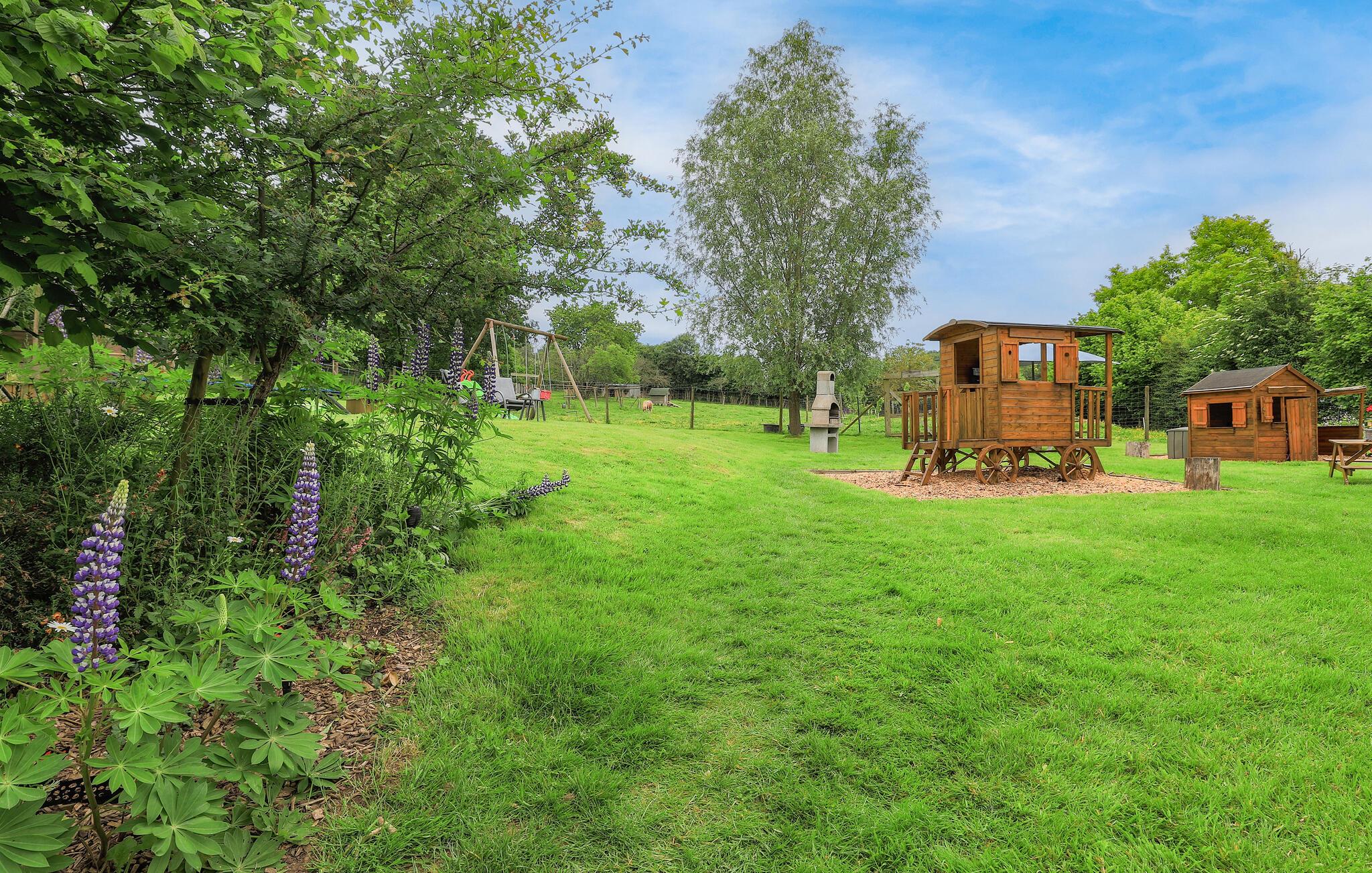 På den dejlige grund kan både børn og voksne finde skønne steder at lege og slappe af. Gør alt på terrassen til en hyggelig grilleftermiddag, mens børnene svinger sig i gyngerne og graver i sandkassen.