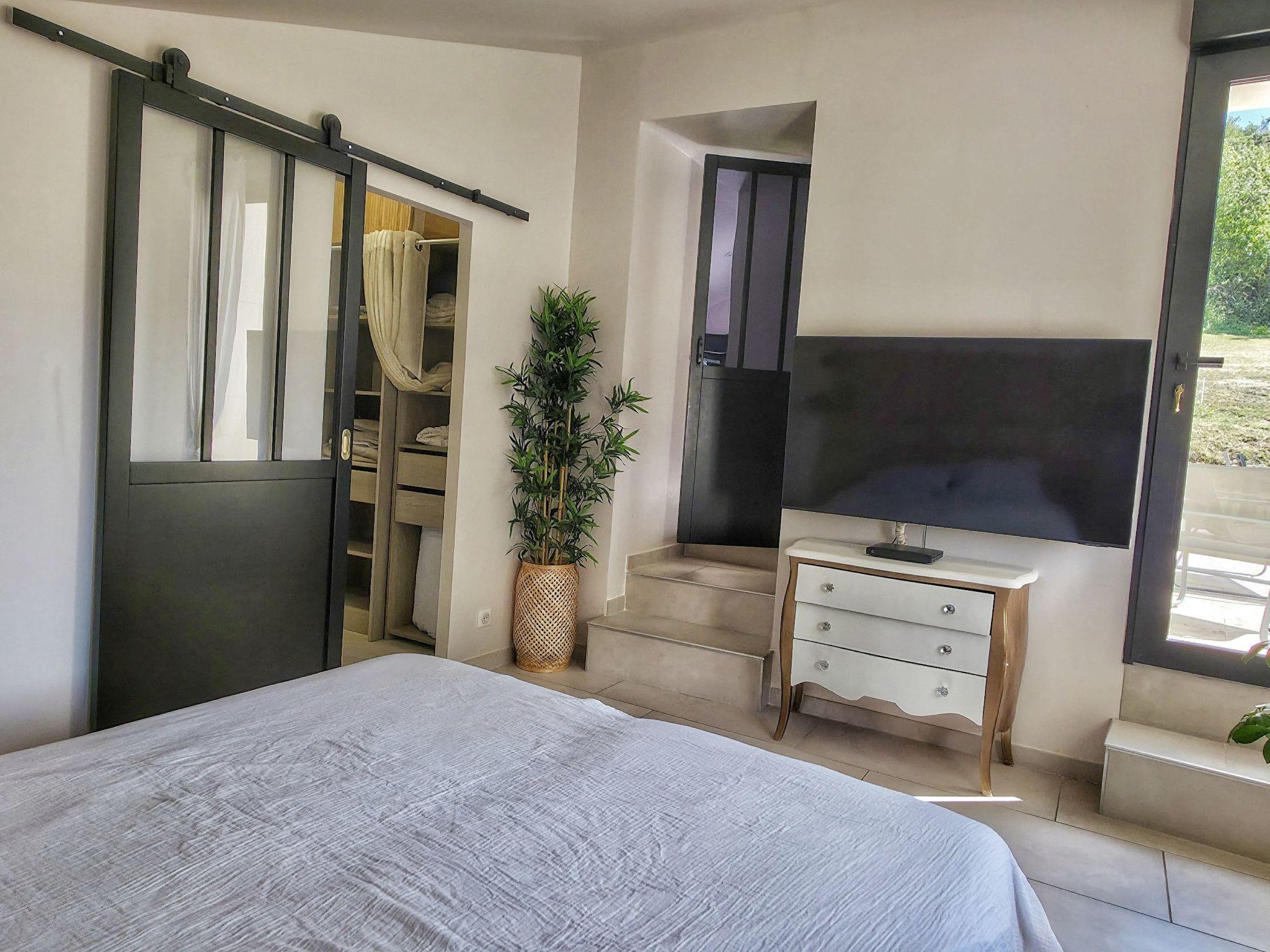 Four spacious bedrooms, each equipped with a private bathroom, dressing room and television, for optimum comfort in a warm, modern atmosphere. One of the bedrooms is separate from the house, with a view over the garden. Another bedroom is also independent, with its own kitchen/living area.