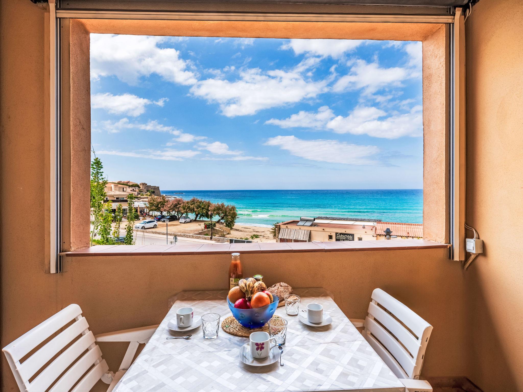 Algajola: Apartment block "Bella Vista", 3 storeys. 50 m from the sea, 50 m from the beach, road to cross. Parking. Grocery 280 m, supermarket 450 m, restaurant 100 m, bakery 450 m, bus stop, railway station 600 m, sandy beach "Aregno" 50 m. Golf course (18 hole) 20 km, sailing school 100 m. Nearby attractions: L'Ile Rousse 8 km, Calvi 16 km. Hiking paths: GR20 20 km. Please note: car recommended.