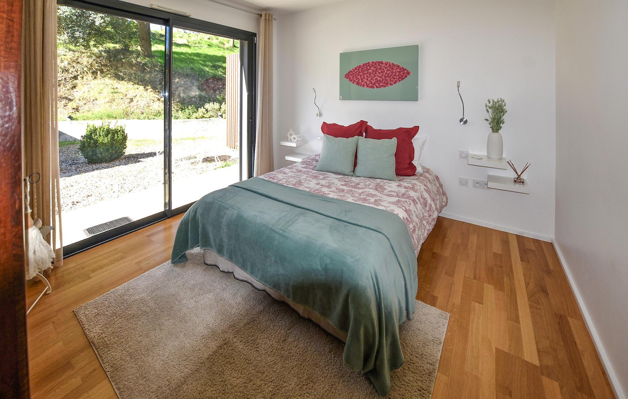 Denne rummelige og smagfulde villa i hjertet af Drôme-regionen tilbyder takket være gulv-til-loft-vinduer en lys atmosfære og smuk panoramaudsigt over det rolige, maleriske landskab. Tilbered lækre retter i det åbne køkken og planlæg jeres aktiviteter ud fra harmoniske måltider. Hold jer i form på motionscyklen, og slap af efter en lang dag med et brætspil eller en god bog.