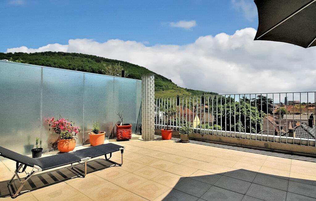 Oplev en ferielejlighed på anden sal med terrasse og panoramaudsigt, beliggende ved Vogesernes vingårde. Nyd det maleriske landskab med vinmarker, byen og de schweiziske alper fra terrassen. Lejligheden tilbyder en sømløs blanding af komfort og stil. Ved indgangen finder du et indbydende rum, hvor opholdsområdet nemt forbindes med køkkenet, terrassen og det øverste niveau. Den sydøstvendte facade, prydet med automatiske rulleskodder, oversvømmer rummet med naturligt lys og giver en fantastisk panoramaudsigt. Et studieområde har udsigt over opholdsrummet, og udenfor lokker en rummelig terrasse med liggestole, et bord, 8 stole og en elektrisk plancha til dejlige al fresco-øjeblikke. Bemærk: Soveværelse 1 er åbent til opholdsrummet nedenfor og kommunikerer med soveværelse 2 ved hjælp af en glidende skillevæg. Lejen inkluderer en parkeringsplads ved bygningens fod og et kælderrum - et ideelt sted for motorcykler eller cykler. Lejligheden er beliggende ved indgangen til centrum af Guebwiller, tæt på butikker, vinkældre og restauranter. Området byder på mange ting at gøre og besøge, lige fra vandreture på skovstier til motorcykling langs vinruten, besøg på museer og slotte. Oplev også den populære cykelrute, der snor sig fra Guebwiller til Linthan mod Lac de la Lauch, eller julemarkederne i Haut-Rhin i Alsace. Fordyb dig i komfort og naturskønhed for en uforglemmelig ferieoplevelse.