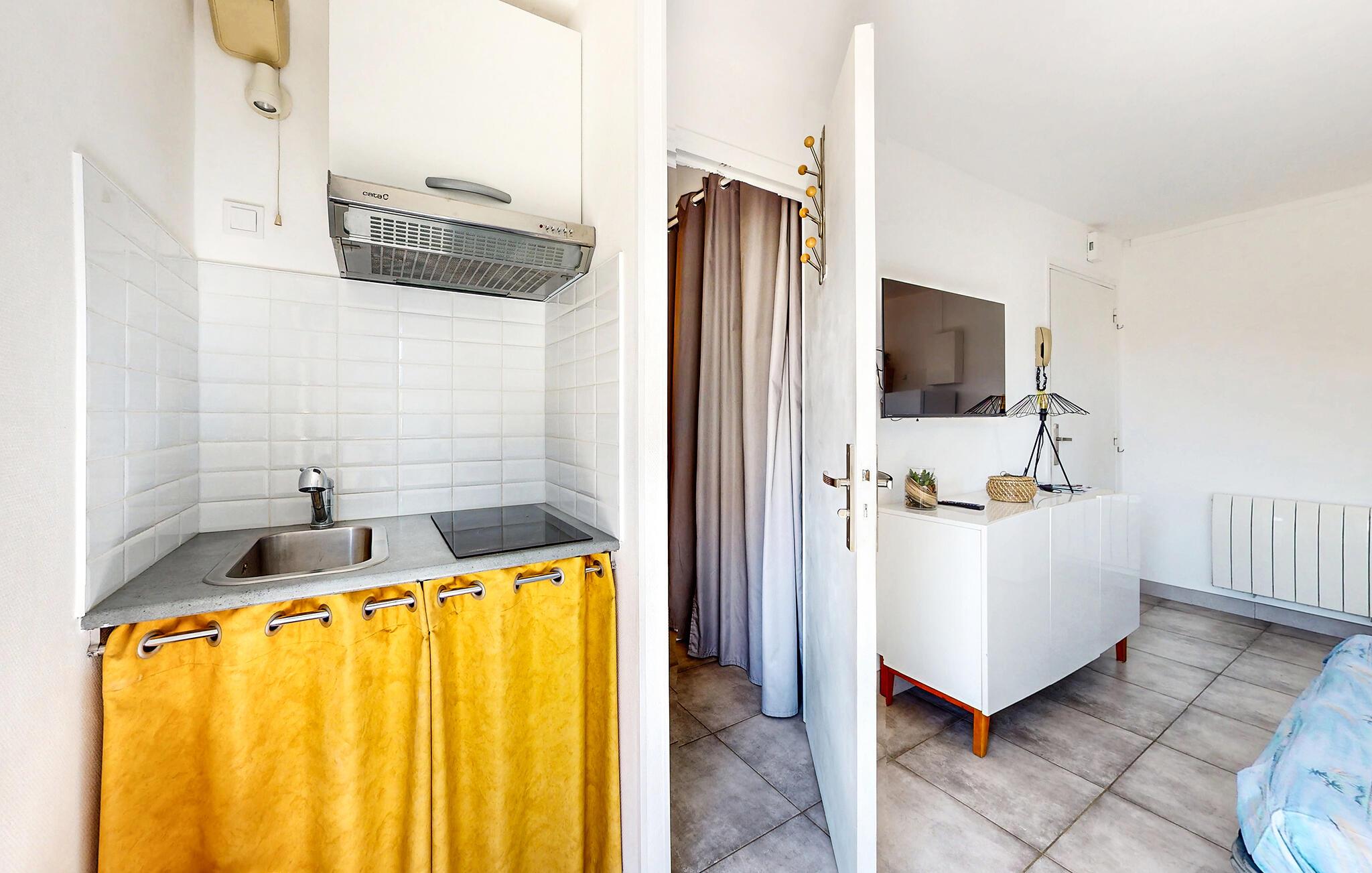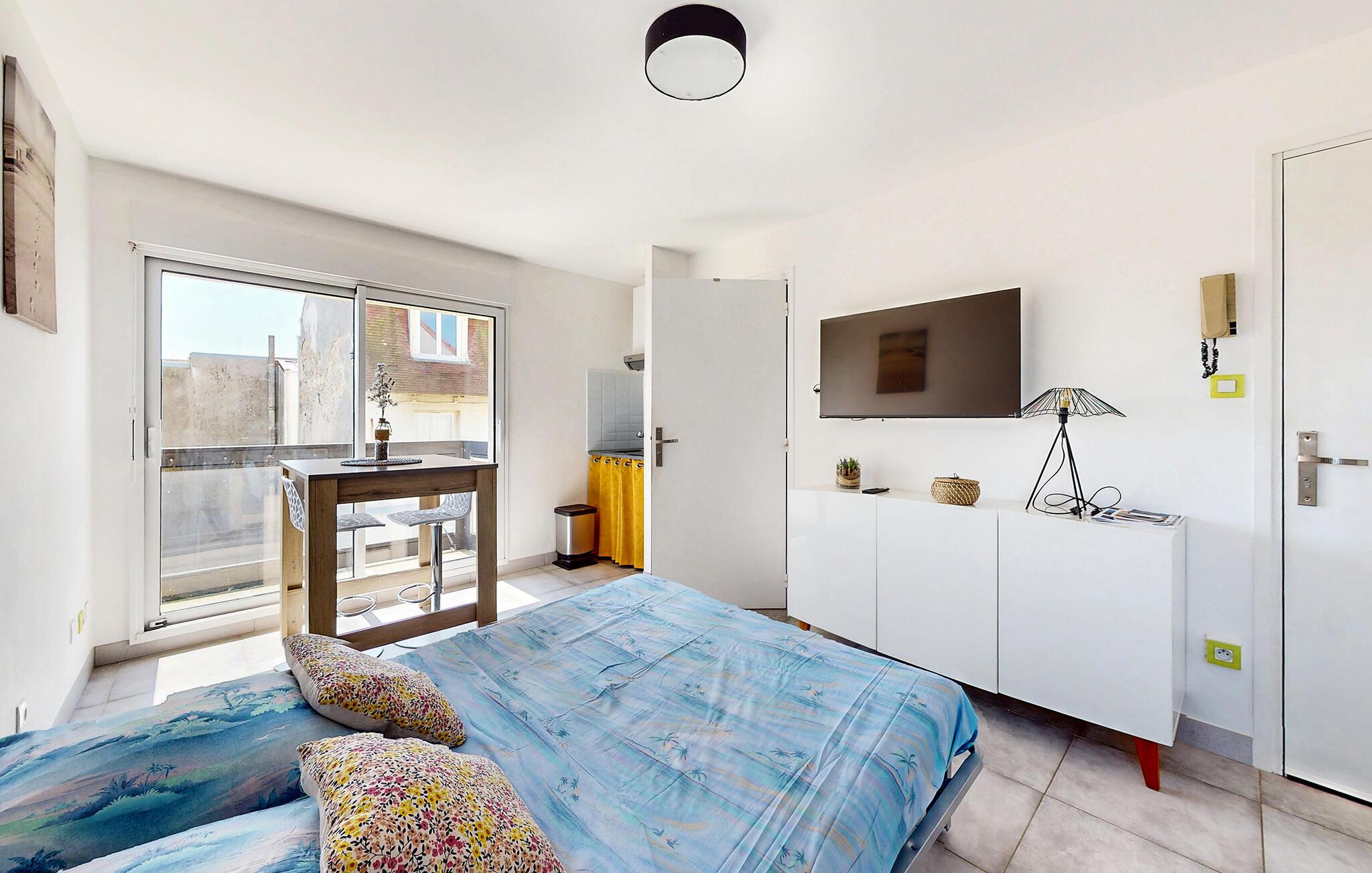 Velkommen til dette lyse og muntre studie, nogle få skridt fra sandstranden, der tilbyder et hyggeligt tilflugtssted for en varieret ferie. Brug det lille tekøkken til at tilberede morgenmad og forsyninger til jeres aktiviteter. Tag en afslappende siesta ind imellem og fordyb jer i en god bog efter en lang dag, noget I ikke har tid til i hverdagen.