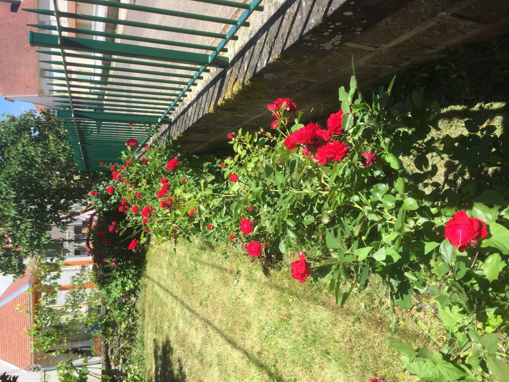 Small enclosed garden in front, outdoor table and barbecue. You have a view of the village and the church.