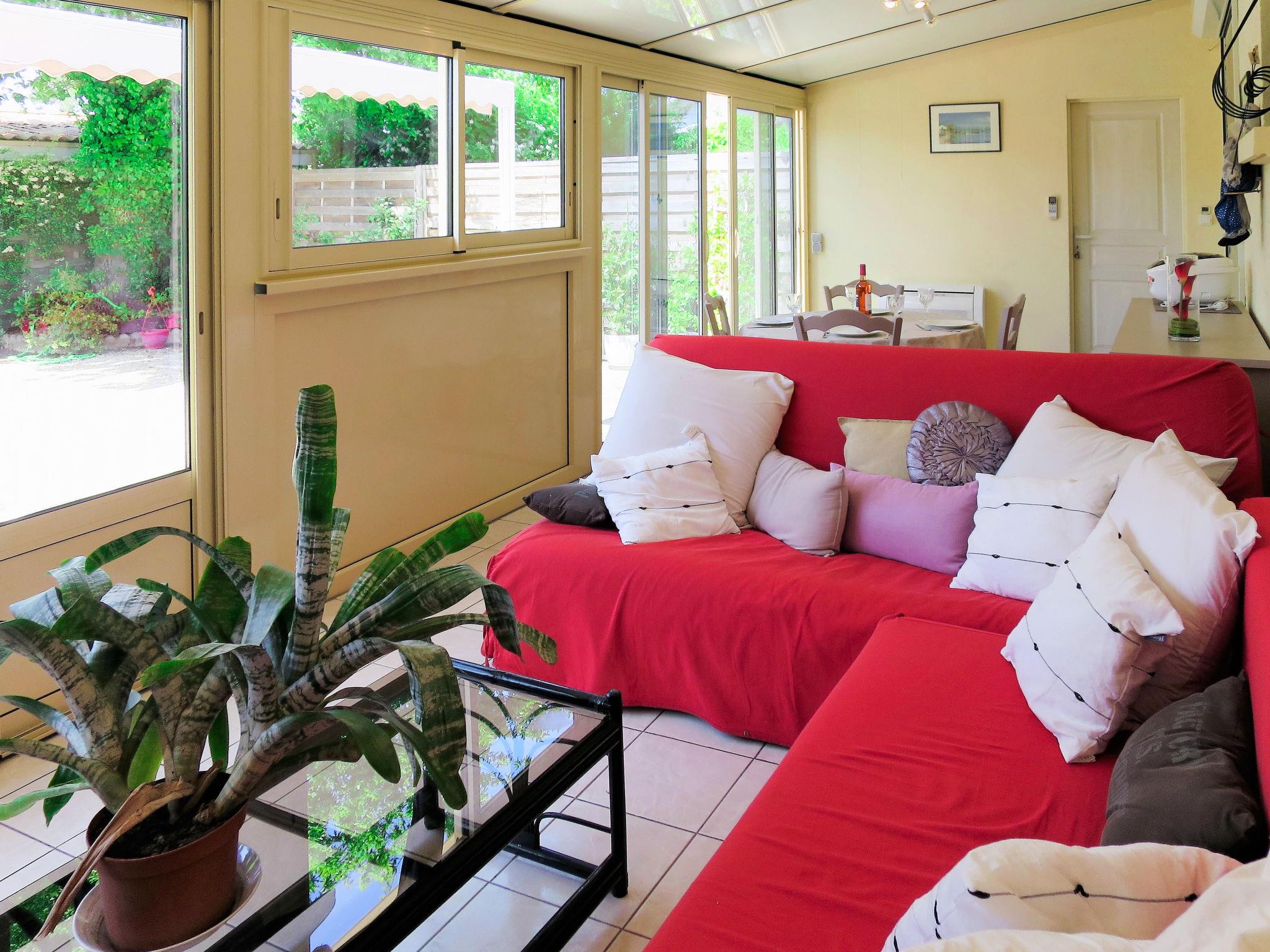 Single-family house "Mandarine". 2.5 km from the centre of Andernos, 40 km from the centre of Arcachon, 56 km from the centre of Bordeaux, in the residential district, 3 km from the sea, 3 km from the beach. Private: property 600 m2 (fenced), lawn and wildlife garden, parking at the house on the premises. Shop 2.5 km, supermarket 2 km, restaurant 2 km, pedestrian zone 2.5 km, bus stop "Allée P.Despagne" 800 m, sandy beach "Andernos (Bassin d'Arcachon)" 3 km, indoor swimming pool 2.5 km. Sports harbour 3.5 km, golf course (9 hole) 8.5 km, sailing school 3 km, riding stable 3 km. Nearby attractions: Accrobranche 1.5 km, Port ostréicole Andernos 3 km, Plage océane Grand Crohot 16 km, Cap Ferret 35 km, Lacanau-Océan 43 km, Biscarrosse 60 km.
