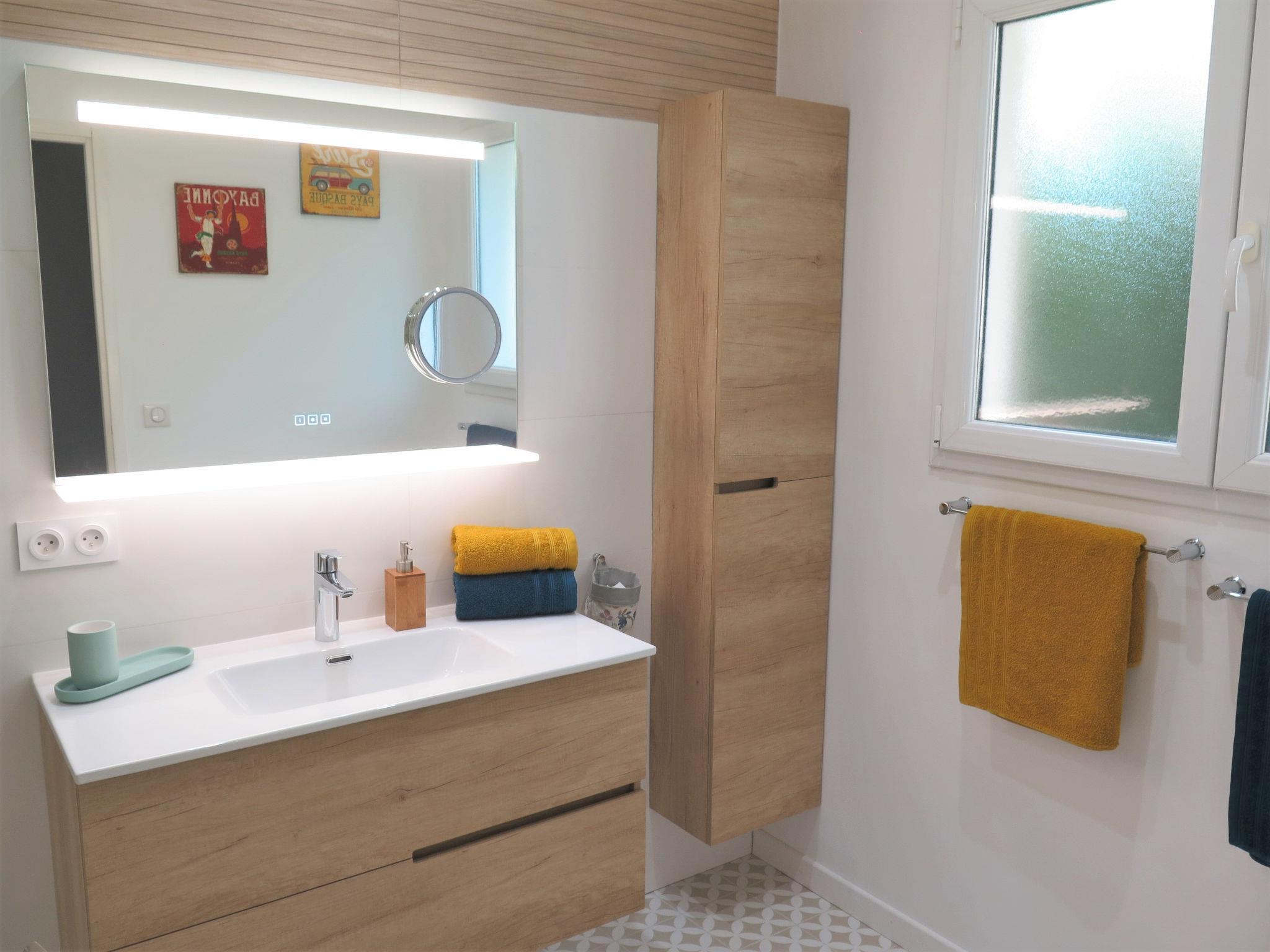 " Villa Camélia", 4-room house 110 m2. Beautiful and modern furnishings: living/dining room with dining table and TV (flat screen), CD-player. Exit to the terrace. 1 room with 1 french bed (140 cm, length 190 cm), shower/WC. 1 room with 1 french bed (140 cm, length 190 cm). 1 room with 1 french bed (160 cm, length 200 cm). Open kitchen (oven, dishwasher, 4 induction hot plates, toaster, kettle, microwave, freezer, electric coffee machine) with bar. Exit to the terrace. Shower, sep. WC. Electric heating. Terrace 30 m2 partly roofed. Terrace furniture, barbecue (portable), deck chairs (6), box-room. Facilities: washing machine, dryer, iron, children's high chair. Internet (WiFi, free). Please note: non-smoking house. Smoke alarm. 3300500004663
