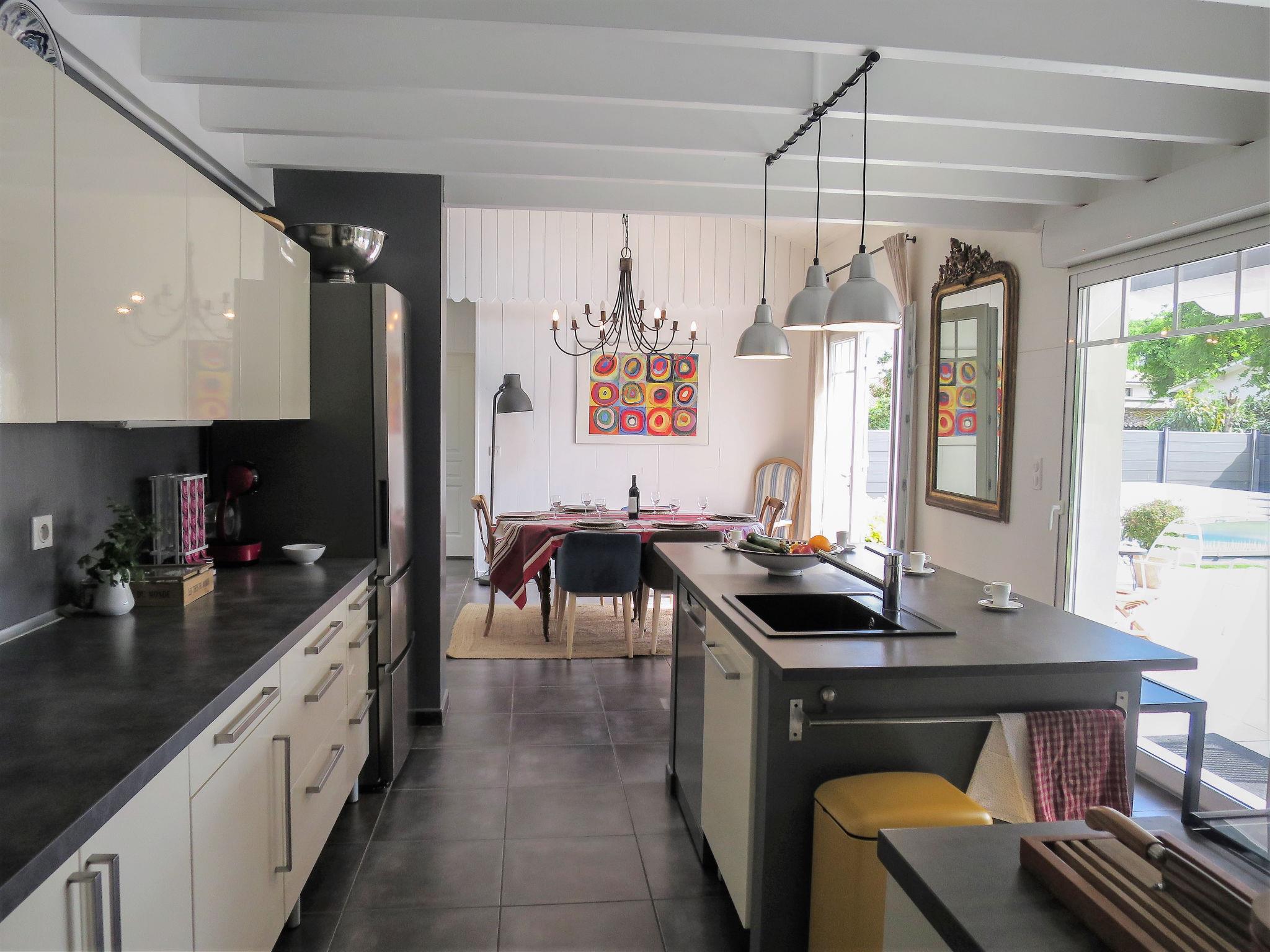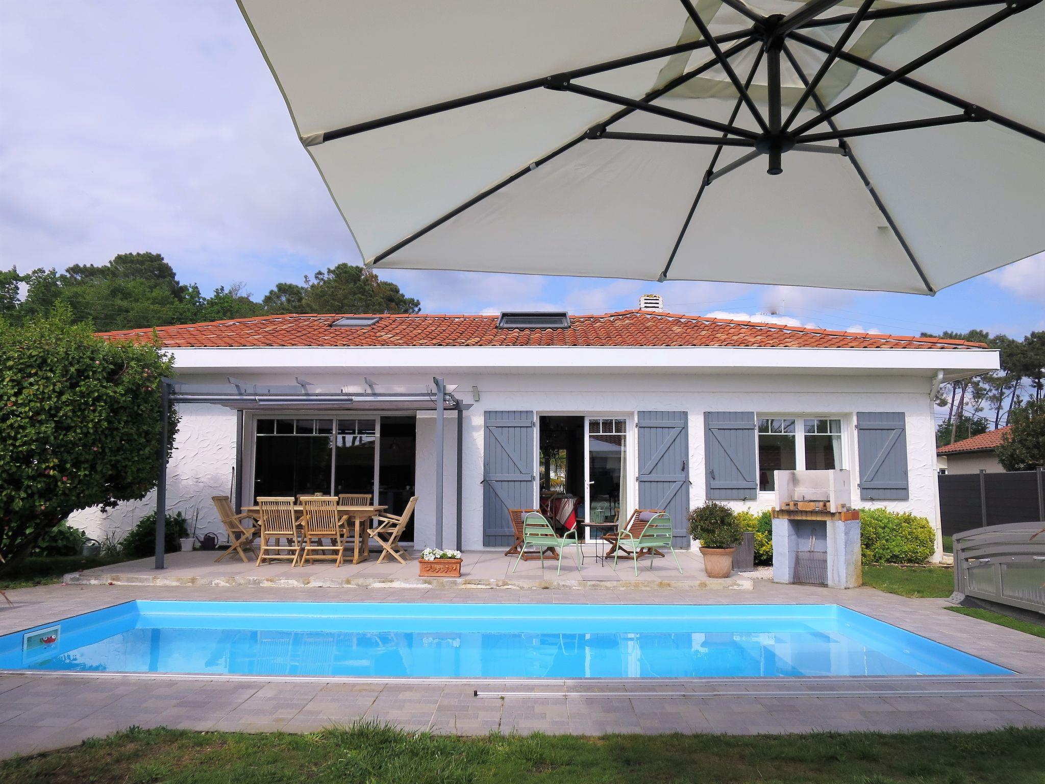 Beautiful villa "Camélia". 1 km from the centre of Andernos les Bains, 40 km from the centre of Arcachon, 45 km from the centre of Bordeaux, 1 km from the sea, in a cul-de-sac. Private: property 750 m2 (fenced), well-kept garden with lawn and wildlife garden, indoor pool (7 x 3 m, depth 150 cm, seasonal availability: 01.Jul. - 15.Sep.) with shutter cover. Terrace, parking at the house on the premises. Bus stop "Capsus" 900 m, sandy beach "Plage du Bétey (Bassin)" 1 km. Golf course (9 hole) 6 km. Nearby attractions: Plage du Grand Crohot (Océan Atlantique) 16 km.