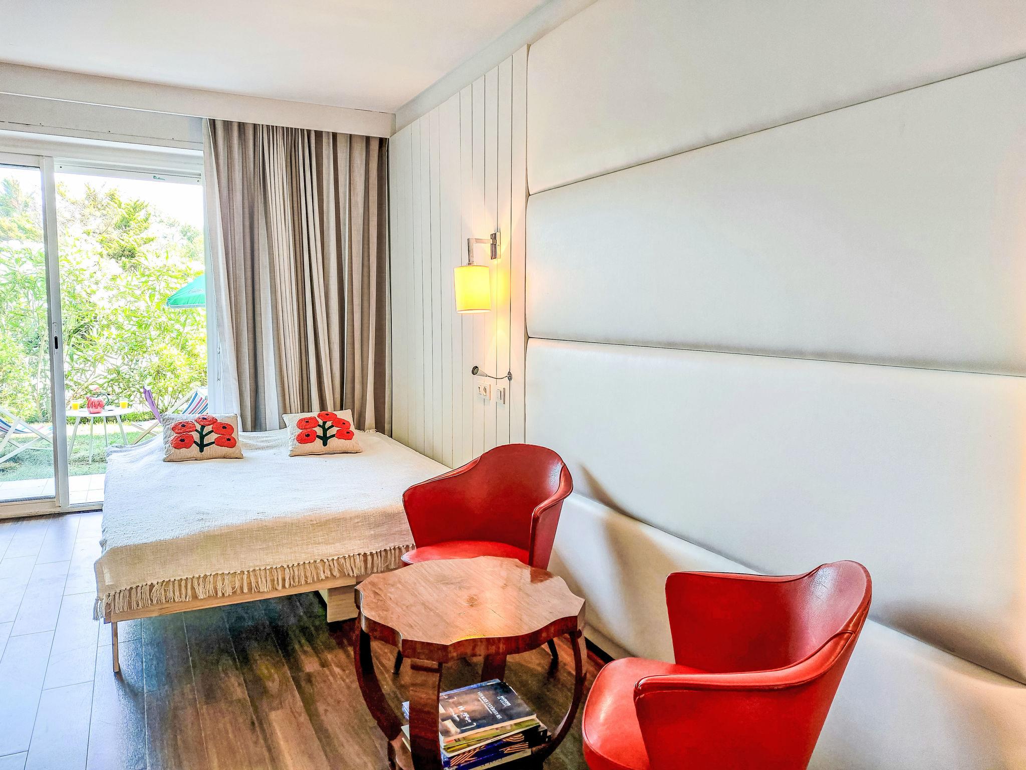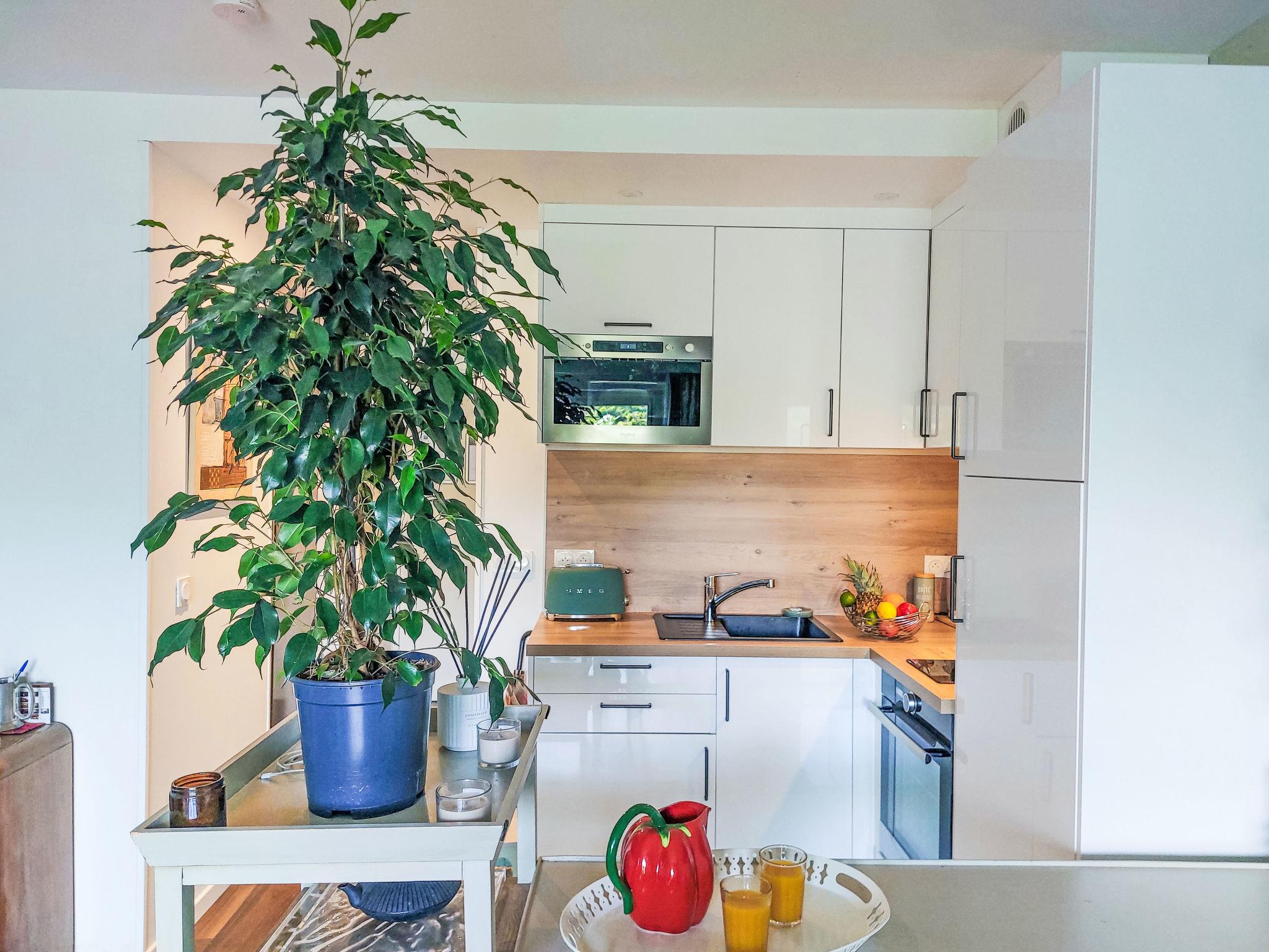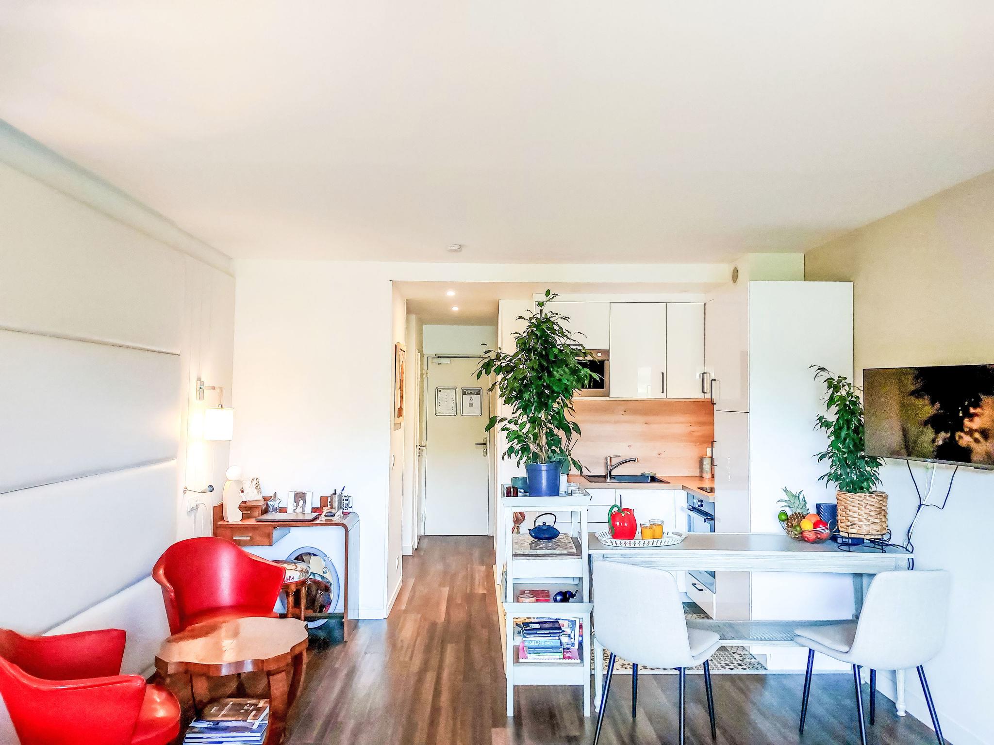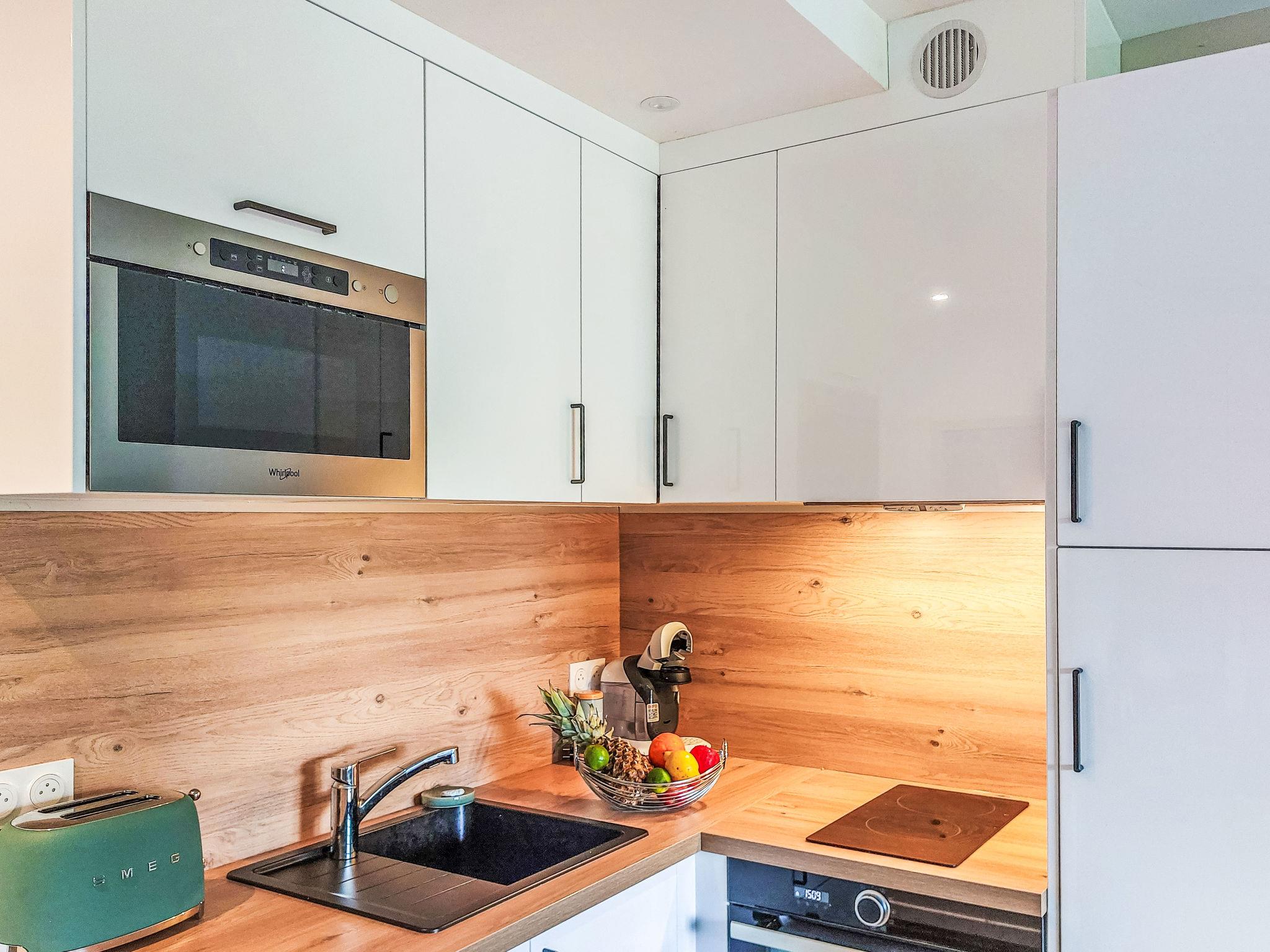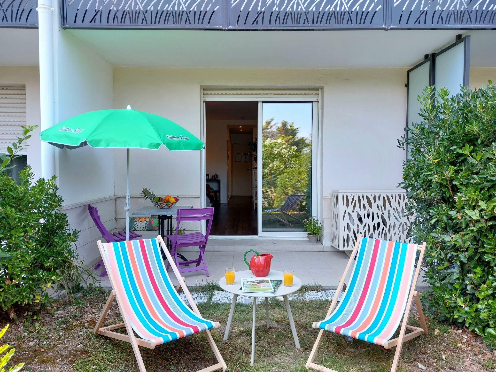 1-room studio 33 m2, on the ground floor, south-east facing position. Partly in 2025, comfortable and beautiful furnishings: living/sleeping room with 1 double sofabed (140 cm, length 190 cm), TV (flat screen). Exit to the terrace, to the patio, south-east facing position. Open kitchen (2 induction hot plates, toaster, kettle, microwave, electric coffee machine, Capsules for coffee machine (Tassimo)). Shower, sep. WC. Air-conditioning. Terrace 6 m2, small patio 9 m2. Terrace furniture. Facilities: washing machine, iron, hair dryer. Internet (WiFi, free). Parking. Please note: non-smokers only. Smoke alarm. Offer by a private individual according to Art. 155, IV of CGI. 640240047761E