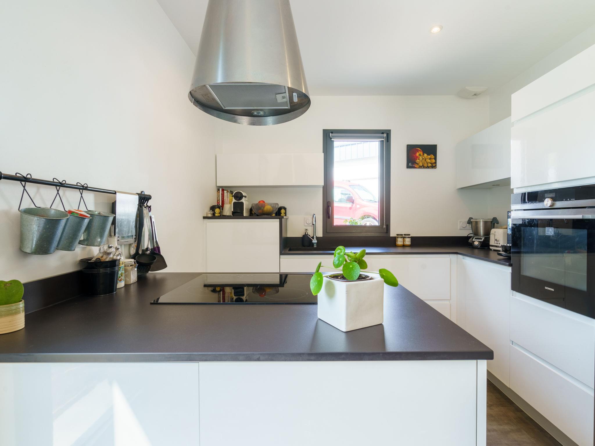 3-room house 90 m2. Modern and tasteful furnishings: living/dining room with TV (flat screen). Exit to the garden, to the terrace. Open kitchen (oven, dishwasher, 3 induction hot plates, toaster, kettle, microwave, freezer, electric coffee machine, Capsules for coffee machine (nespresso) extra). Sep. WC. Upper floor: 1 room with 1 french bed (160 cm, length 200 cm) with 1 french bed (140 cm, length 190 cm). Shower, sep. WC. Electric heating, air-conditioning. Large terrace 60 m2, south-west facing position, garden, south-west facing position. Terrace furniture, barbecue. Facilities: washing machine, iron, hair dryer. Internet (WiFi, free). Please note: non-smoking house. Smoke alarm. Offer by a private individual according to Art. 155, IV of CGI. 6402400299672