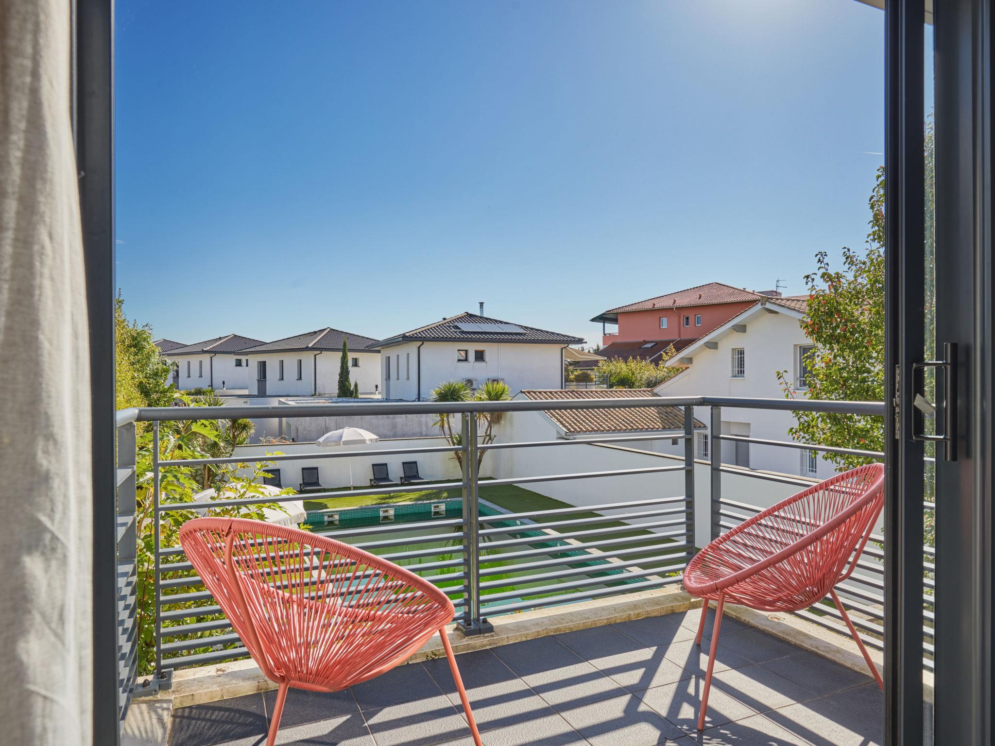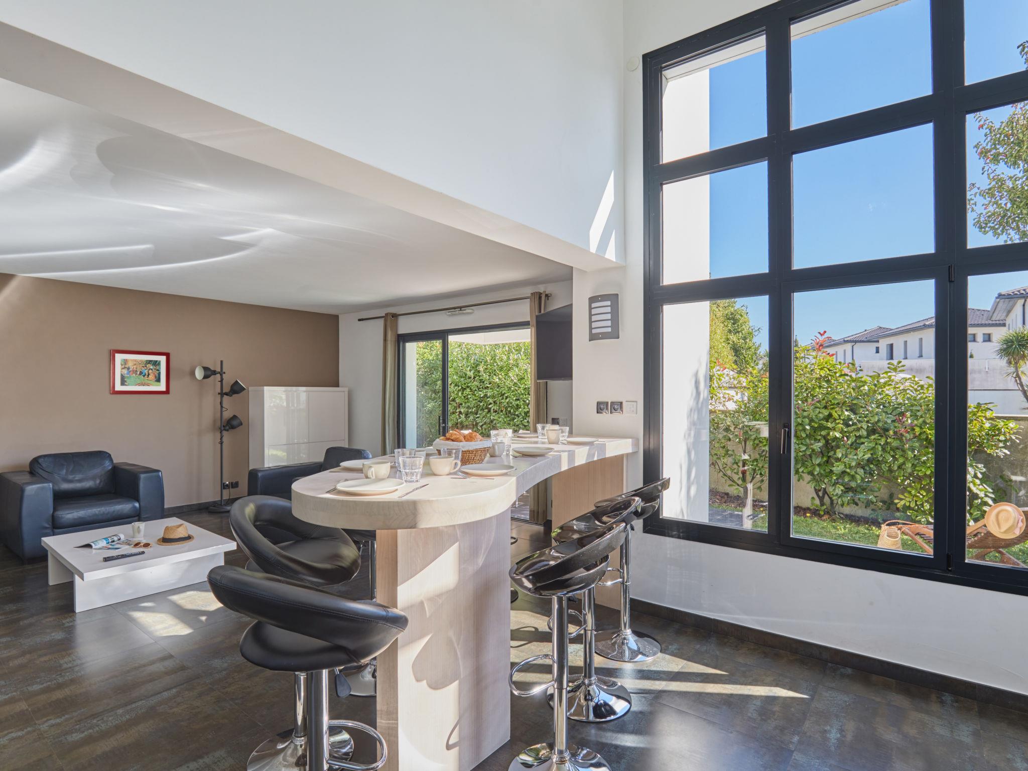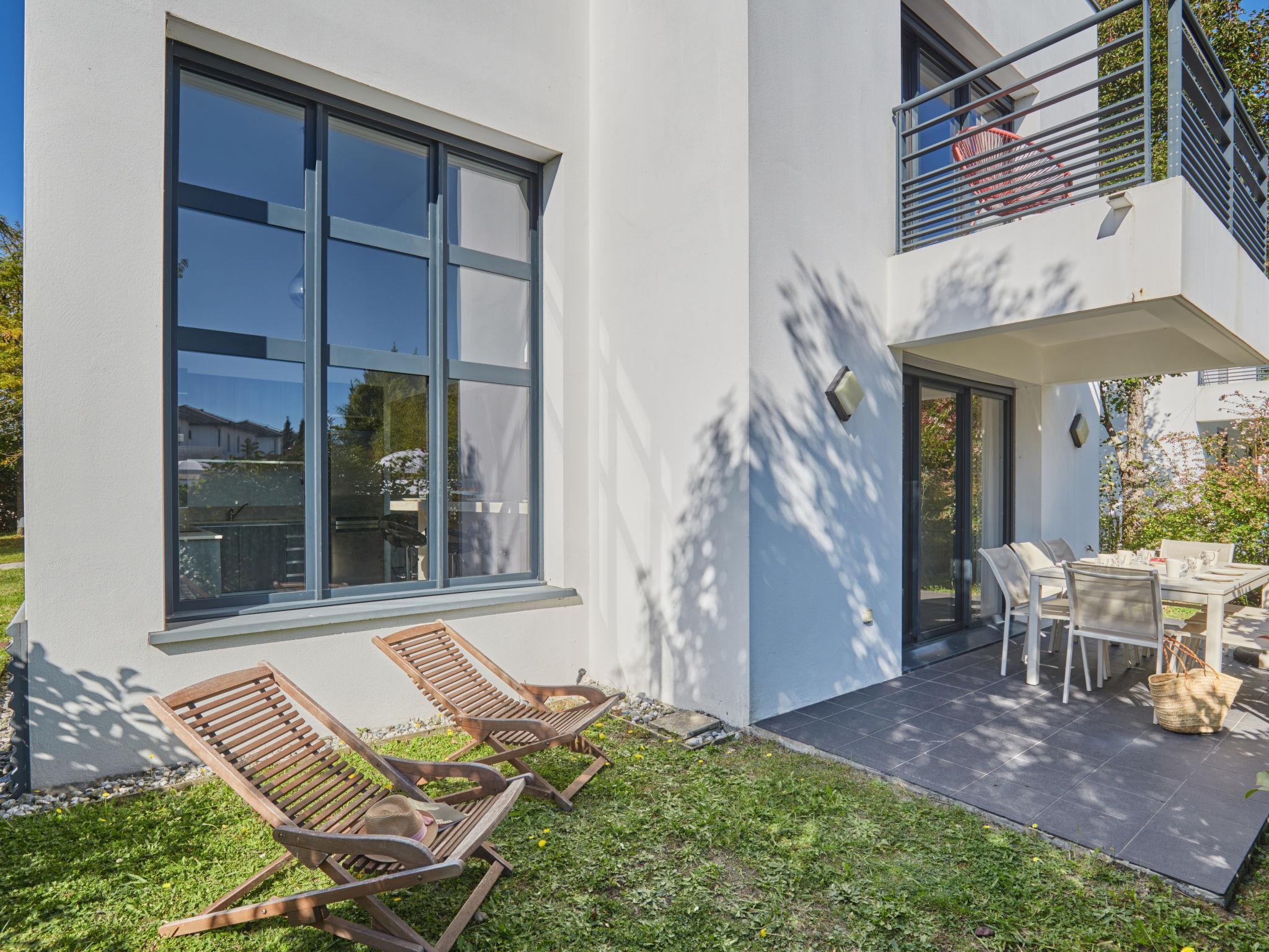 Residence "Le Domaine d'Anadara". 9 houses in the residence. 3 km from the centre of Biarritz, 3.5 km from the centre of Anglet, in the residential district, 700 m from the sea, 700 m from the beach. For shared use: property, well-kept garden (not fenced) lawn, swimming pool heated, fenced (12 x 4 m, seasonal availability: 01.May. - 30.Sep. pool opening hours: 10:00-20:00) with internal staircase. Terrace. In the complex: reception. Shop 700 m, bus stop "Chambre d'amour" 900 m, railway station "Biarritz" 6 km, sandy beach 700 m. Golf course (18 hole) 2.5 km, surf school 1.3 km. Nearby attractions: parcours Golf l'Impératrice 9 trous 1.4 km, Surf 1.3 km, Halles des 5 Cantons 1 km, Bayonne 5.5 km, Biarritz 3.5 km, San-Sébastian 50 km. Hiking paths: Promenade du littoral 1 km, La Rhune. Please note: the photograph shows a typical example. All houses/apartments are individually designed/furnished.