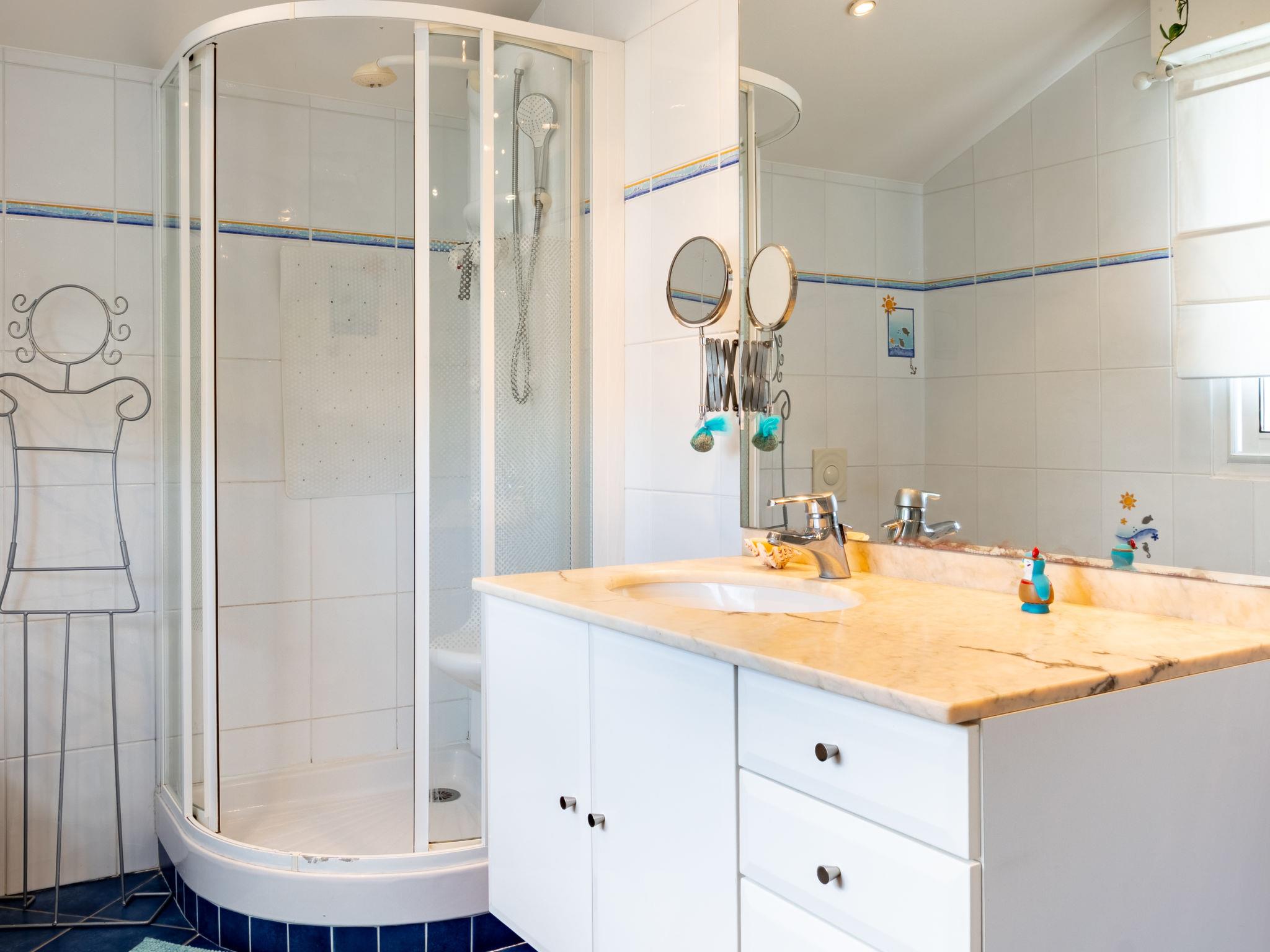 4-room villa 140 m2 on 2 levels. Comfortable and beautiful furnishings: living/dining room. Exit to the garden, to the terrace. 1 room with 1 french bed (140 cm, length 190 cm). Alcove with 1 double sofabed (140 cm, length 190 cm), TV (flat screen). Exit to the garden, to the terrace. Kitchen (5 hot plates, oven, dishwasher, toaster, kettle, microwave, freezer, electric coffee machine). Shower, sep. WC. Gas heating, air-conditioning. Upper floor: 1 room with 1 bed (90 cm, length 190 cm), 1 french bed (140 cm, length 190 cm). 1 room with 1 french bed (160 cm, length 200 cm). Bath/shower/WC. Gas heating, air-conditioning. Large terrace 30 m2, west facing position, large terrace 40 m2, south-east facing position, garden. Terrace furniture, barbecue, deck chairs. Facilities: washing machine, iron, hair dryer. Internet (WiFi, free). Parking (fenced 2 cars). Please note: suitable for families. Non-smoking house. Maximum 1 pet/ dog allowed. Smoke alarm. Offer by a private individual according to Art. 155, IV of CGI. 640240047619F